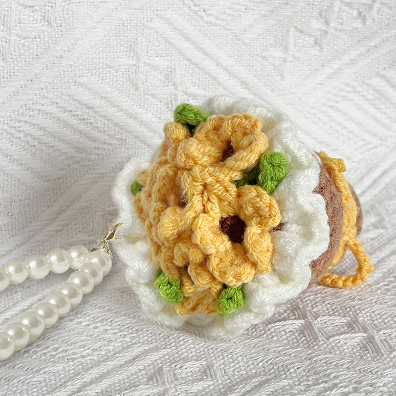 finished product bridal bouquet-sunflower + pearl lanyard