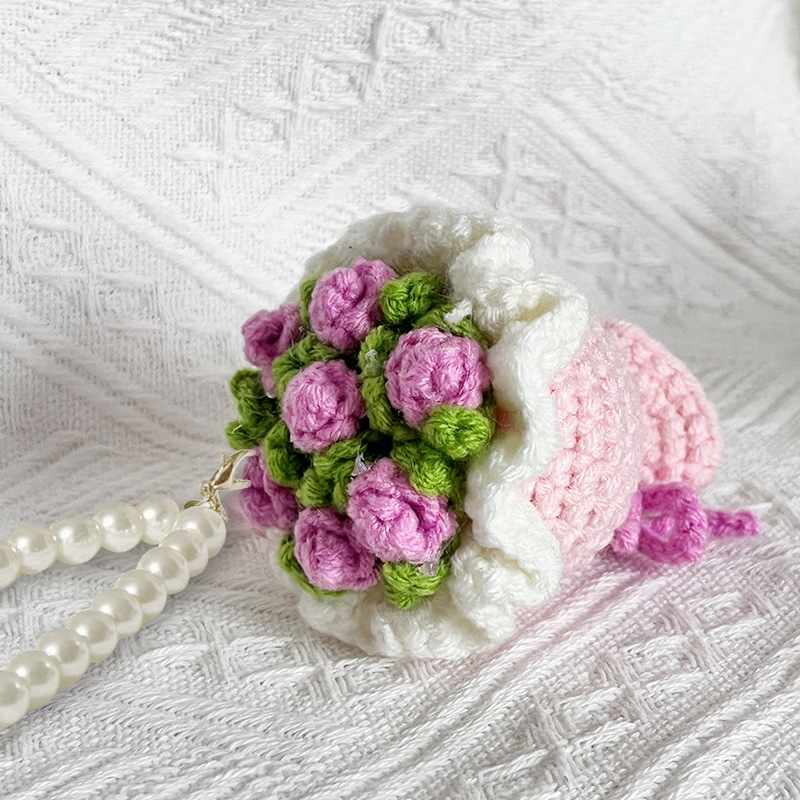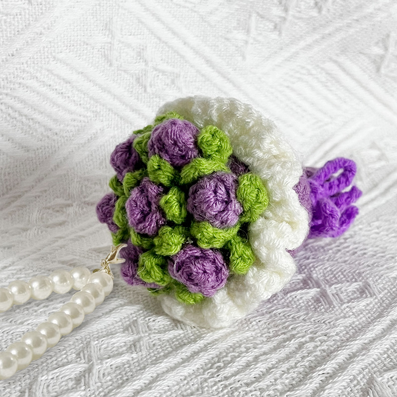 finished product bridal bouquet-purple purple flower + pearl lanyard