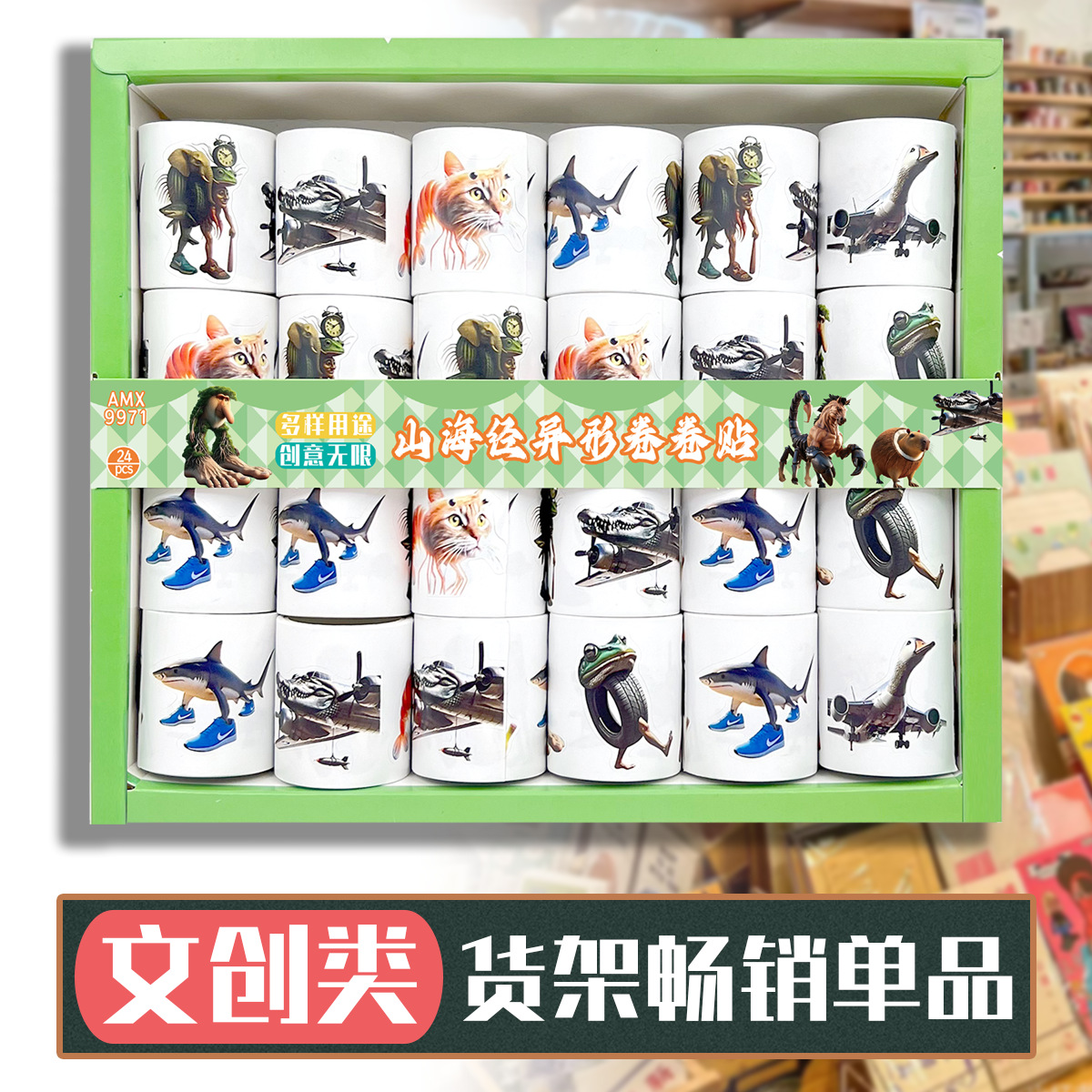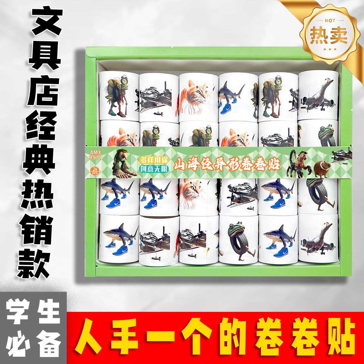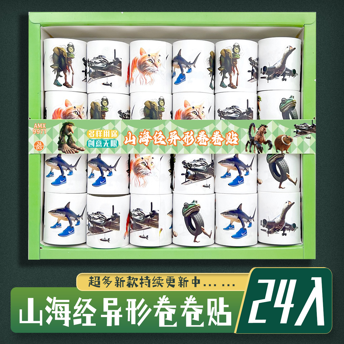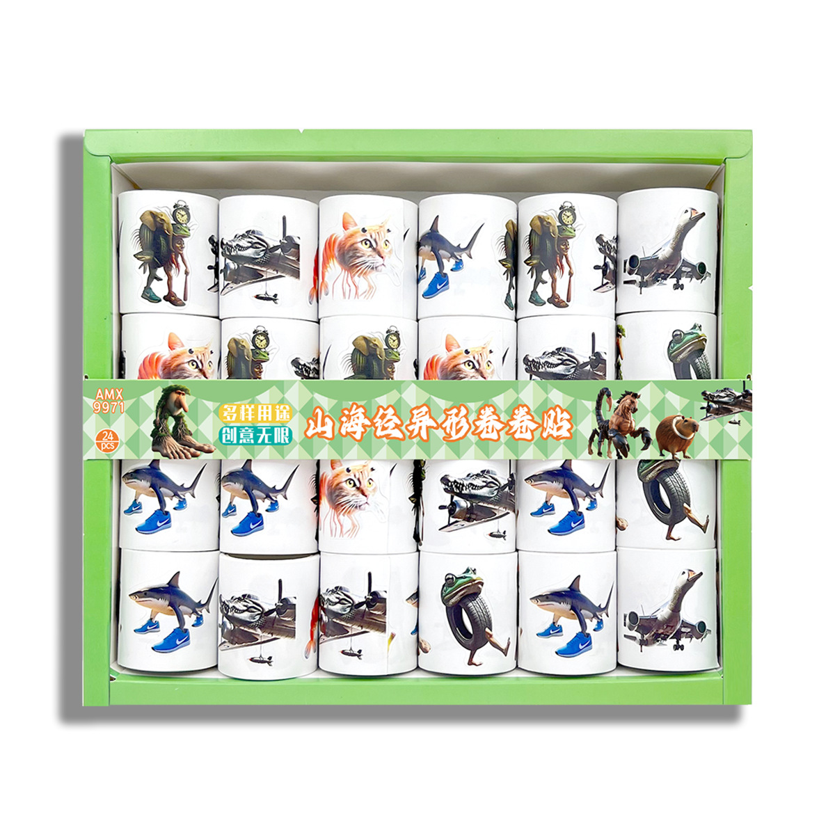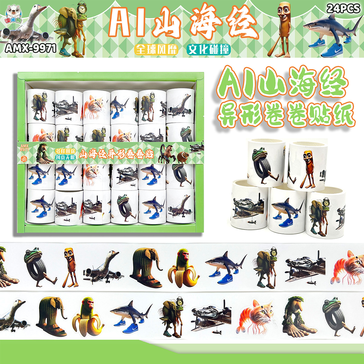 24 into ai shanhai sutra abstract meaning unknown special-shaped roll stickers sand carving people stem picture wooden stick self-paste stickers