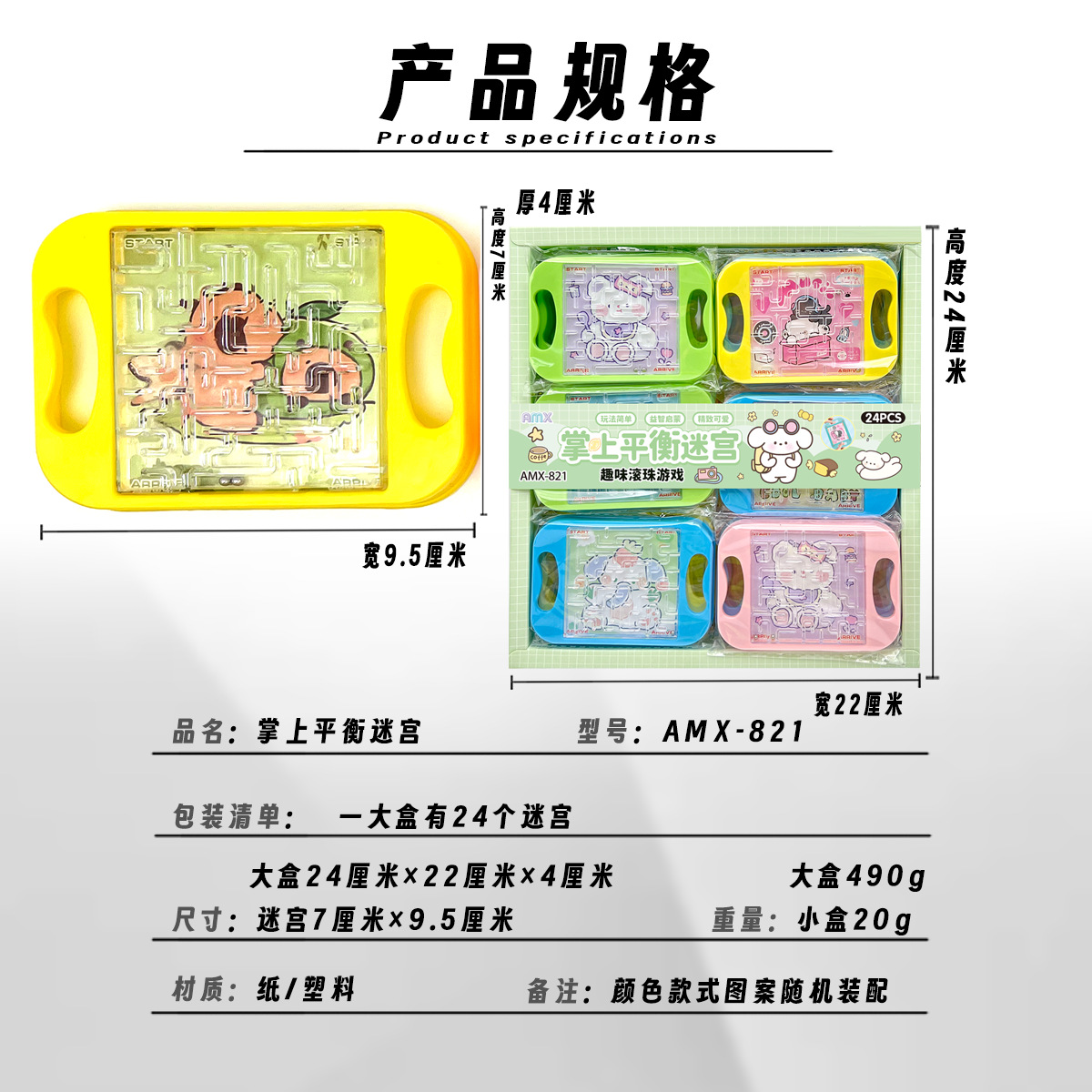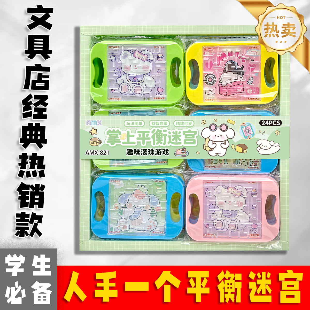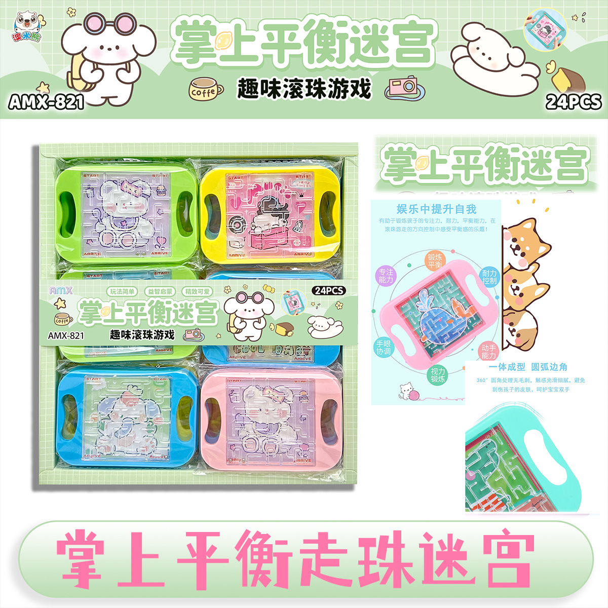 24-in-box mini balance maze handheld bead rolling maze balance rolling ball children's educational toys factory wholesale