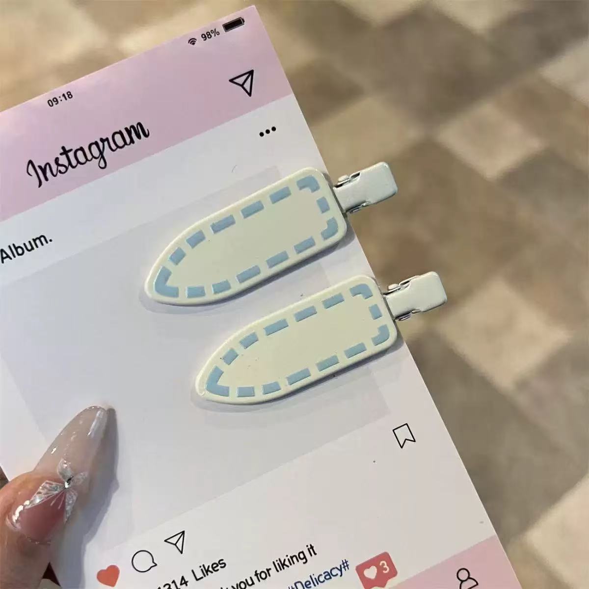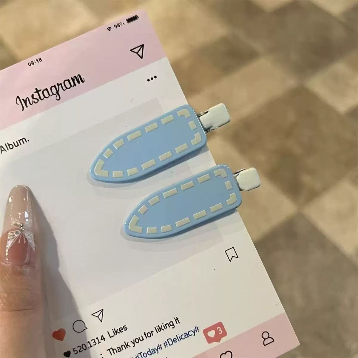 dotted blue barrettes