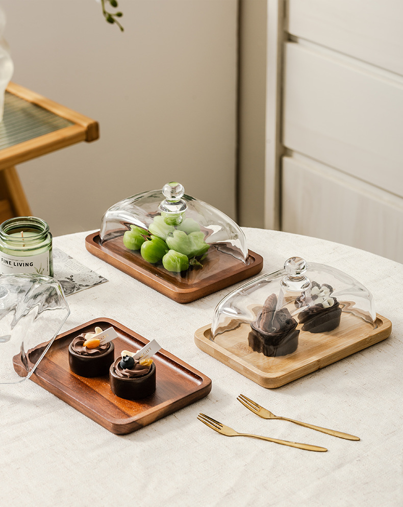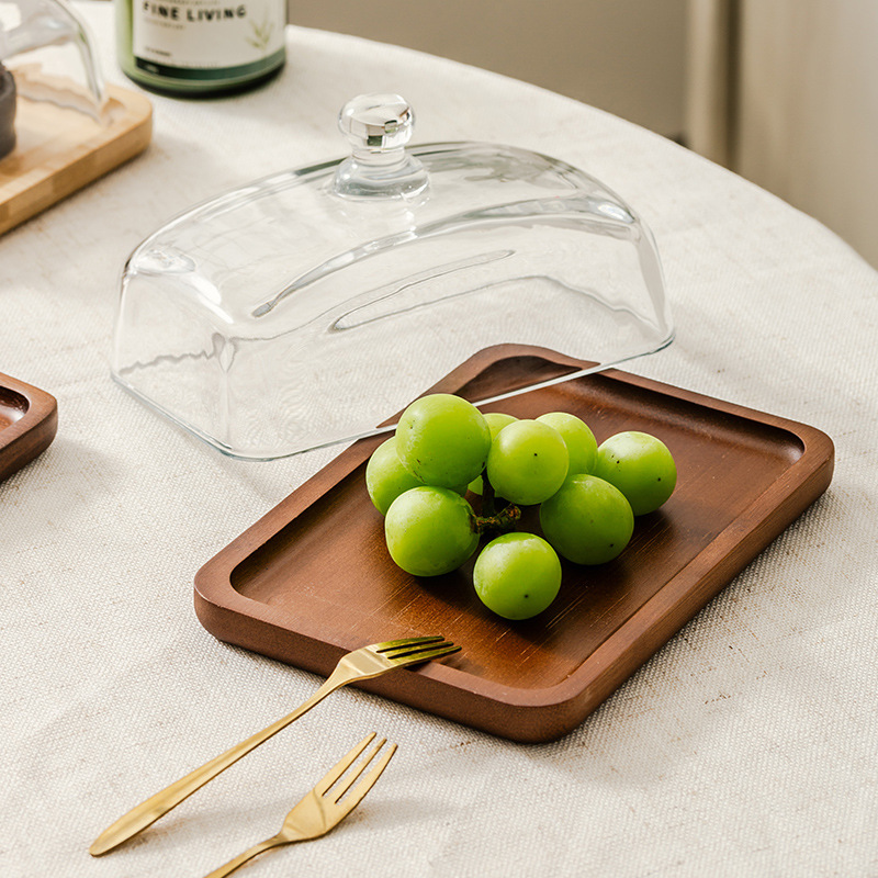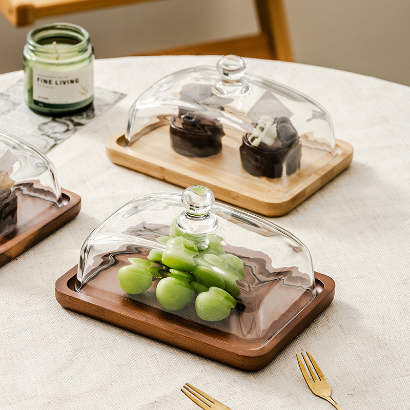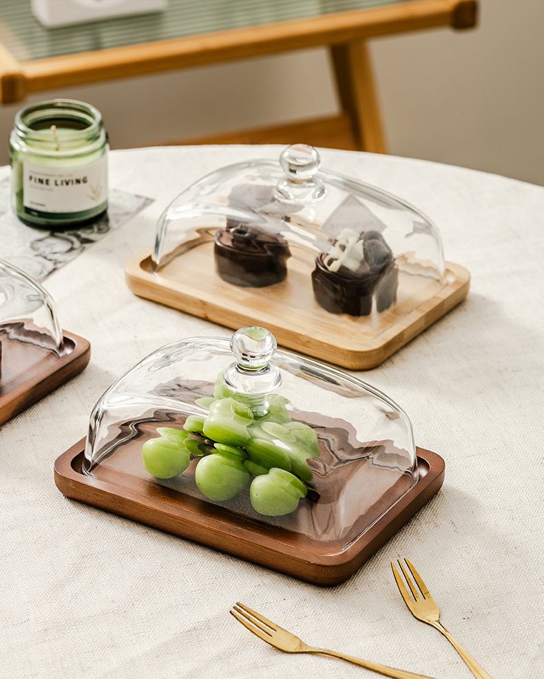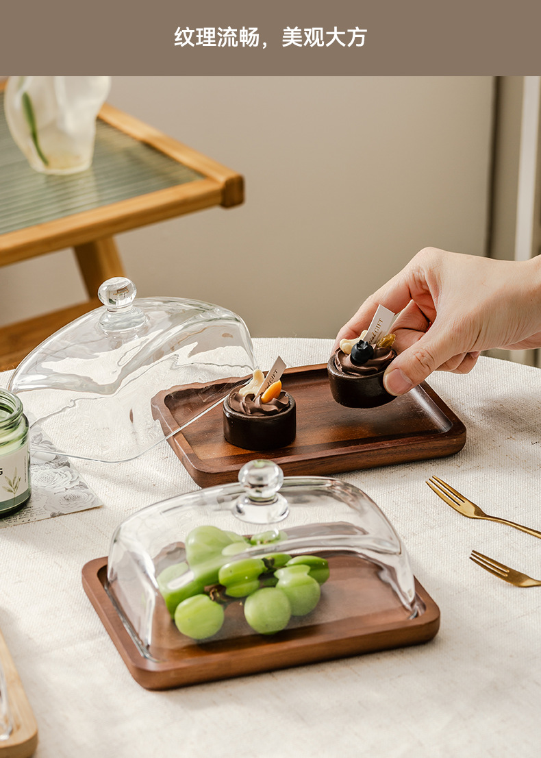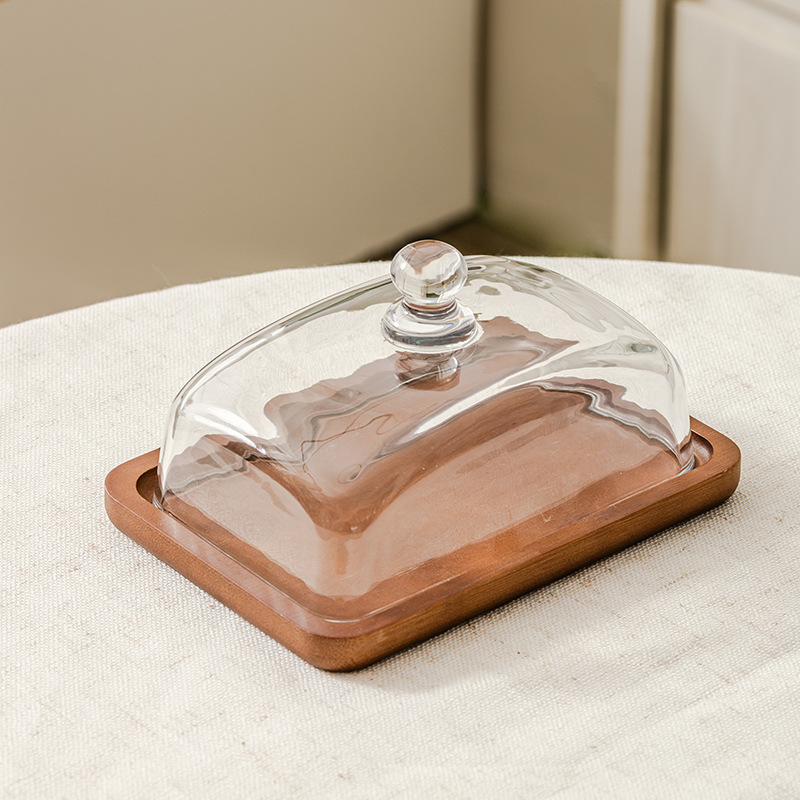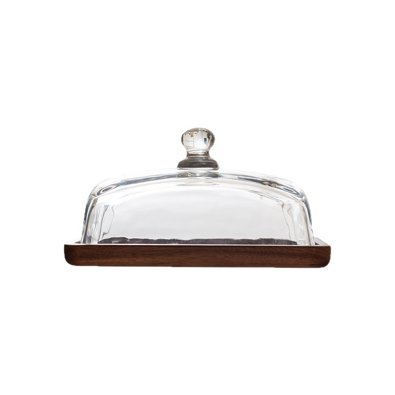light luxury wooden butter dish glass cover cheese box butter cheese dim sum plate cake dessert table display stand