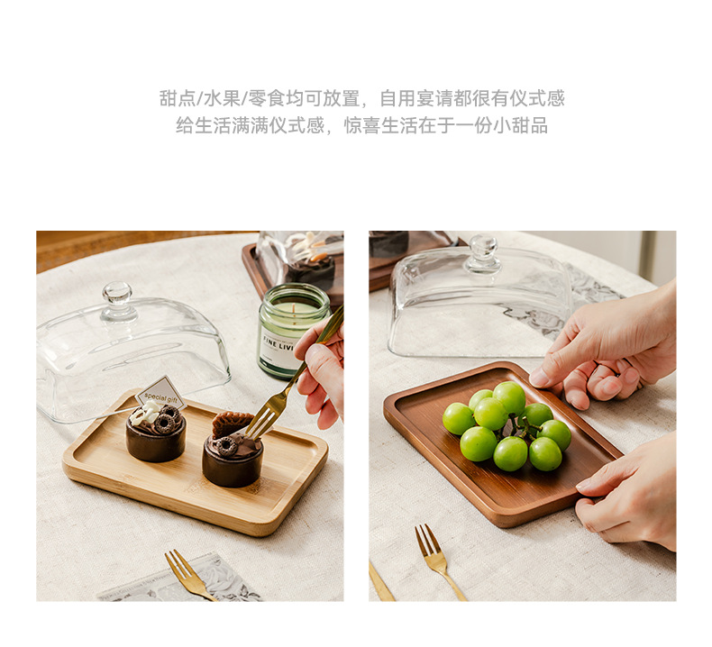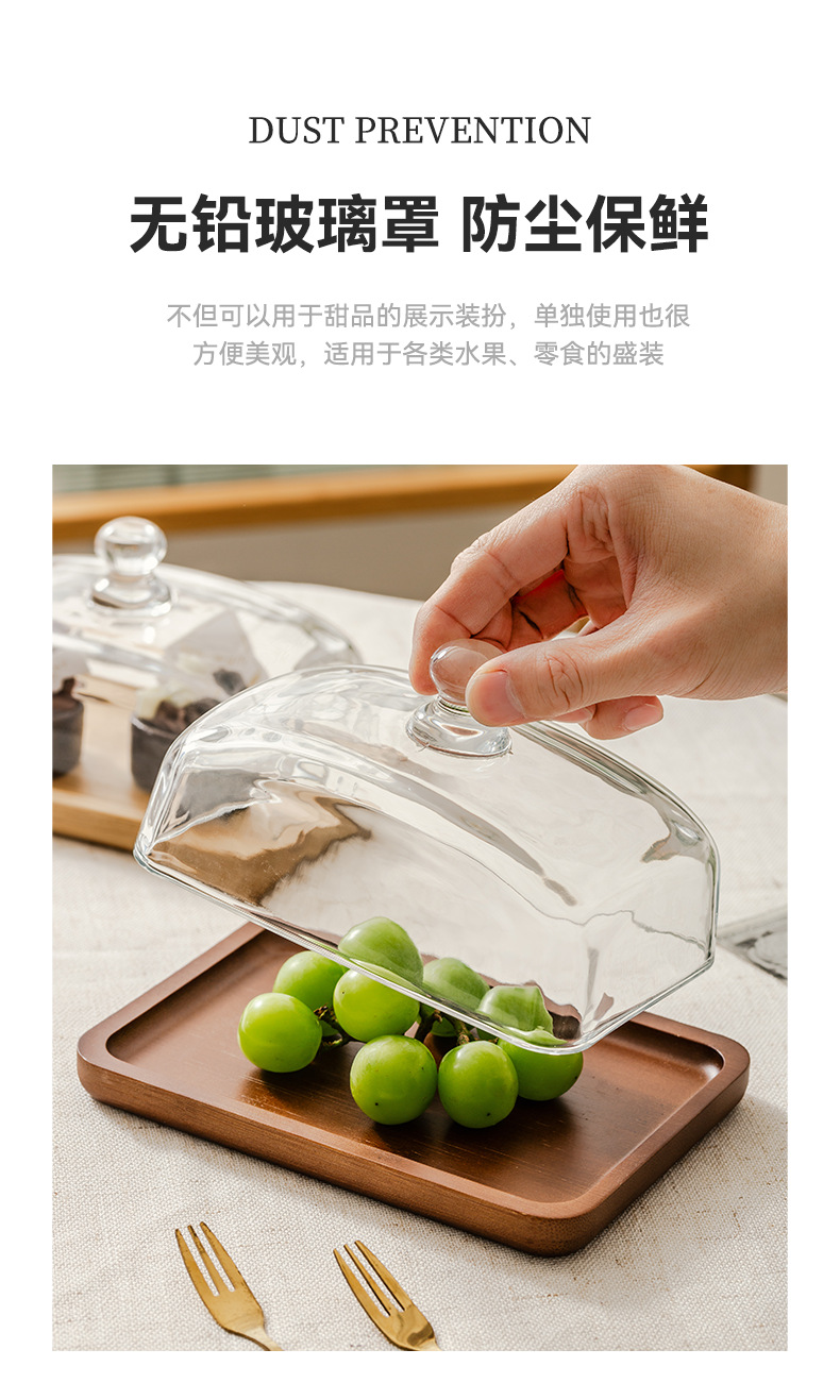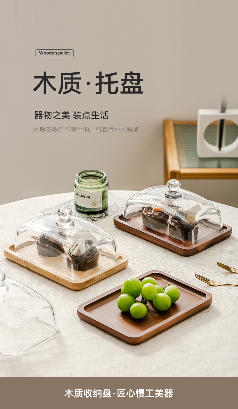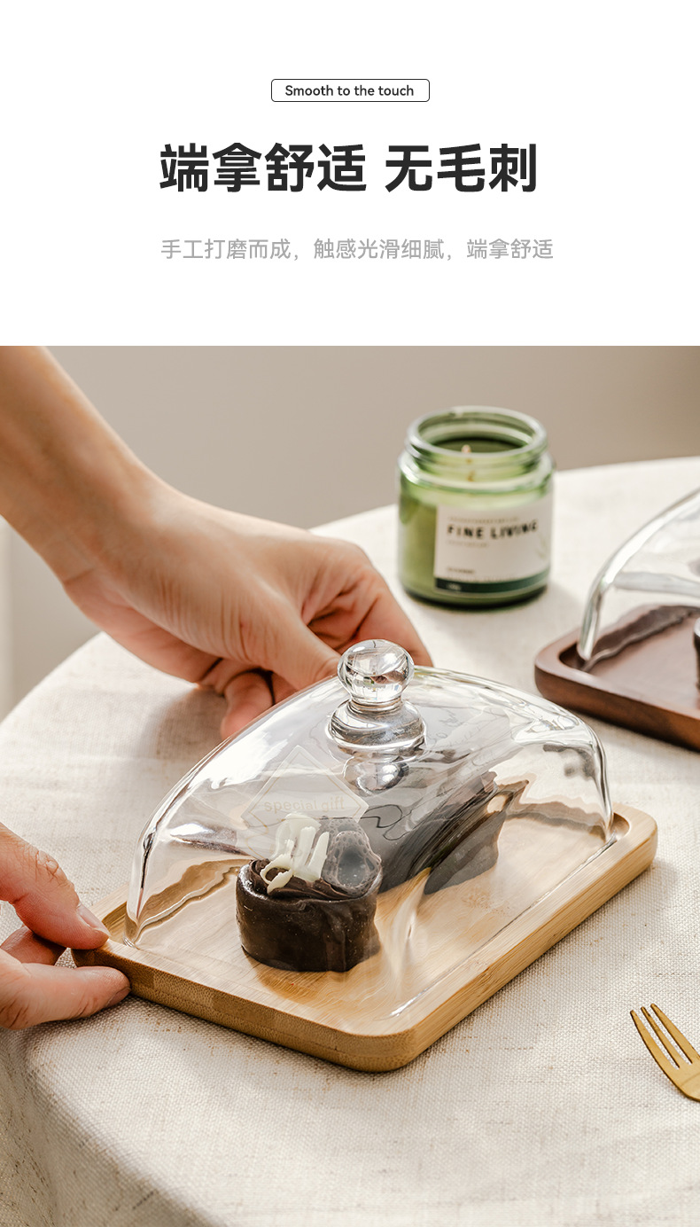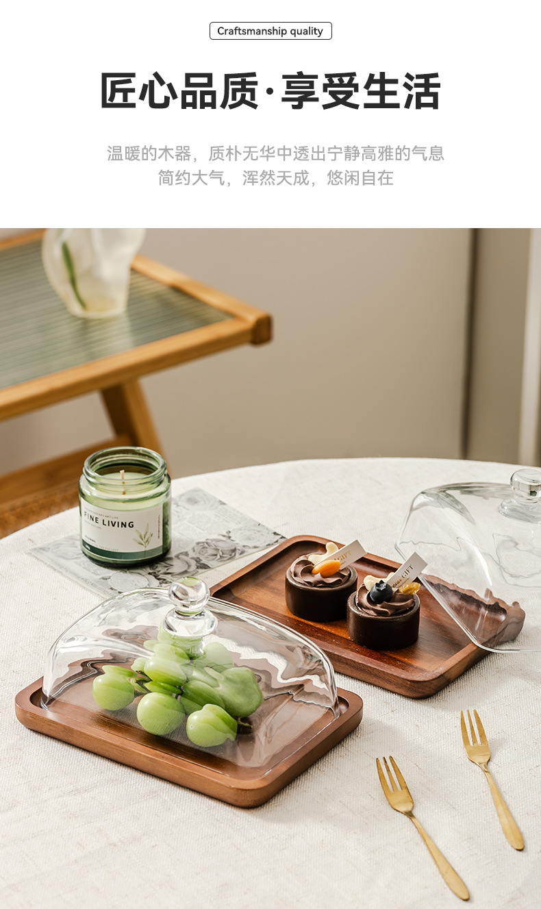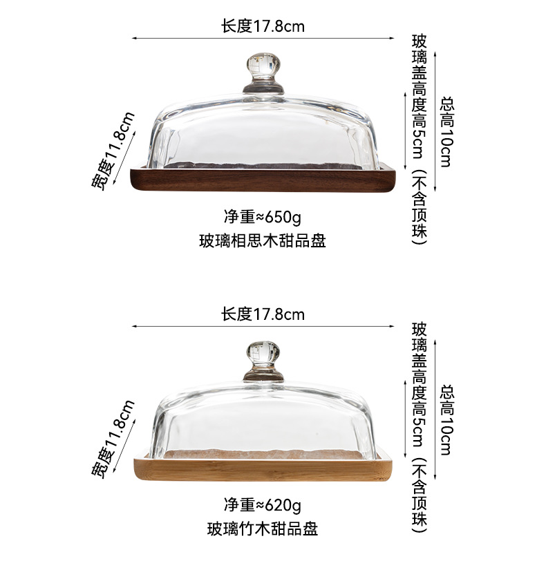 light luxury wooden butter dish glass cover cheese box butter cheese dim sum plate cake dessert table display stand