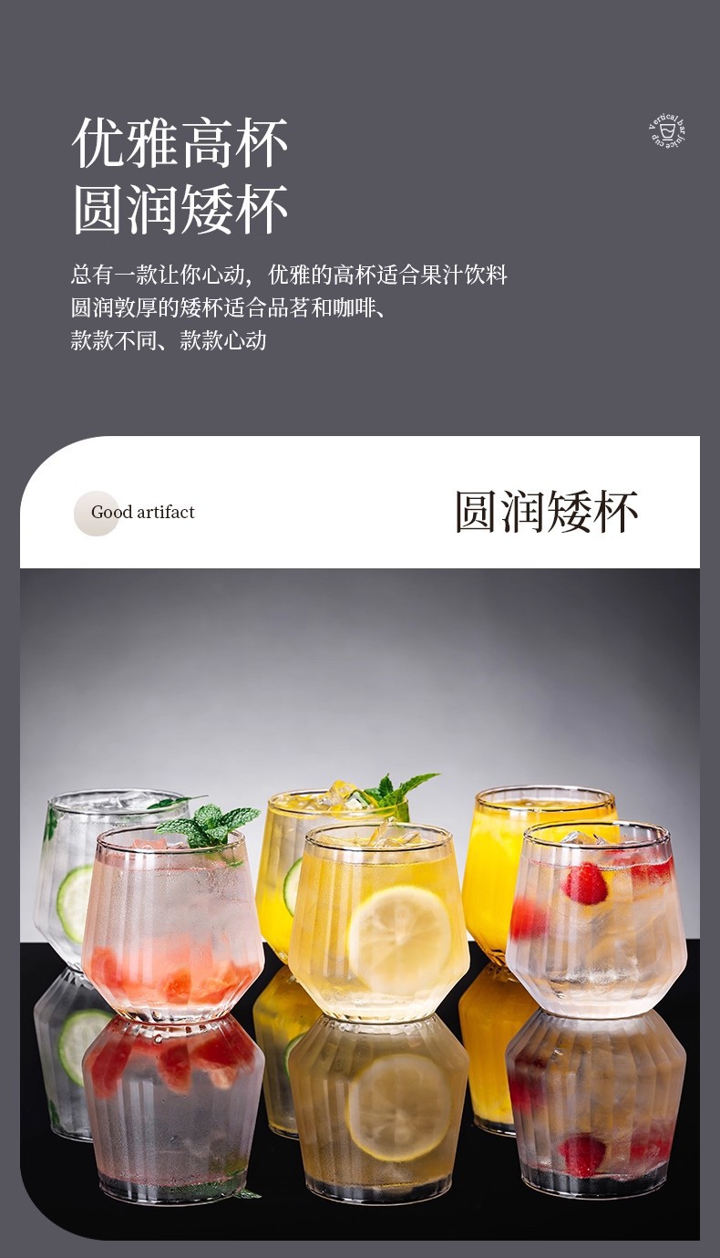 glass juice cup ins style cocktail glass household water cup milk cup cool drinks cup mojito cocktail cup