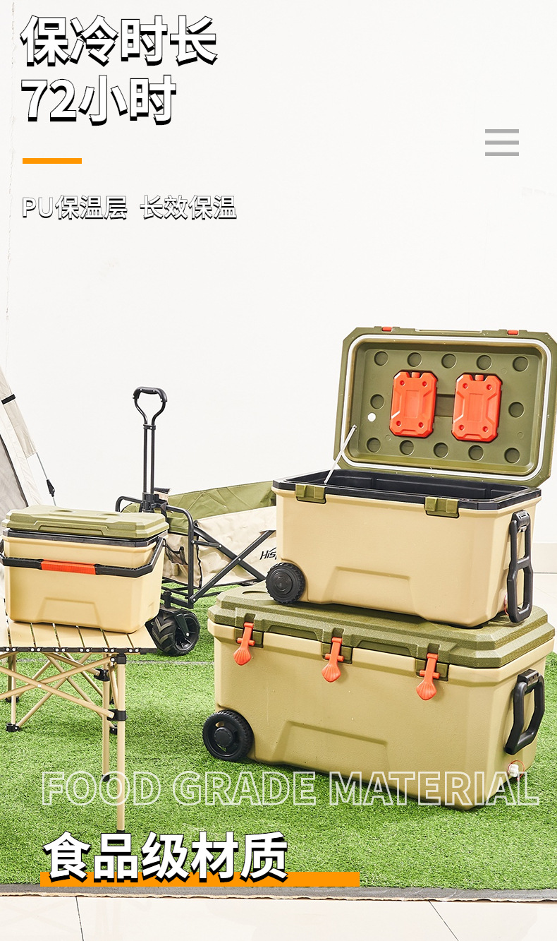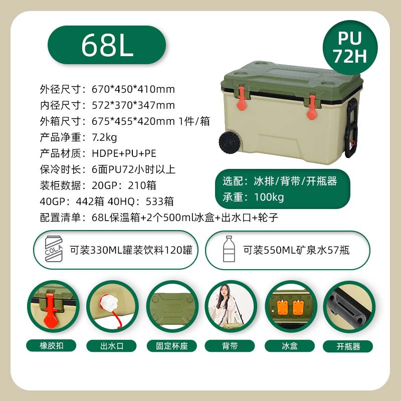 [cross-border hot selling] 68l green-wheeled model [high-equipped full six-sided pu] cold preservation for 72 hours [including 500ml ice box 2
