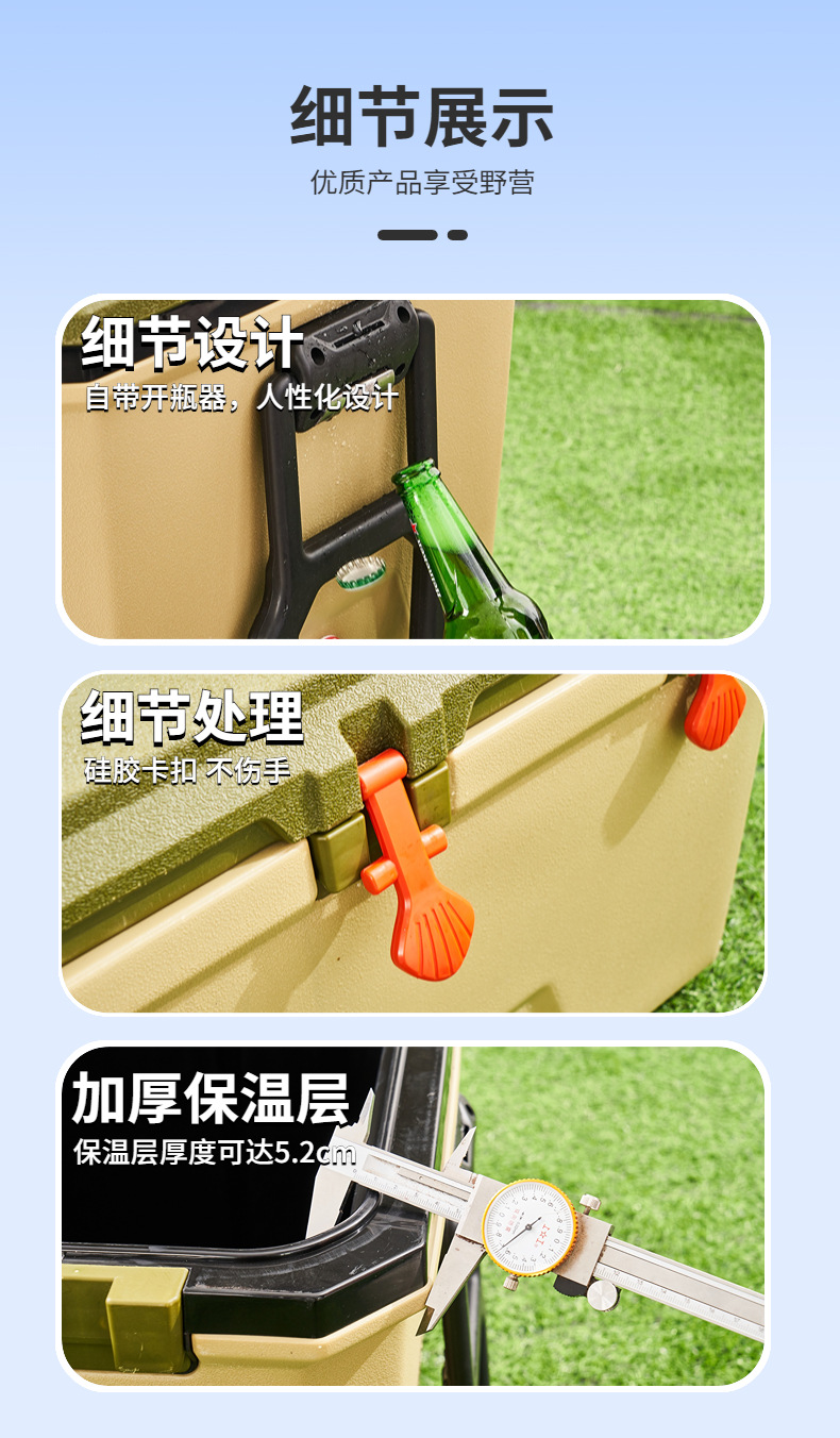[cross-border hot selling] 68l green-handle type [high-equipped full six-sided pu] cold preservation for 72 hours [including 500ml ice box 2