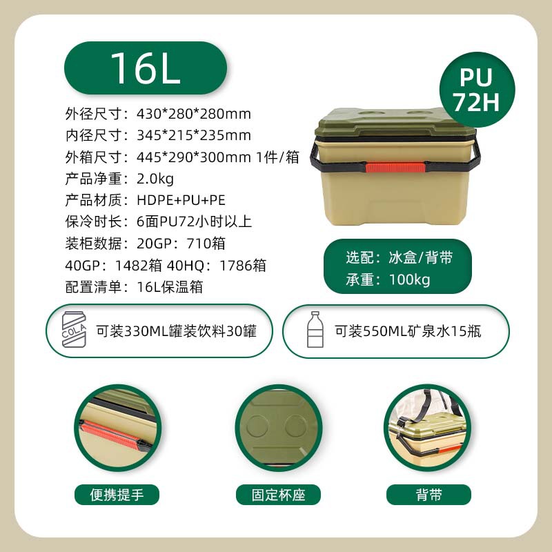 [cross-border hot selling] 16l green-handle model [high-equipped full six-sided pu] cold-keeping 72 hours [upgrade tpe plastic-coated handle