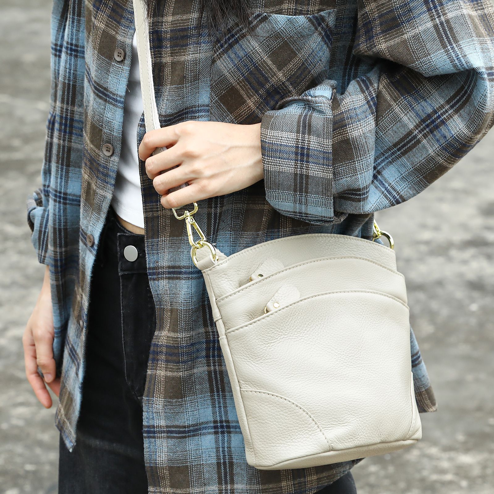 WESTAL New Soft Cowhide Ladies Bucket Bag with Top Grain Cowhide - Casual Single Shoulder and Slung Bag for Middle-aged Moms