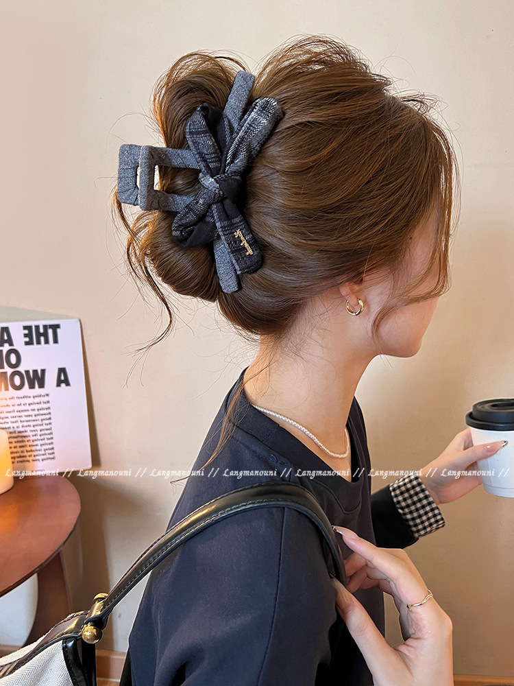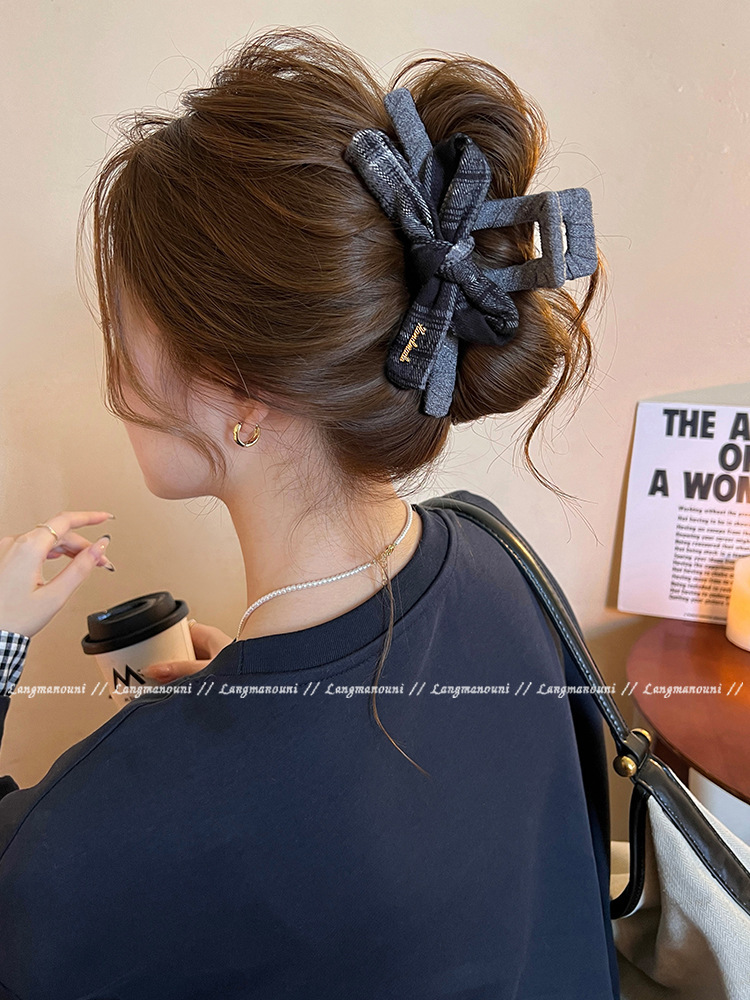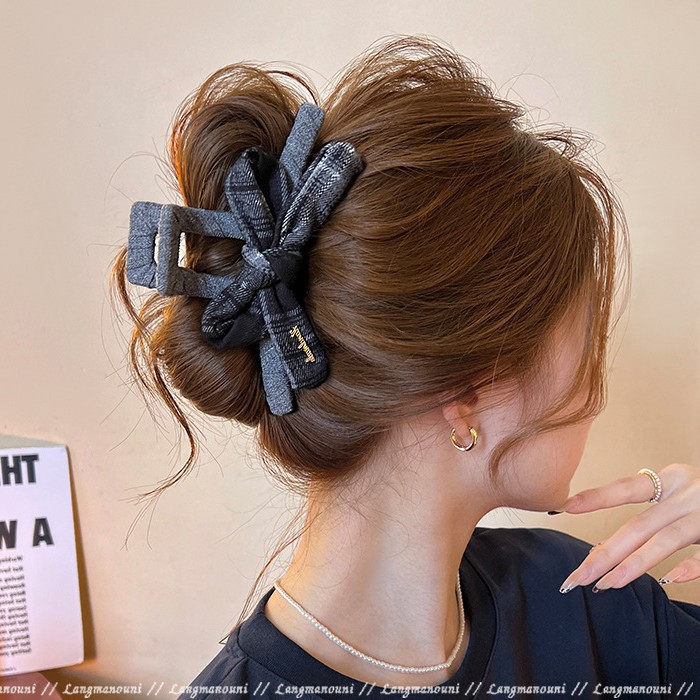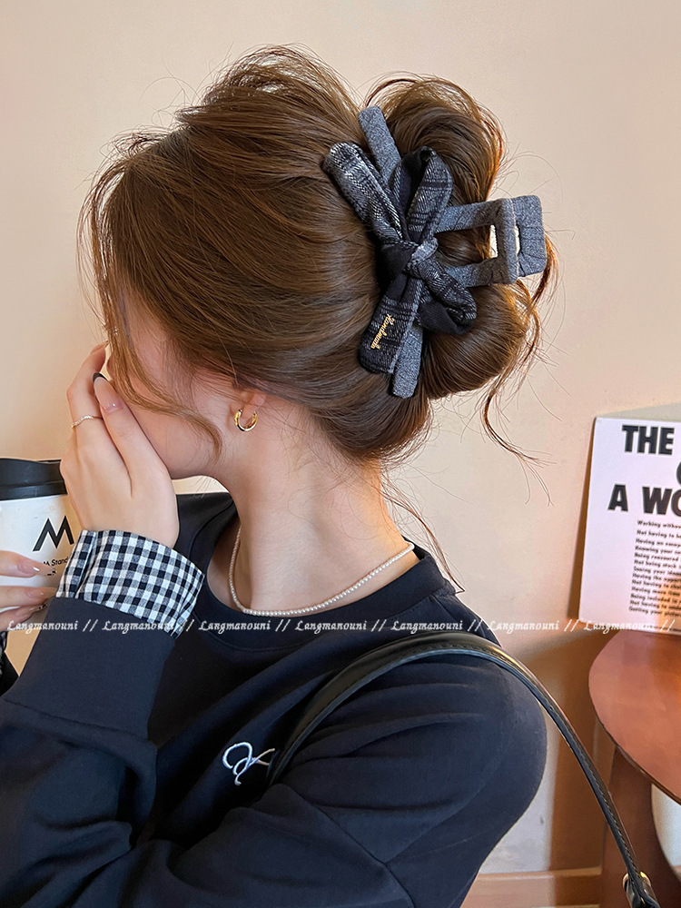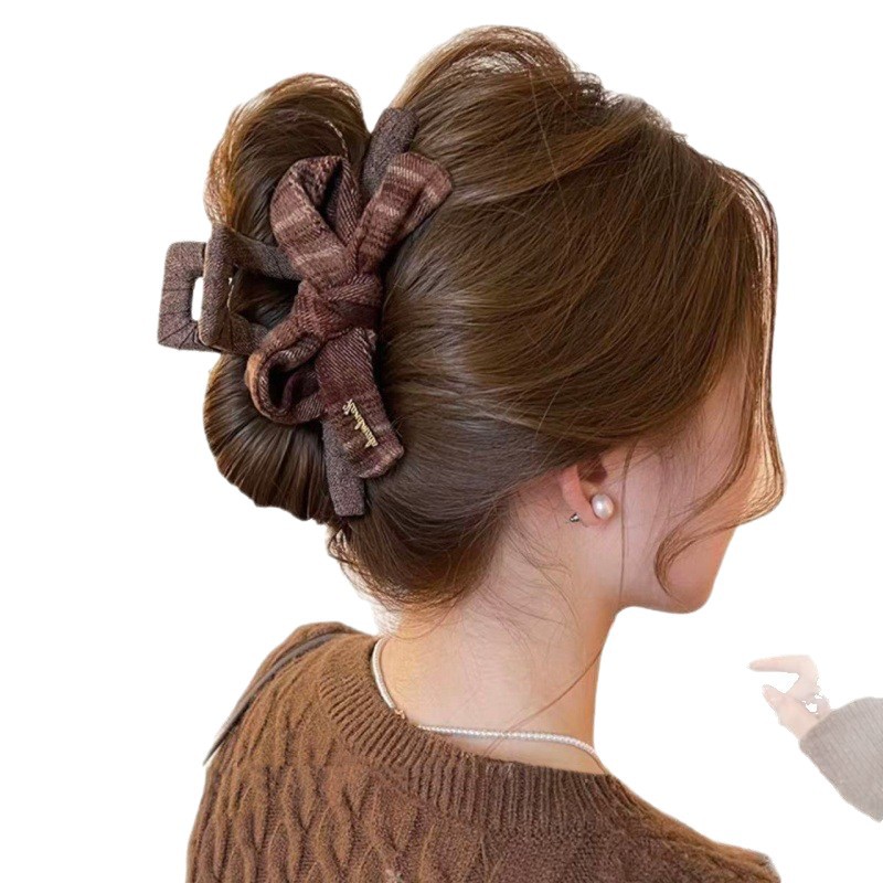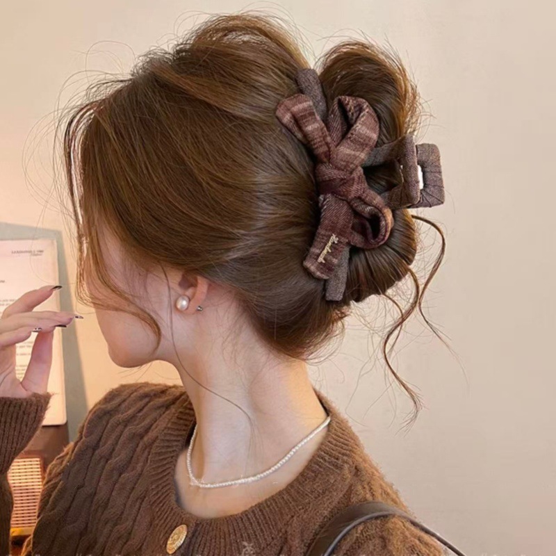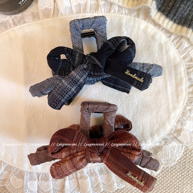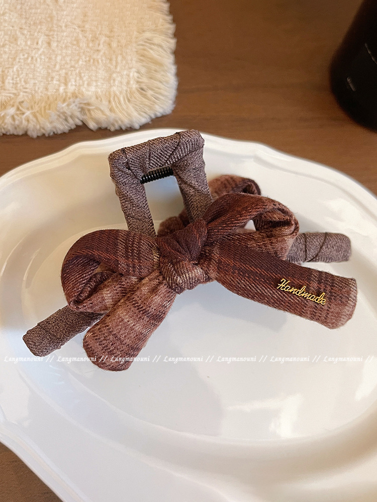 coffee plaid ~ bow claw clip