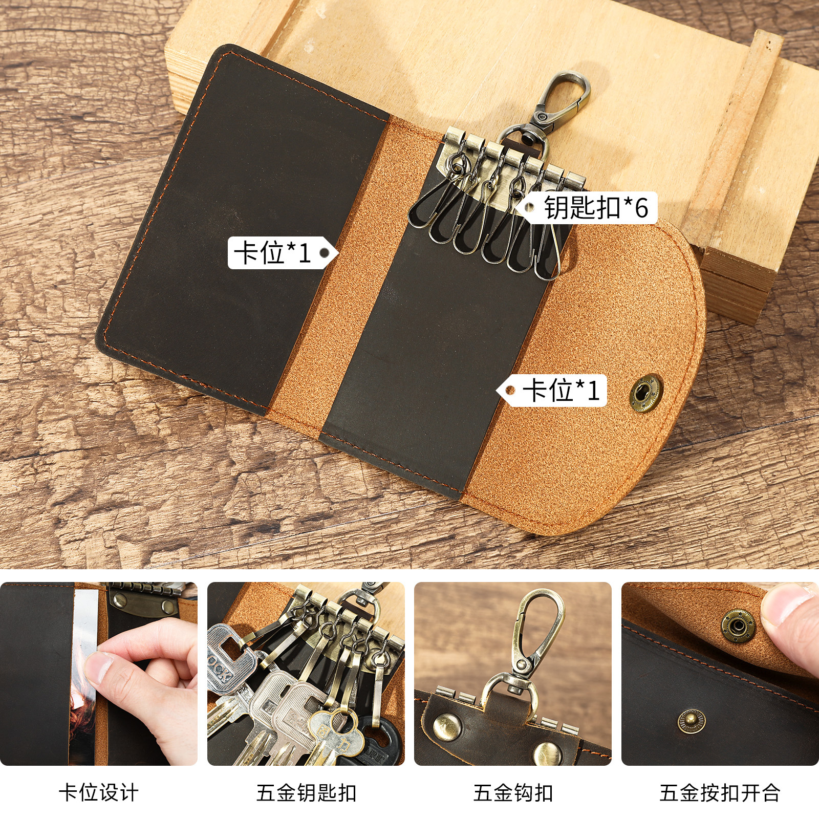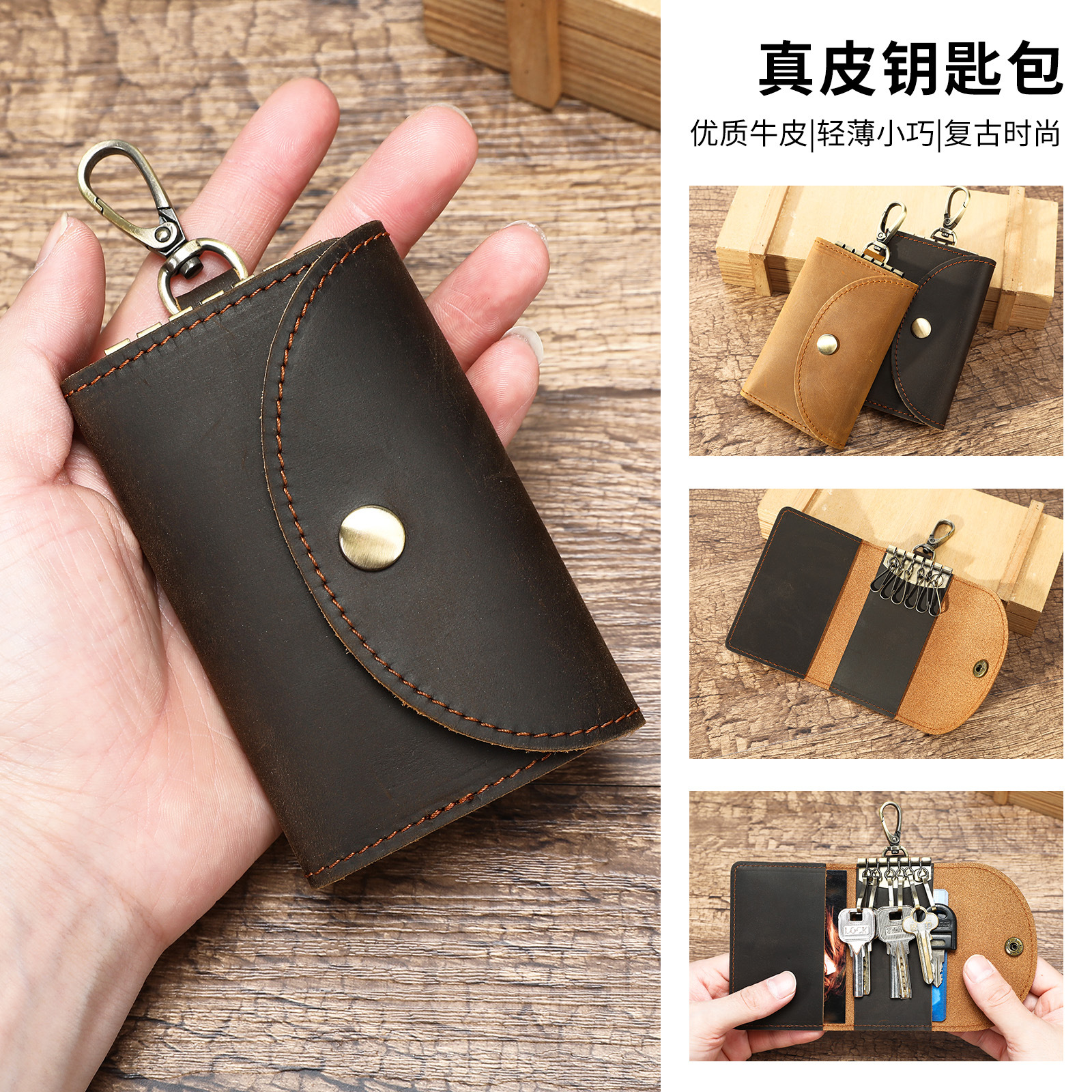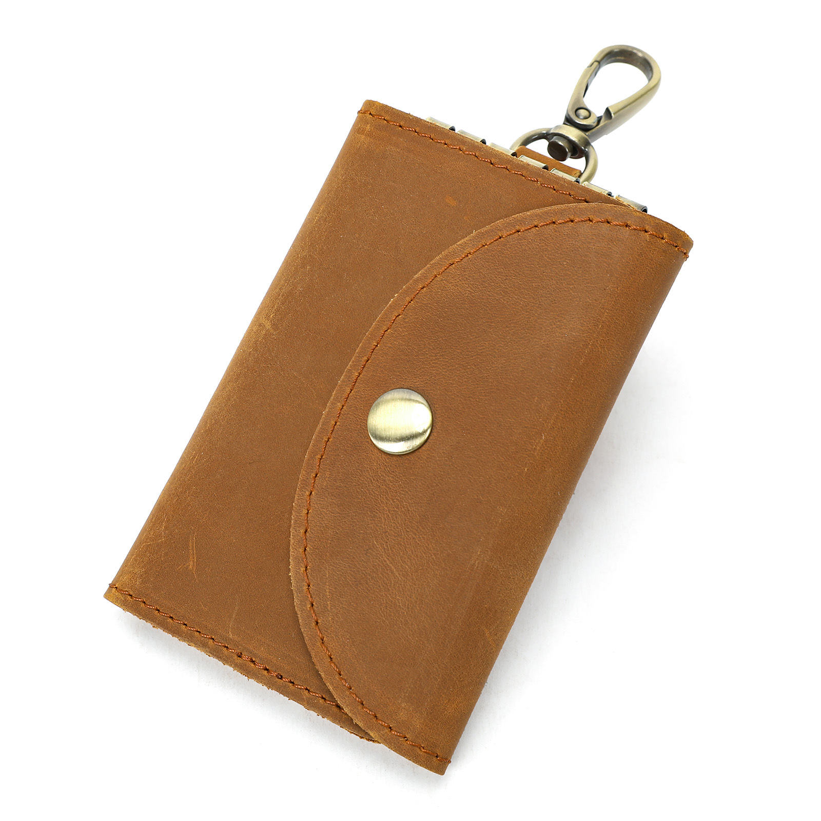 retro crazy horse leather buckle key case high-end new with card position car key case small portable key storage bag