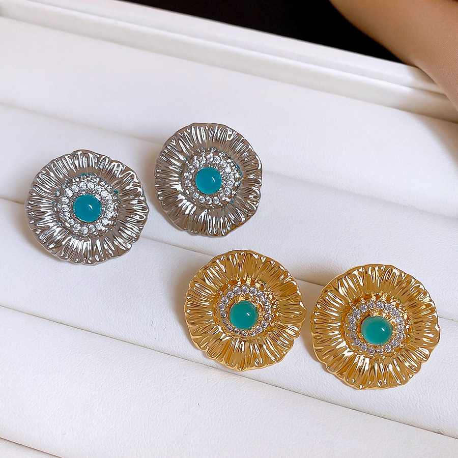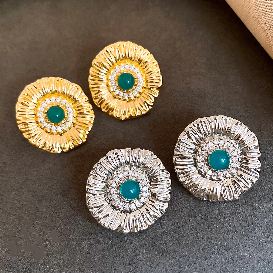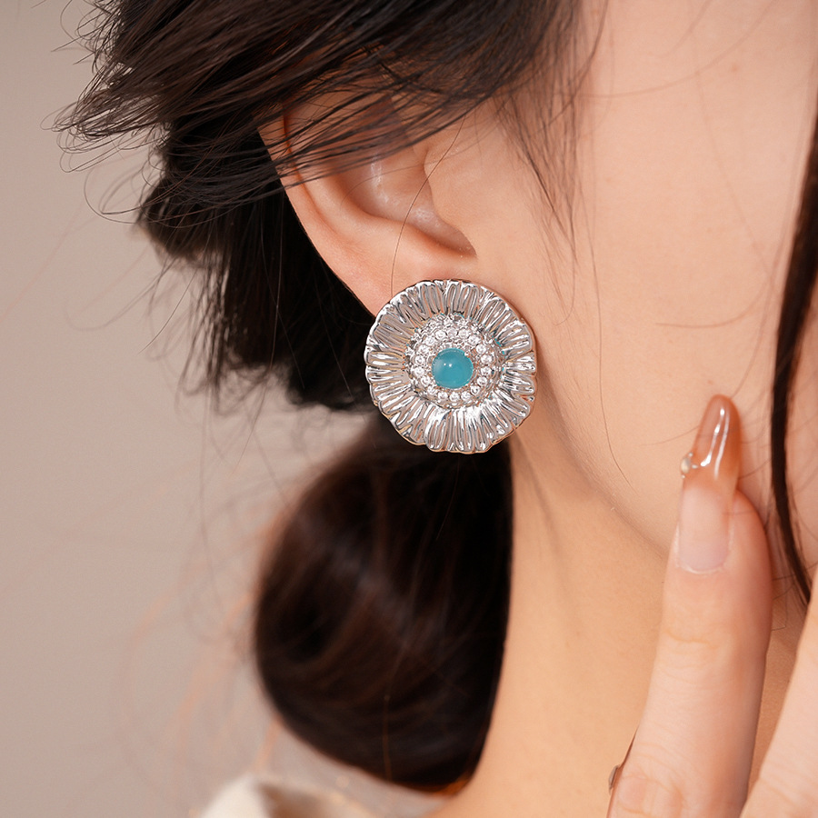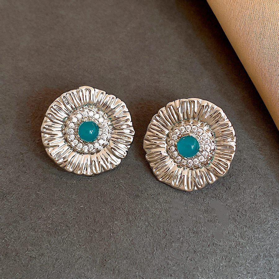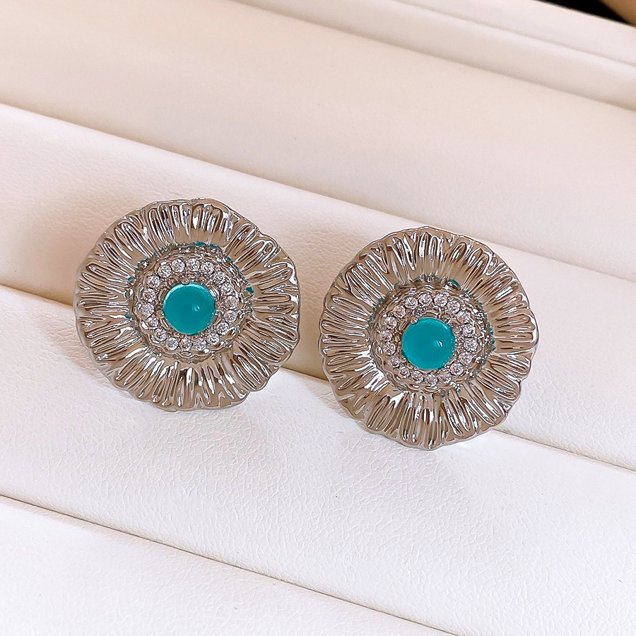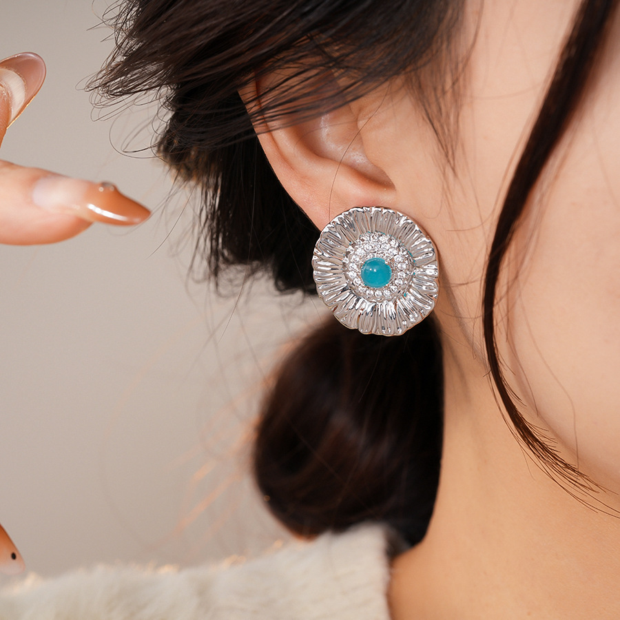 silver needle zircon grain round flower stud earrings europe and america cross border personalized fashion earrings light luxury high-grade earrings for women