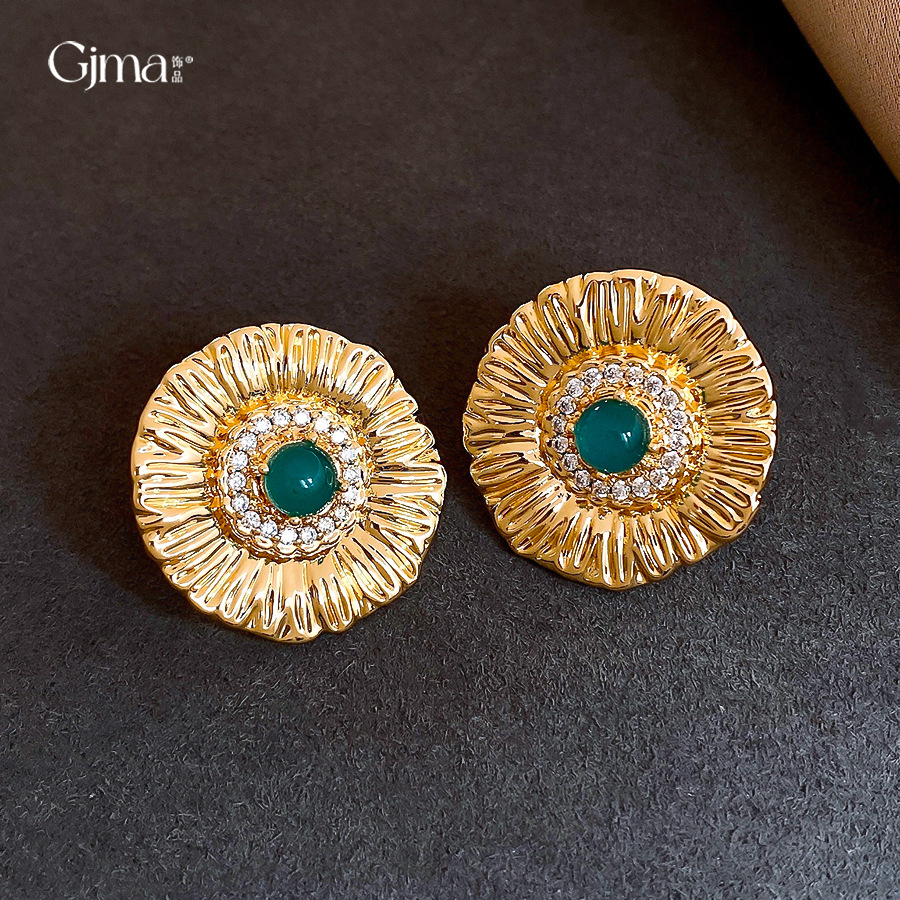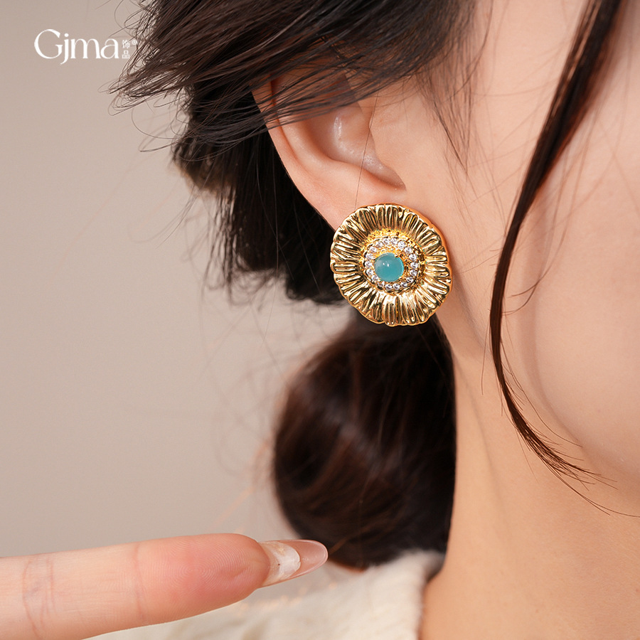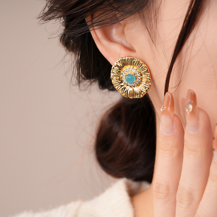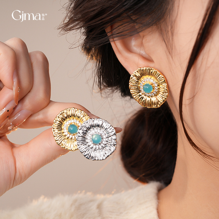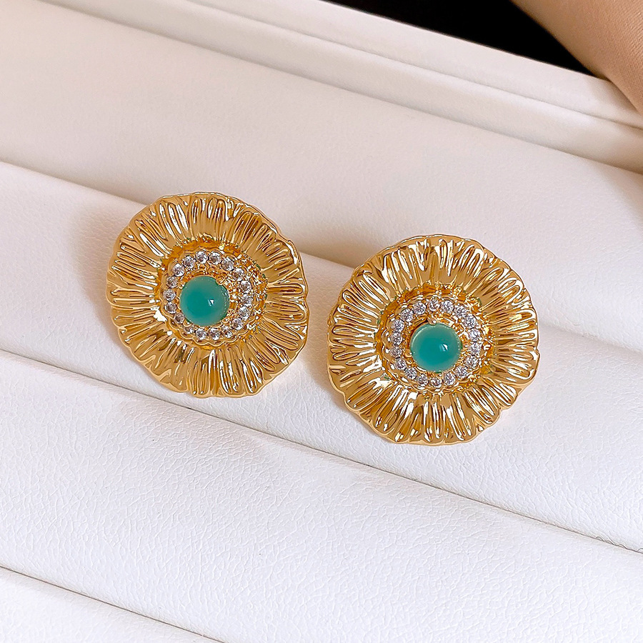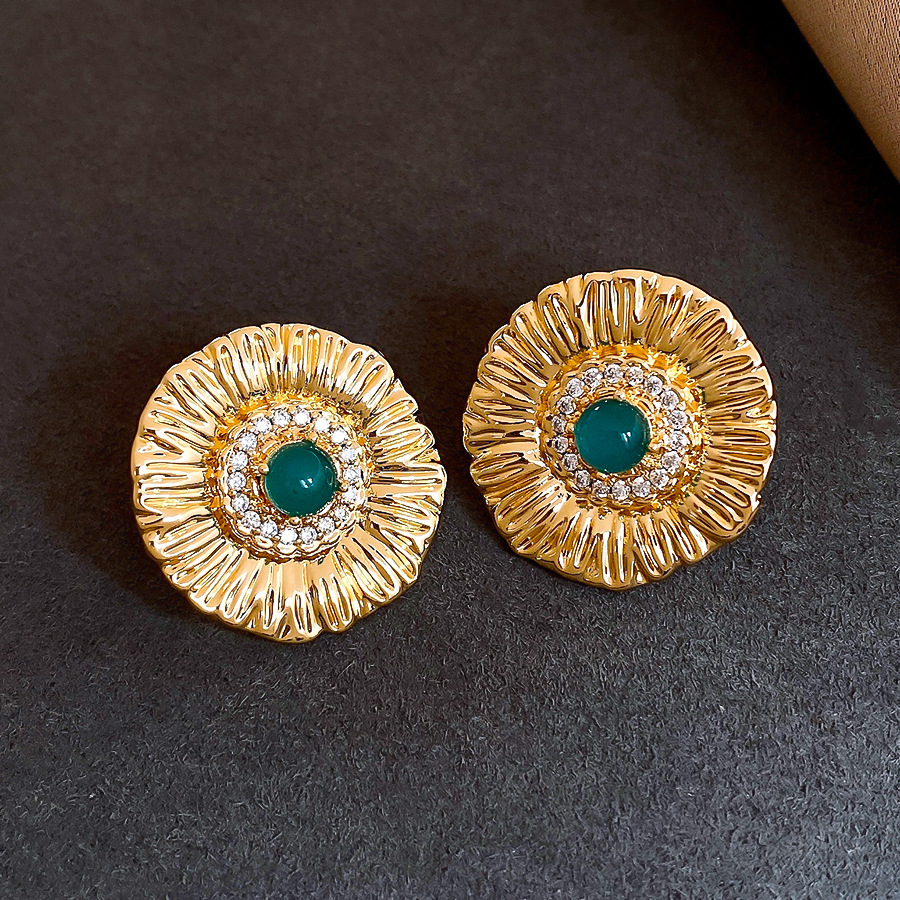 silver needle zircon grain round flower stud earrings europe and america cross border personalized fashion earrings light luxury high-grade earrings for women
