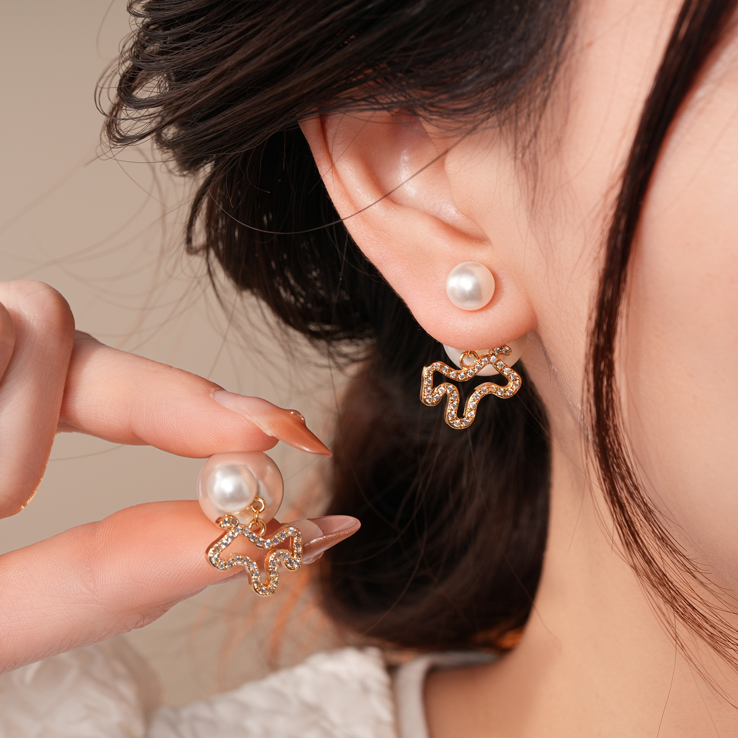 silver needle super flash zircon pony dual-wear pearl earrings light luxury high-grade ear studs birth year special interest earrings women