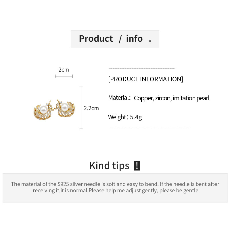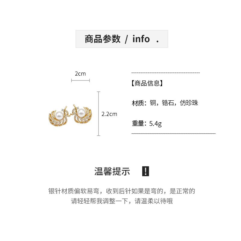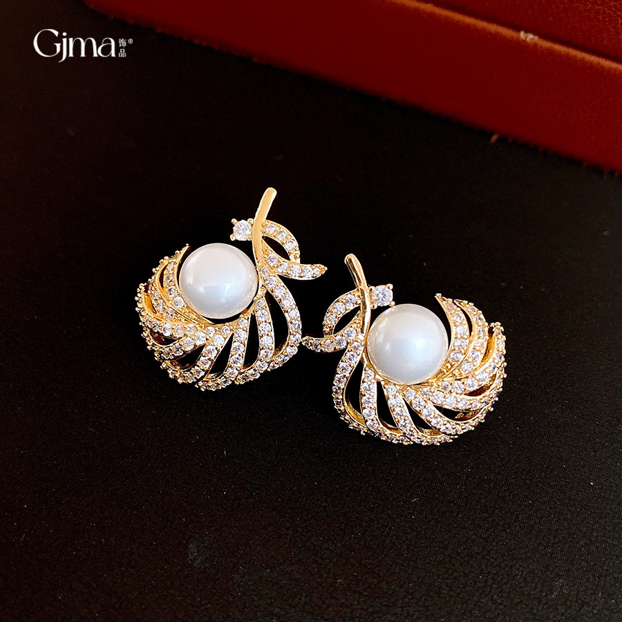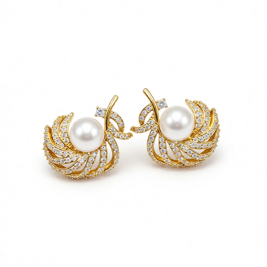 18k gold electroplated silver needle super flash zircon pearl earrings light luxury high-grade earrings french retro earrings for women