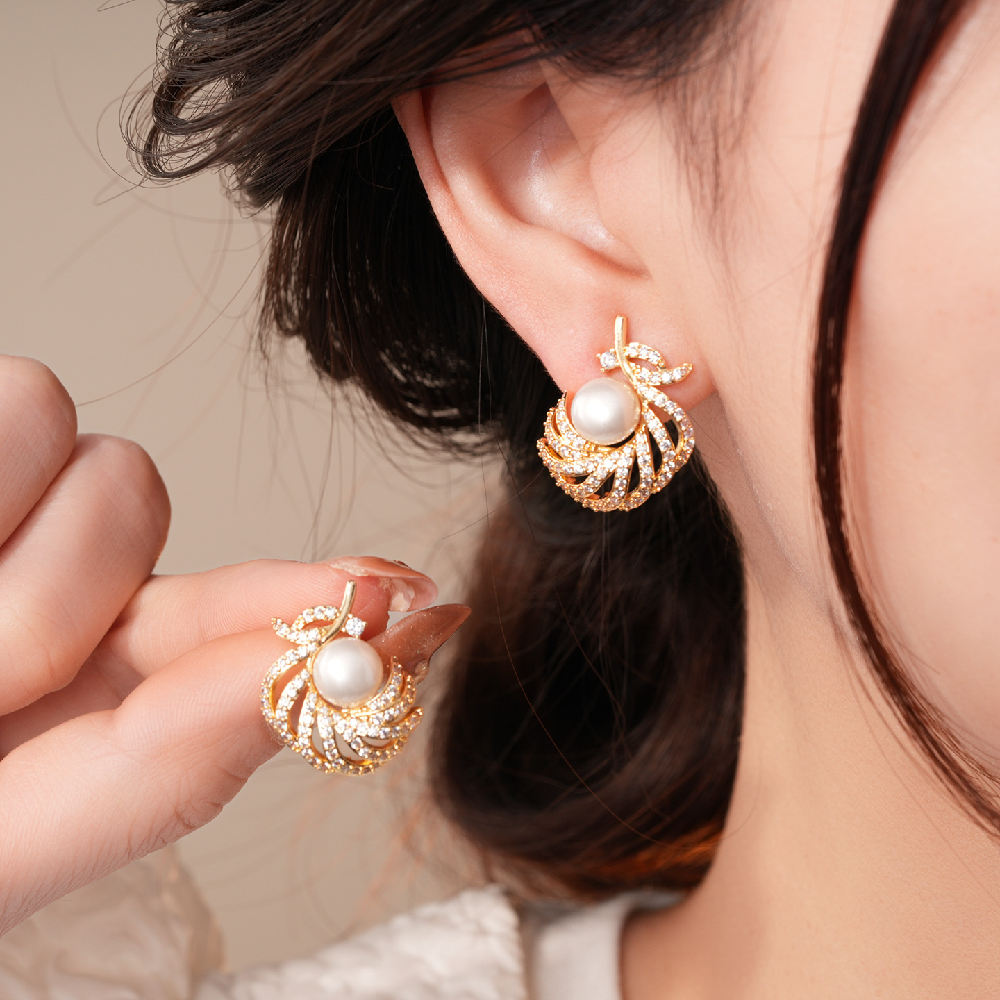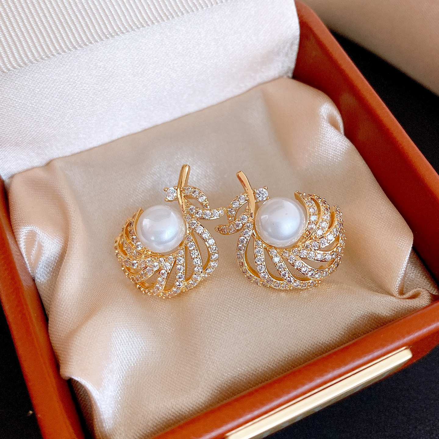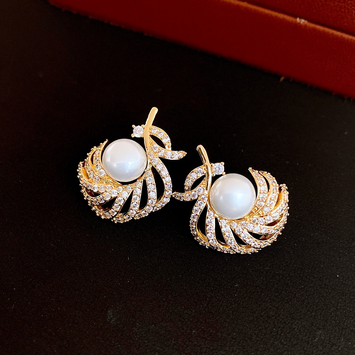 18k gold electroplated silver needle super flash zircon pearl earrings light luxury high-grade earrings french retro earrings for women