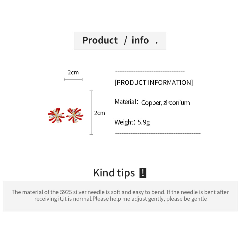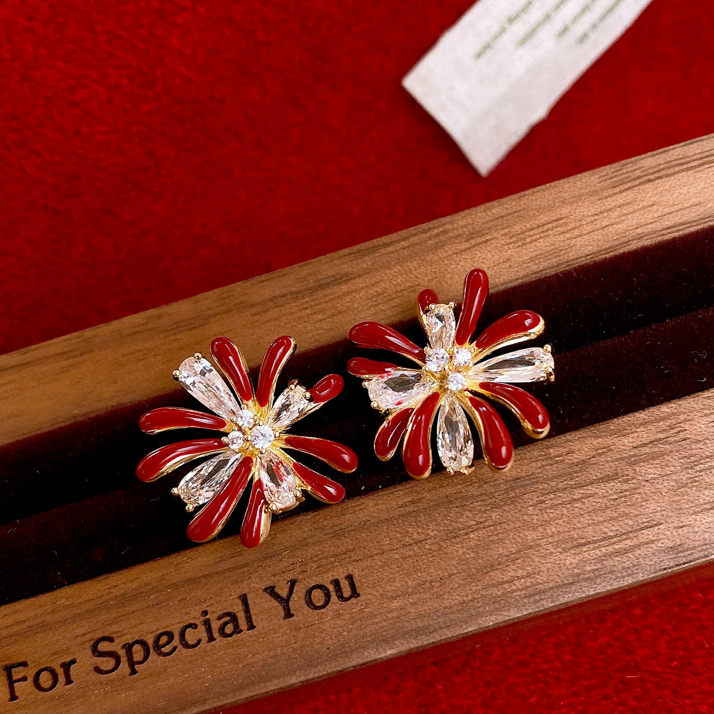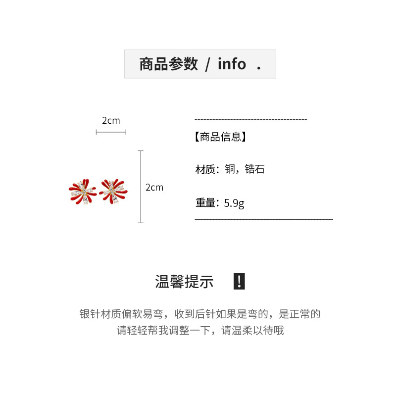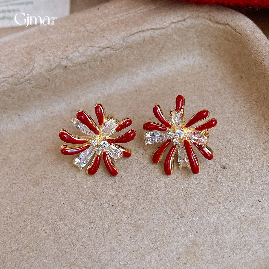 18k gold electroplated silver needle zircon red drop oil fireworks earrings light luxury high-grade earrings retro style earrings
