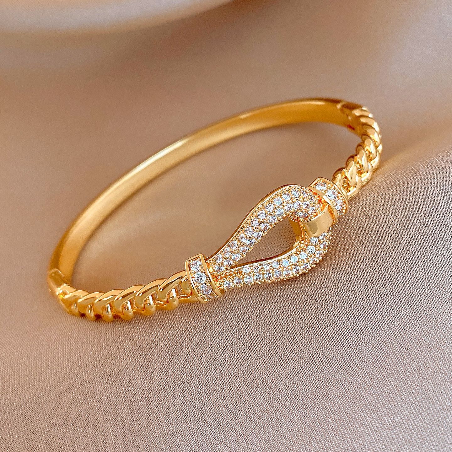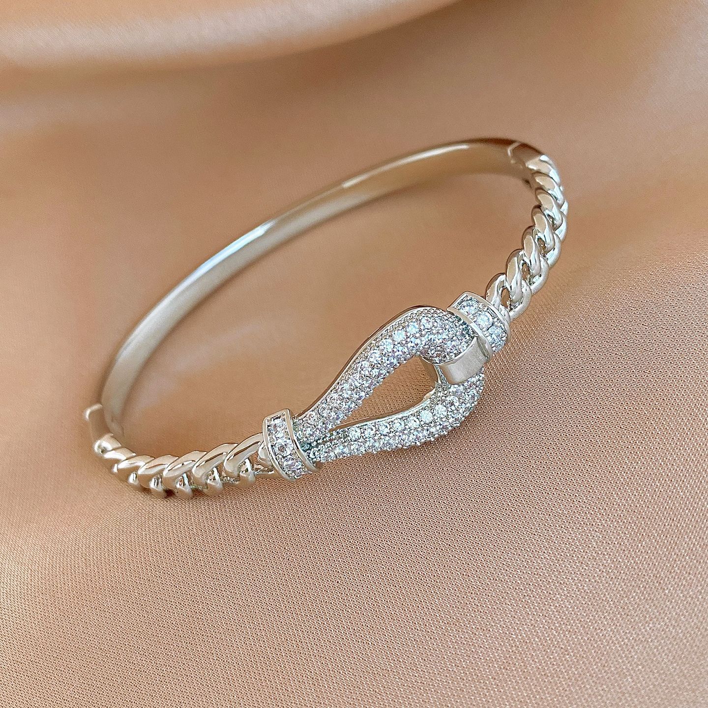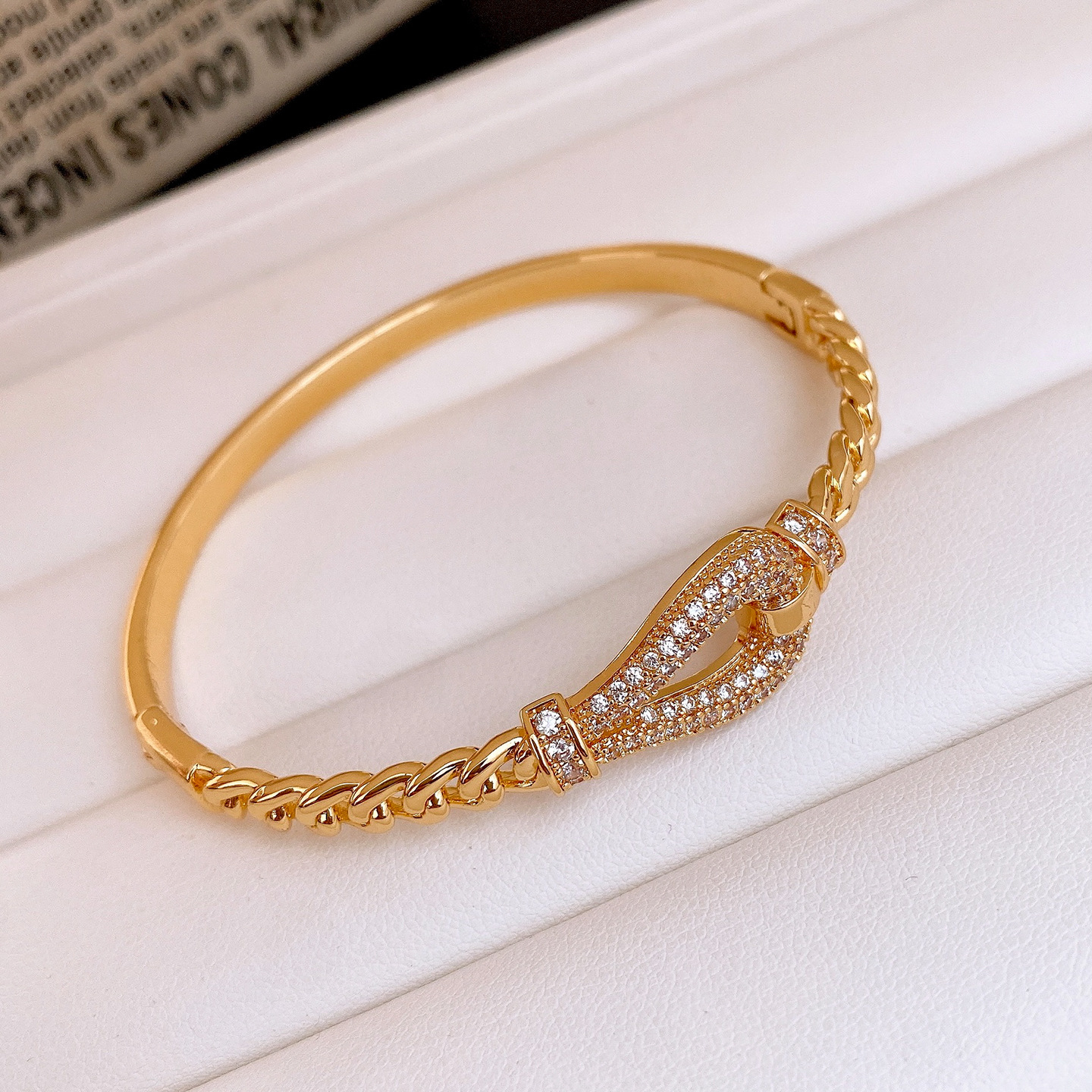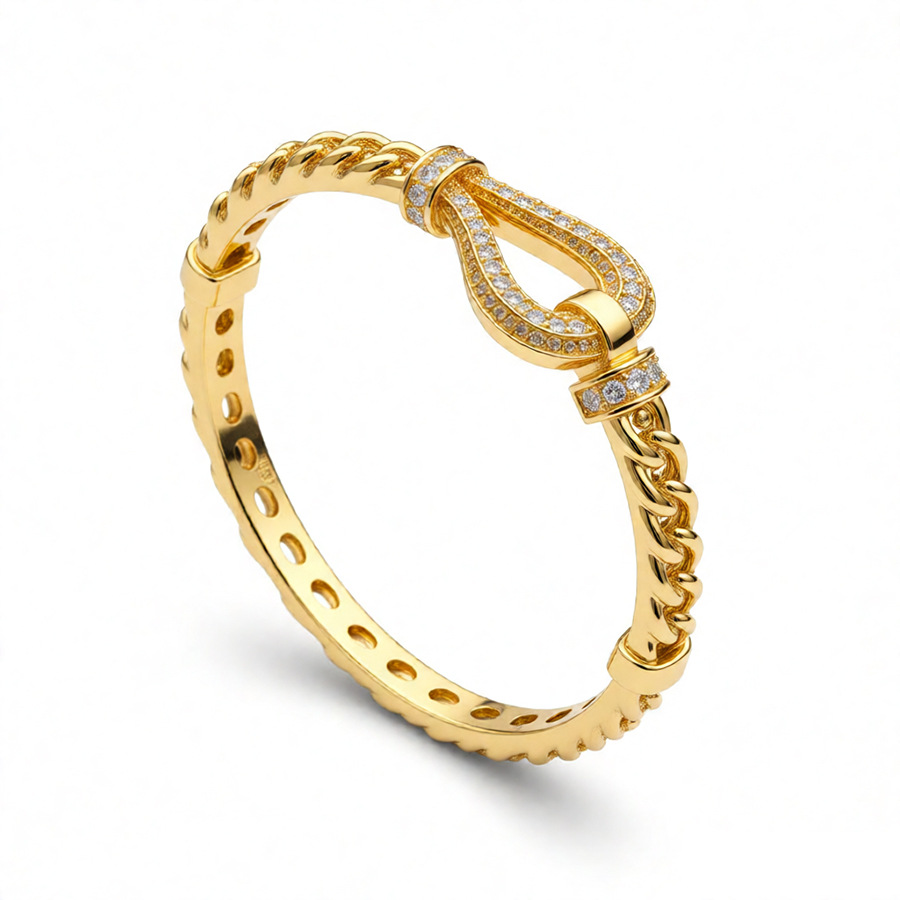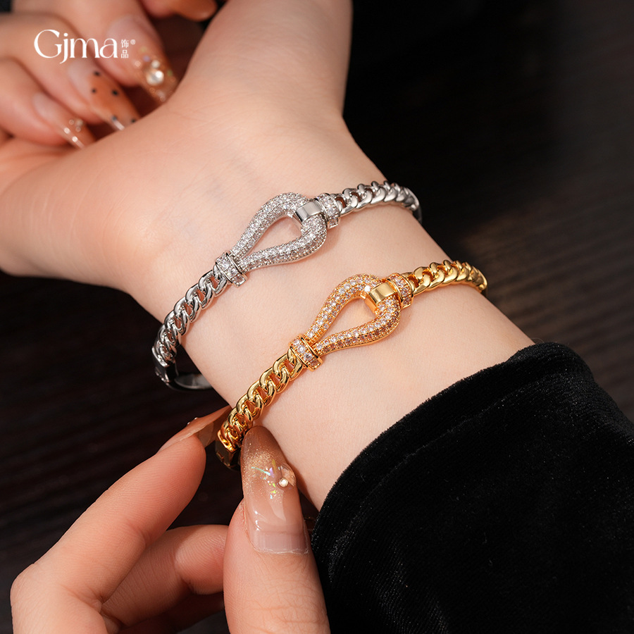 18k gold electroplated zircon horseshoe buckle bracelet european and american fashion special-interest bracelet light luxury high-grade bracelet for women