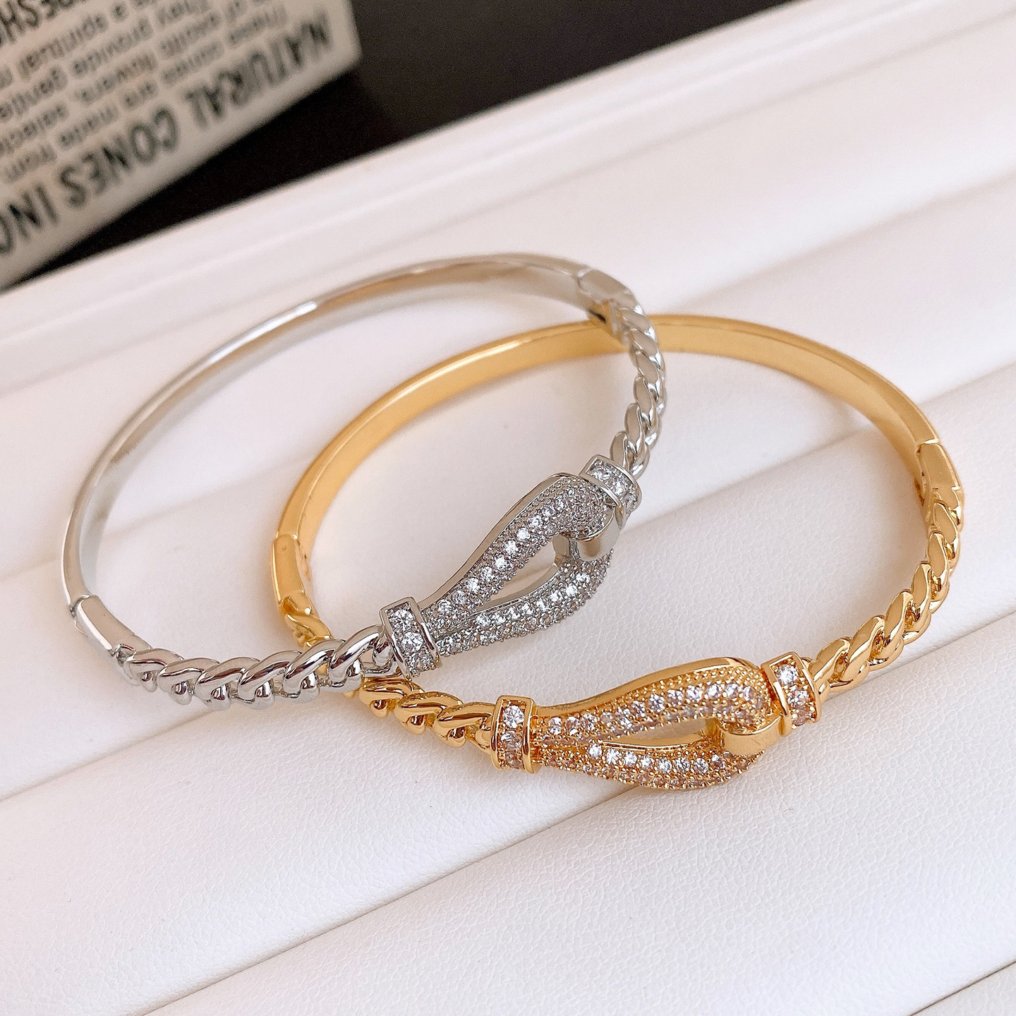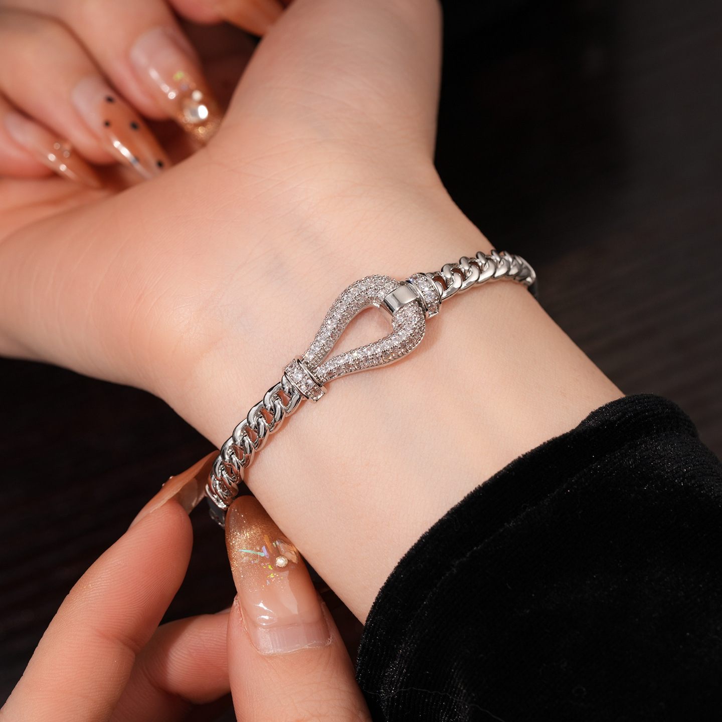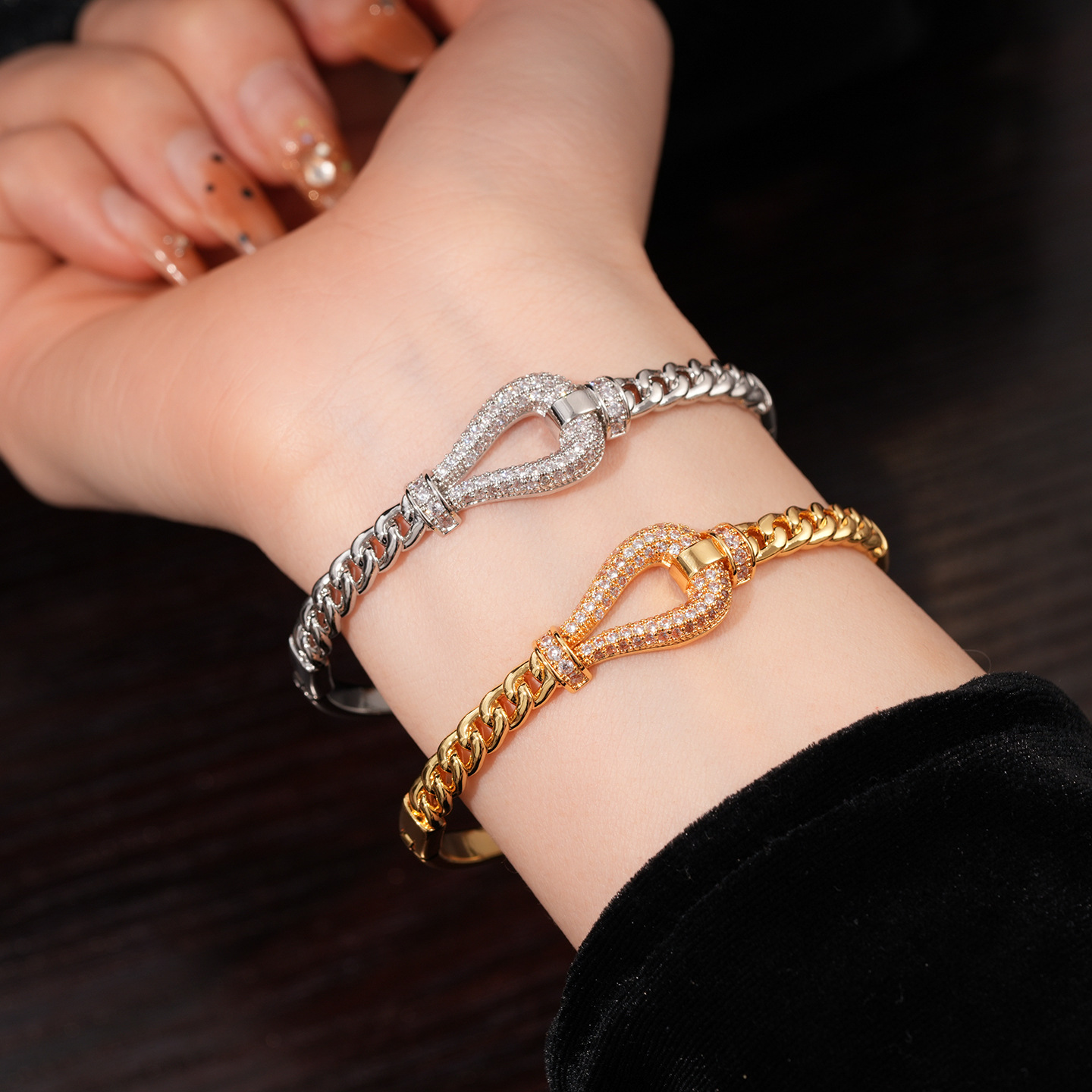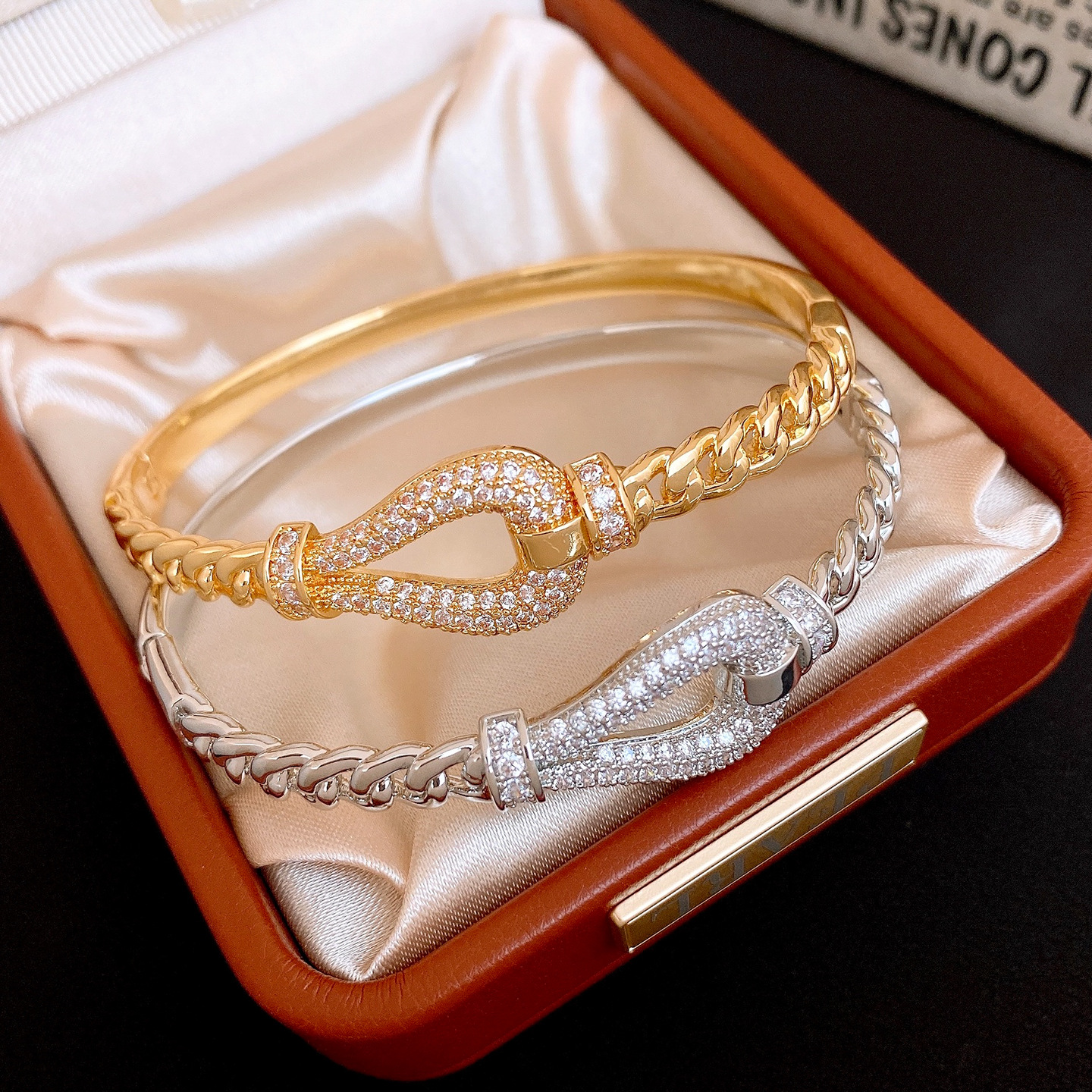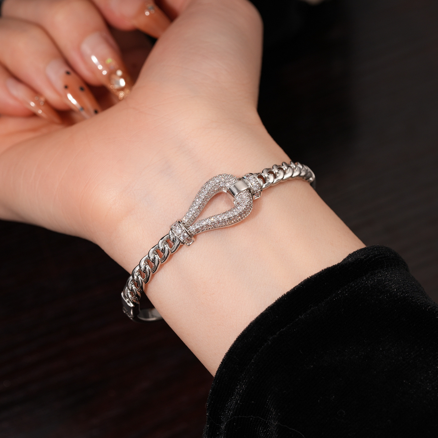 18k gold electroplated zircon horseshoe buckle bracelet european and american fashion special-interest bracelet light luxury high-grade bracelet for women