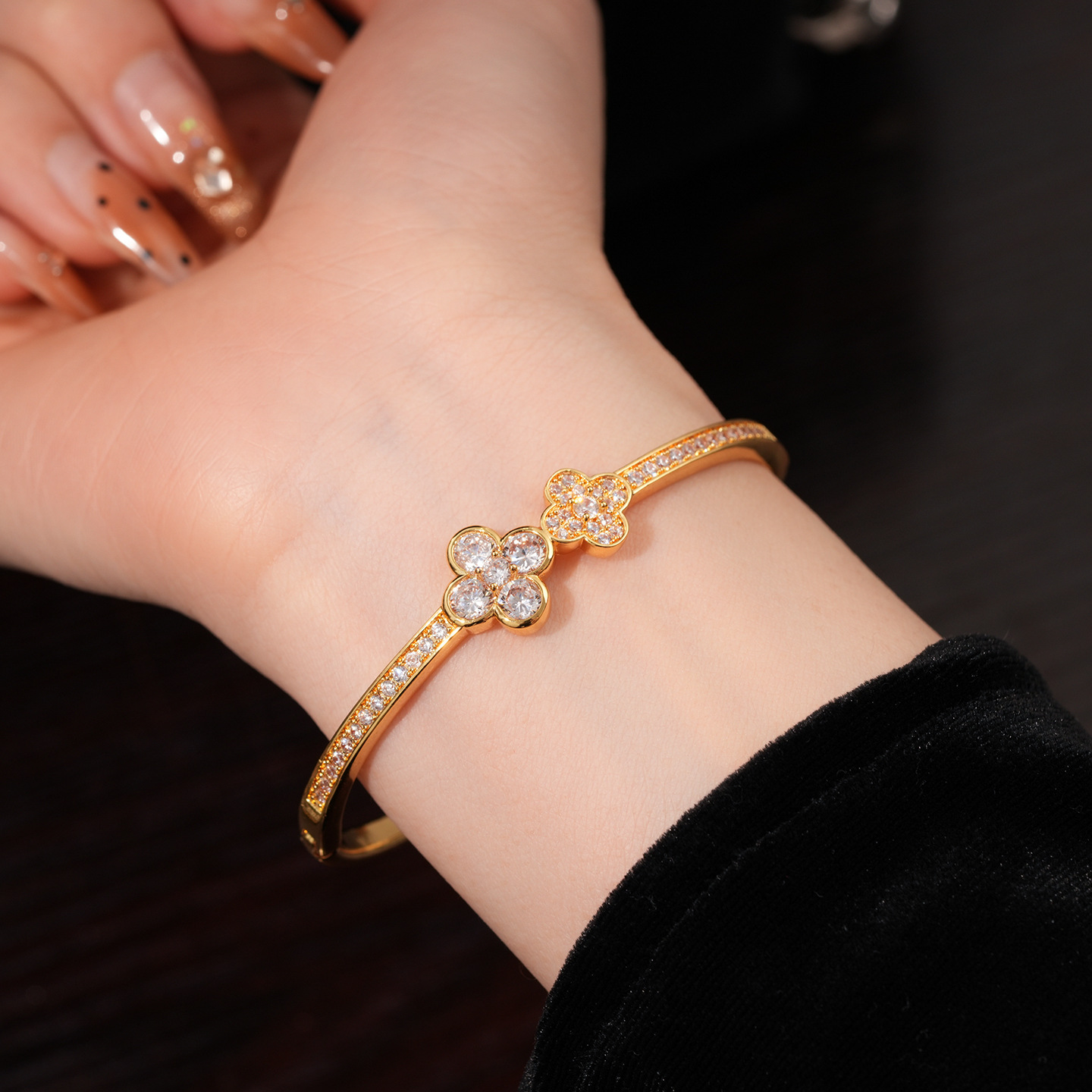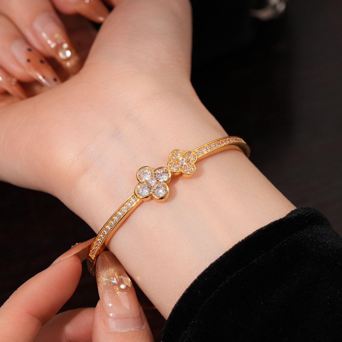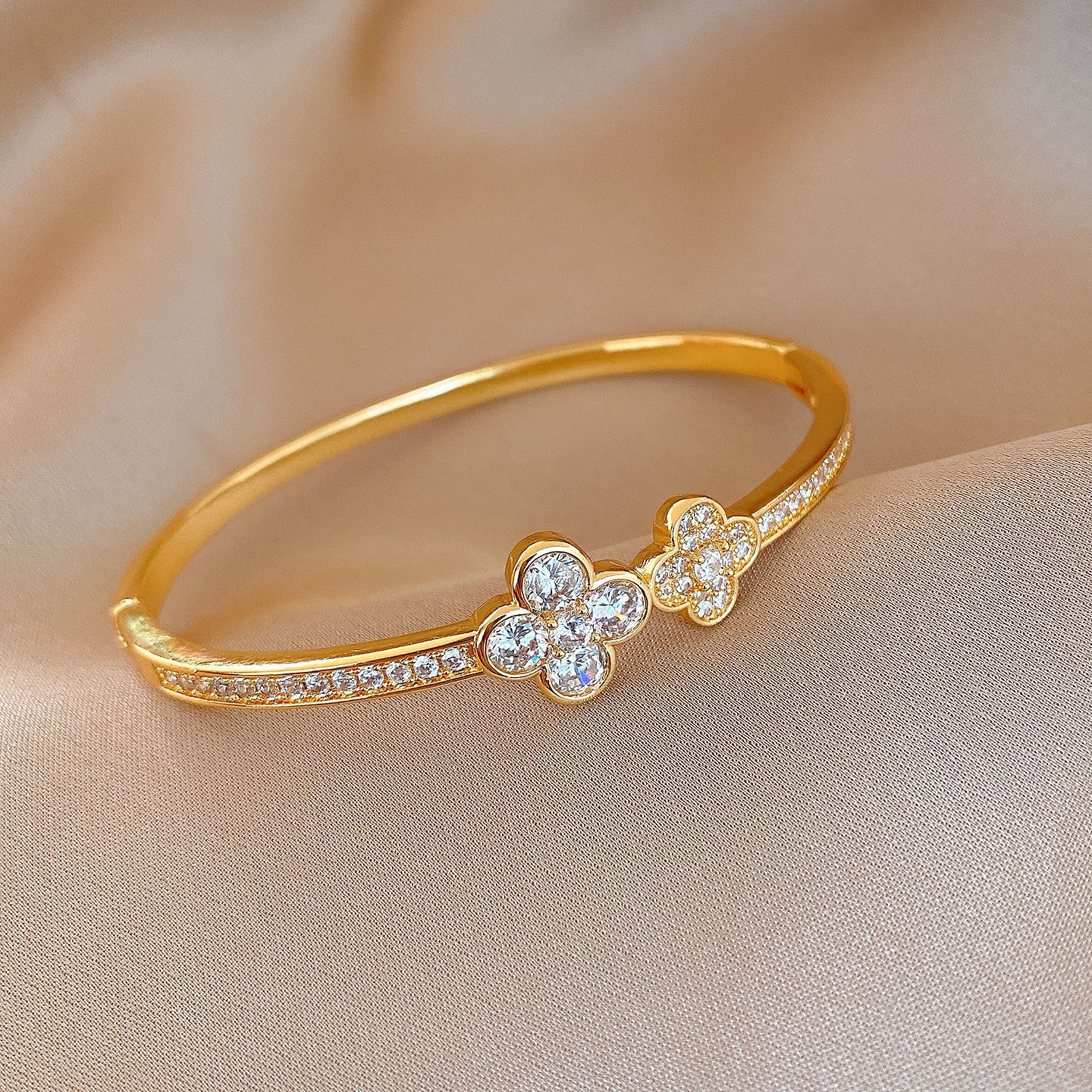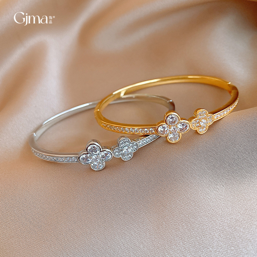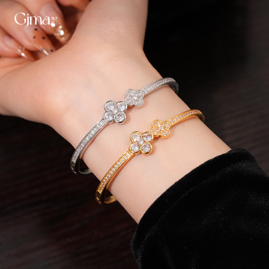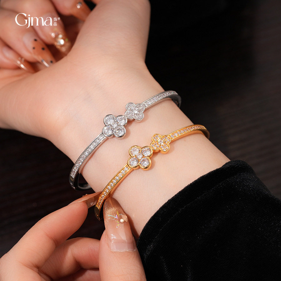 18k gold plated zircon flower buckle bracelet light luxury high sense bracelet europe and america cross border fashion ornament female
