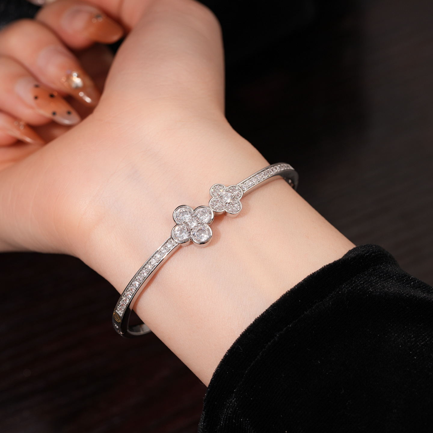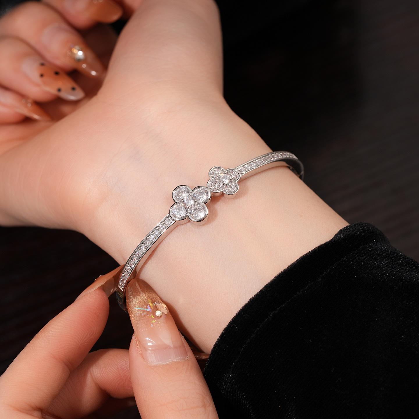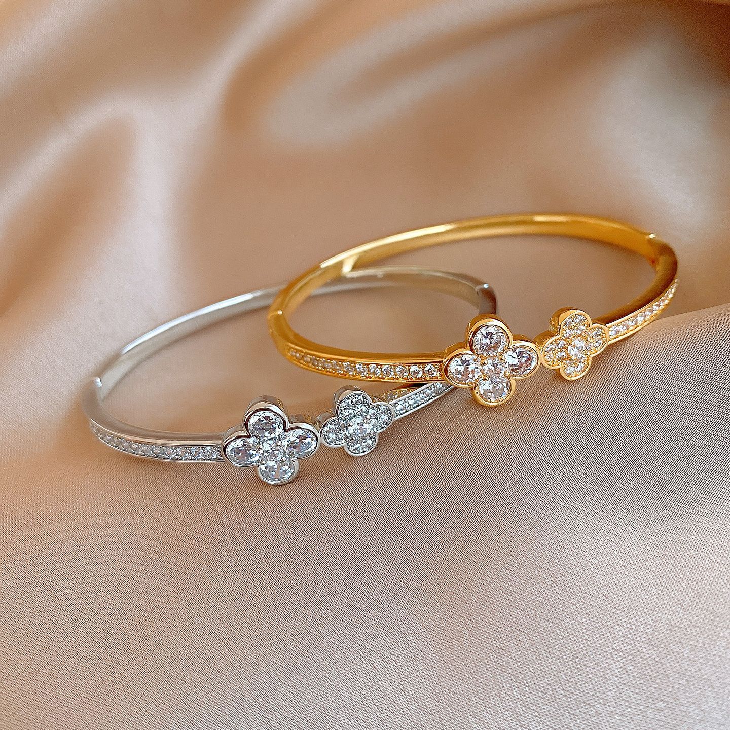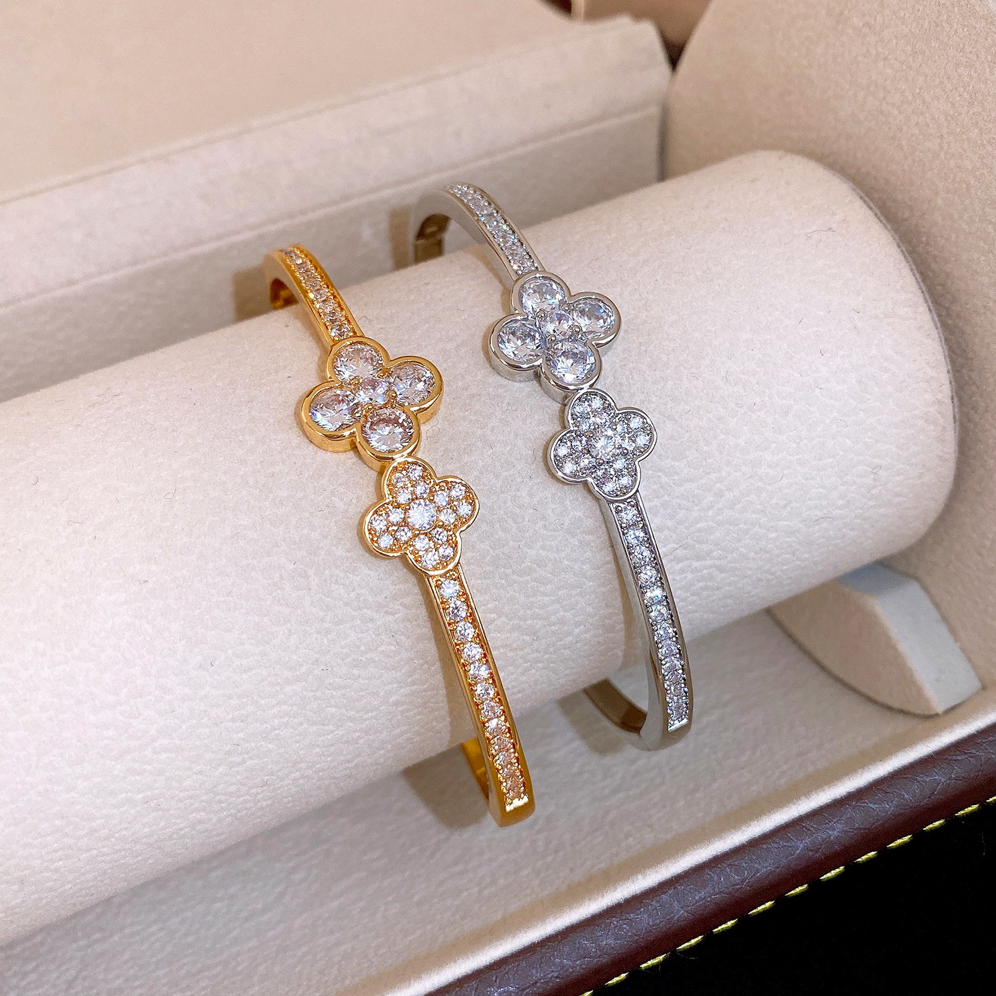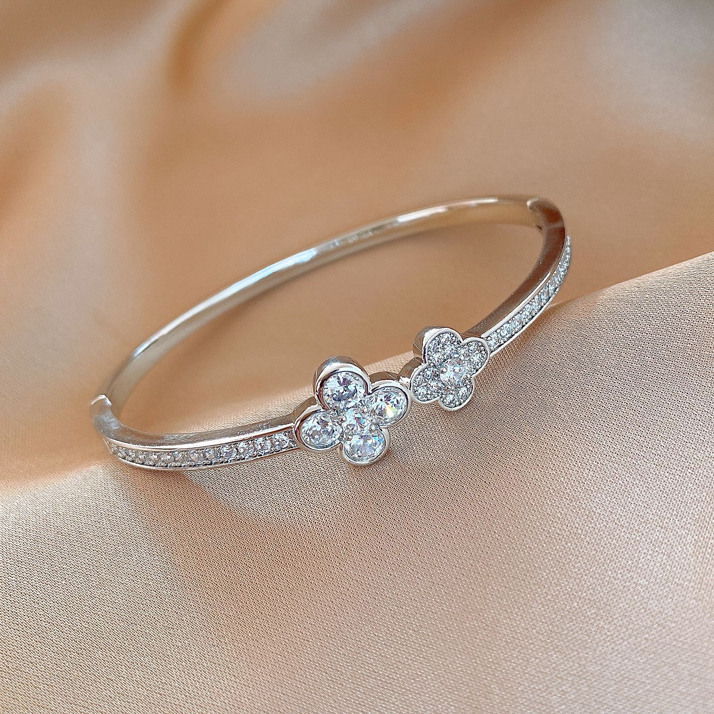 18k gold plated zircon flower buckle bracelet light luxury high sense bracelet europe and america cross border fashion ornament female