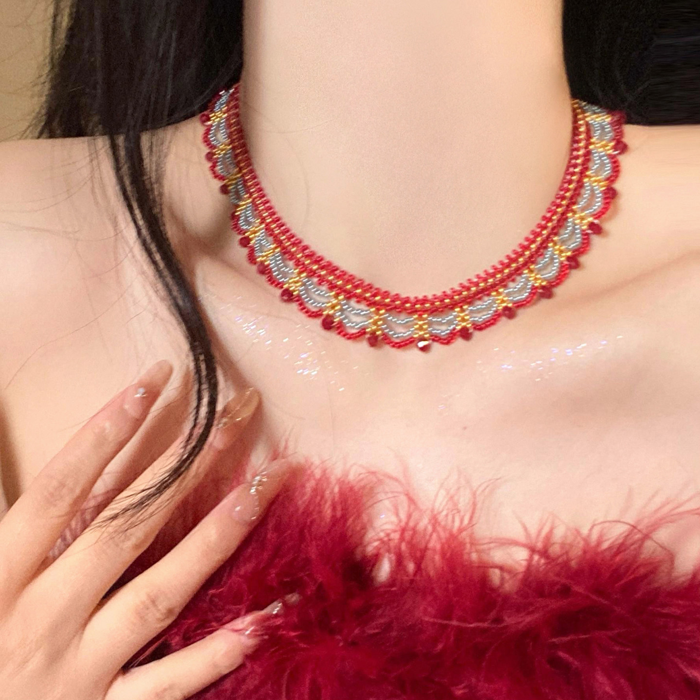 necklace-golden-red-gray