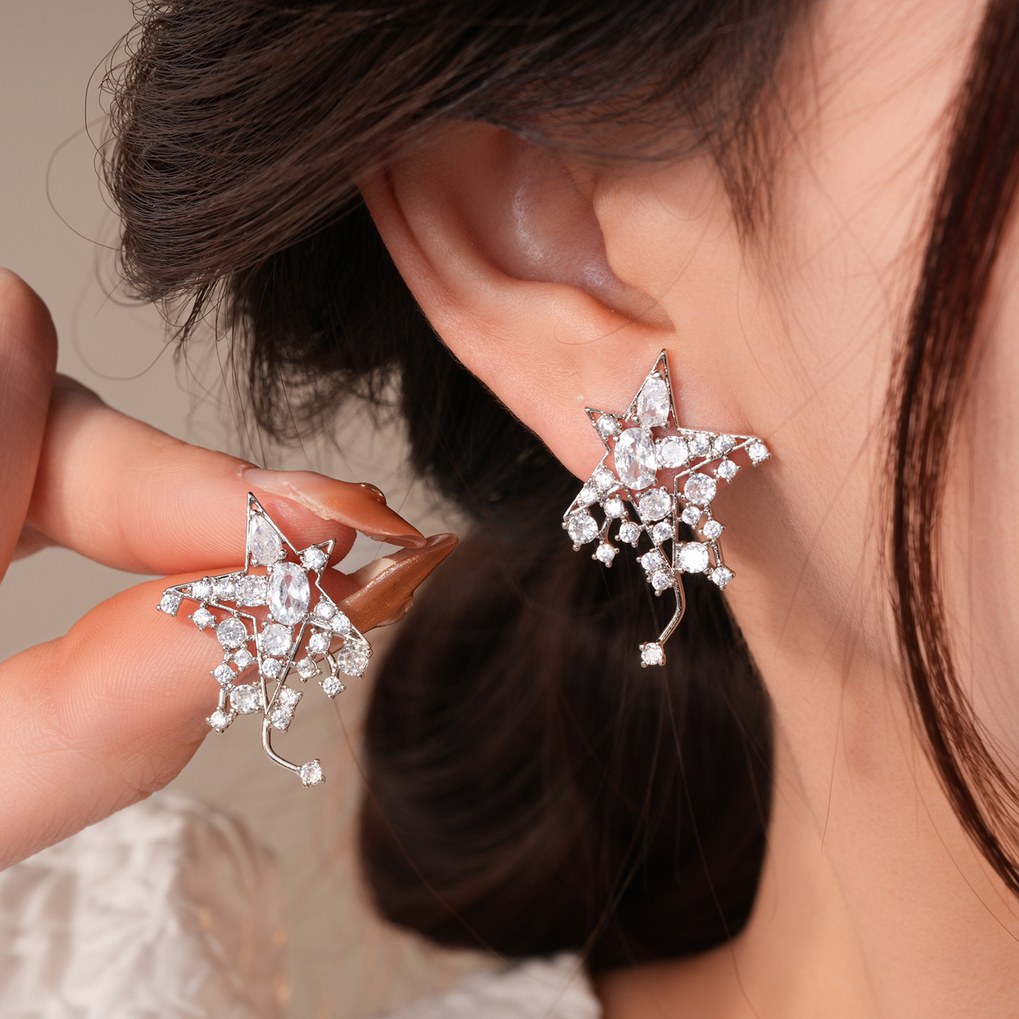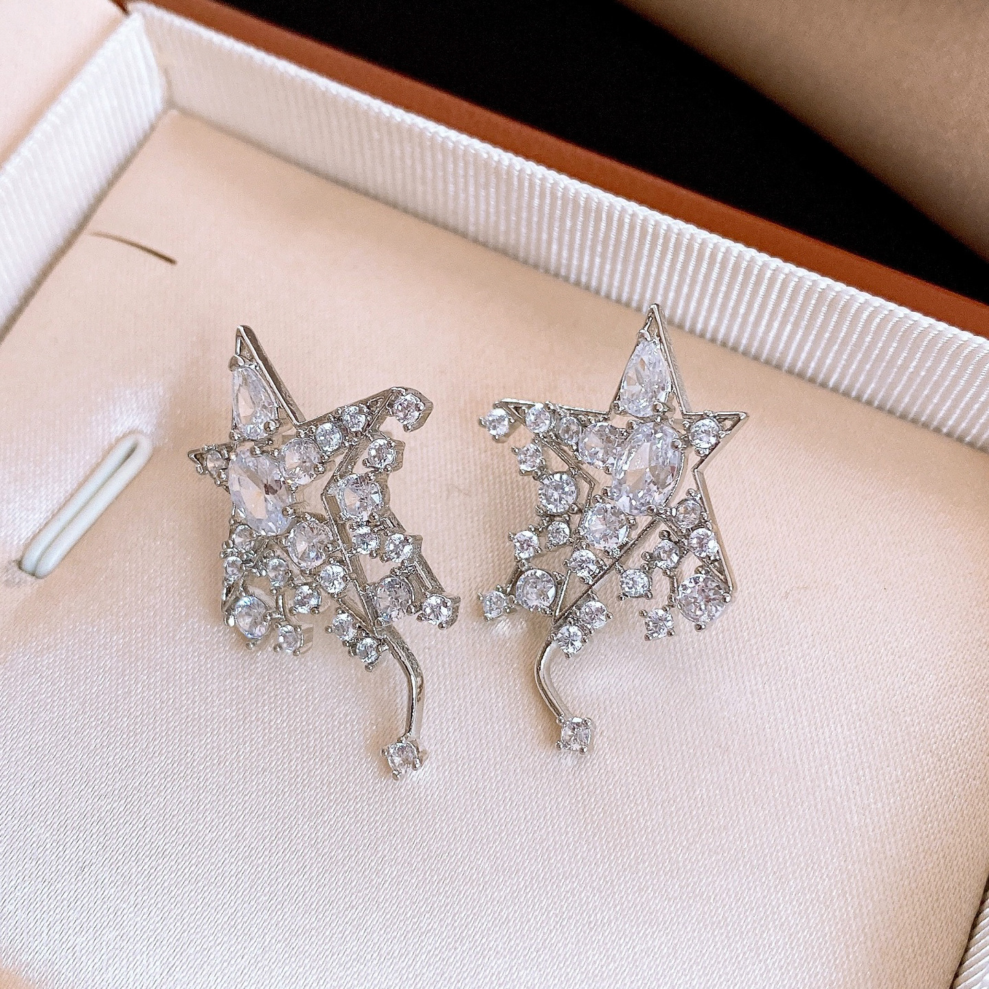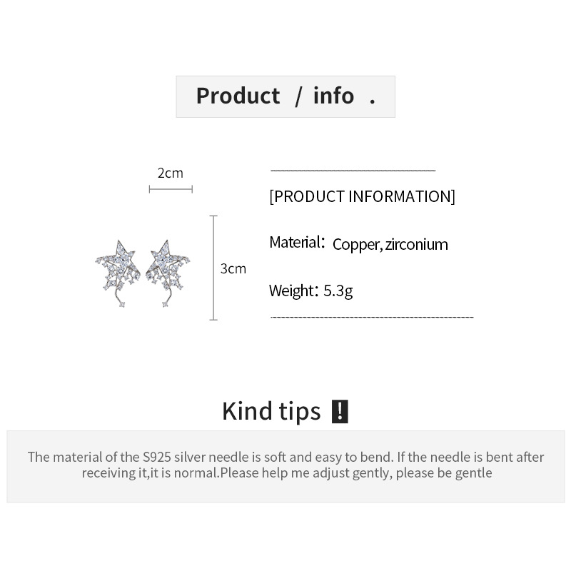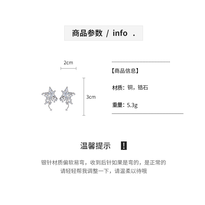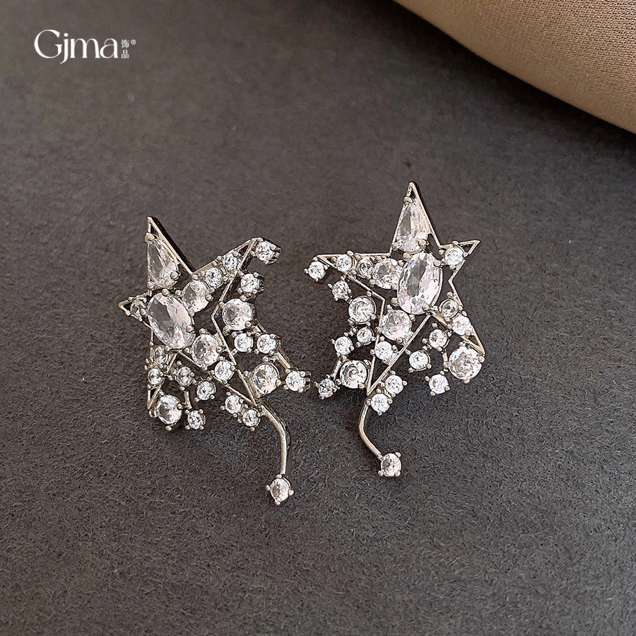 silver needle korean style super flash zircon star ear studs light luxury high-end sense delicate earrings fashion all-matching special-interest earrings women