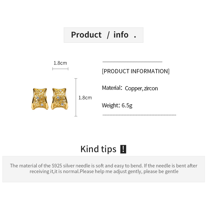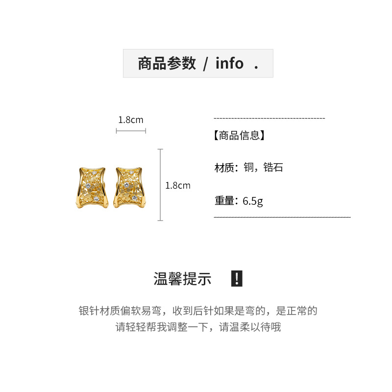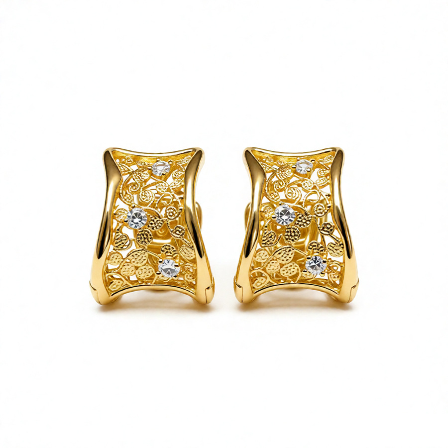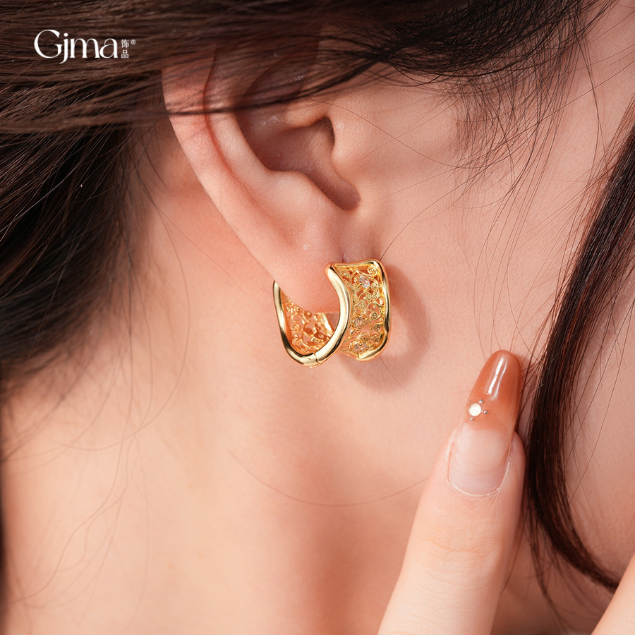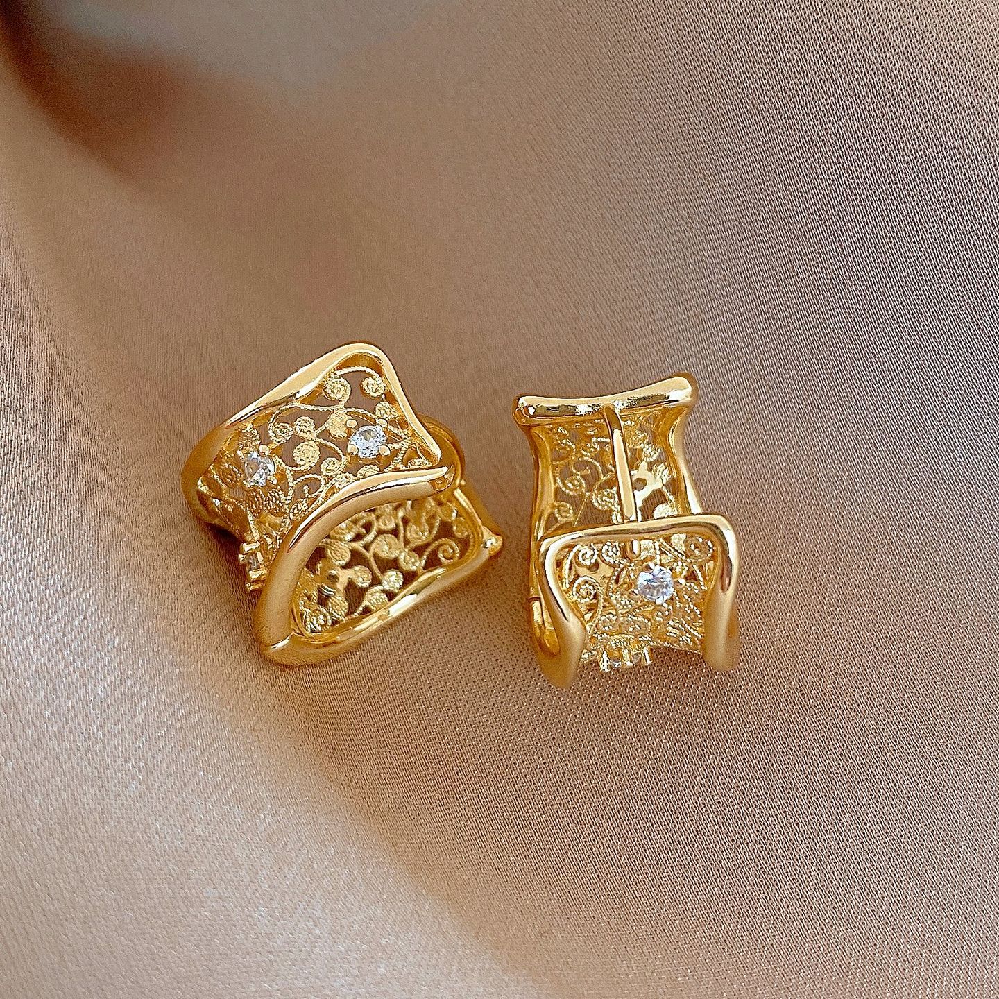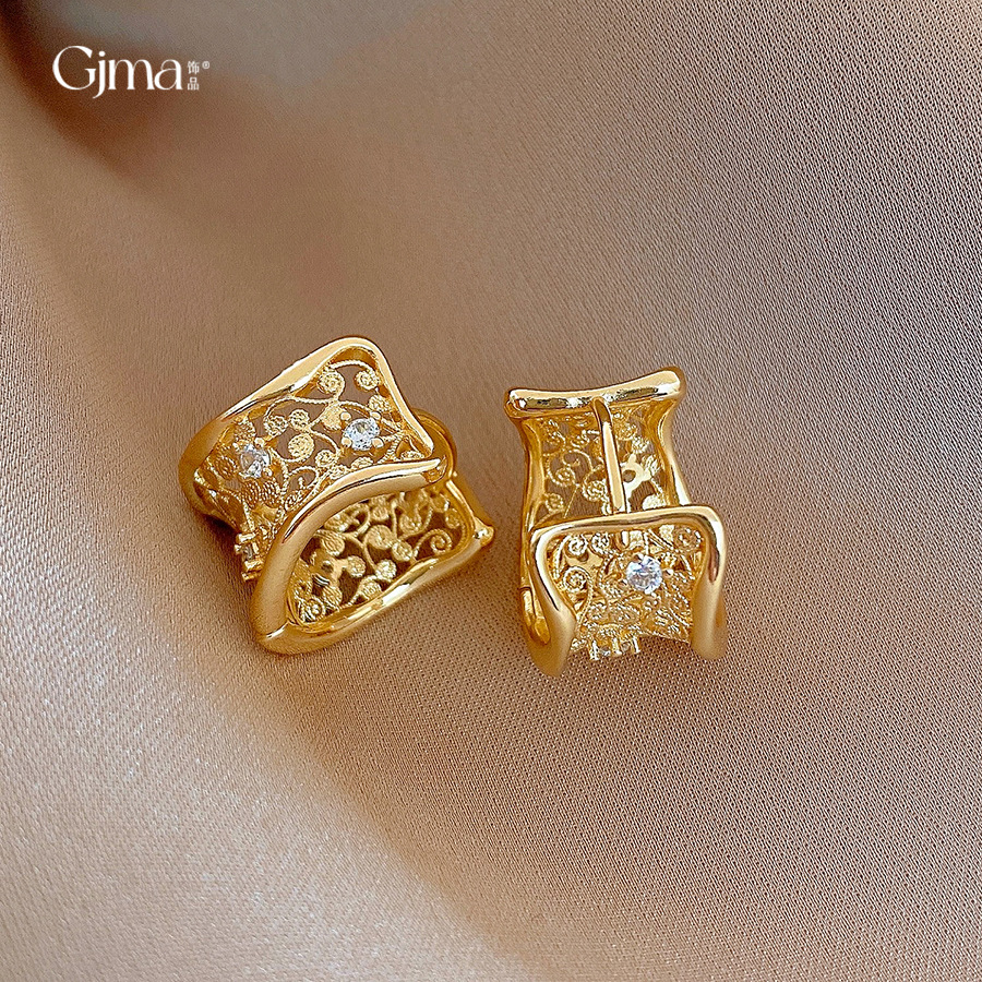 18k gold plated zircon hollow round ear clip light luxury high-grade earrings french retro easy matching earrings for women