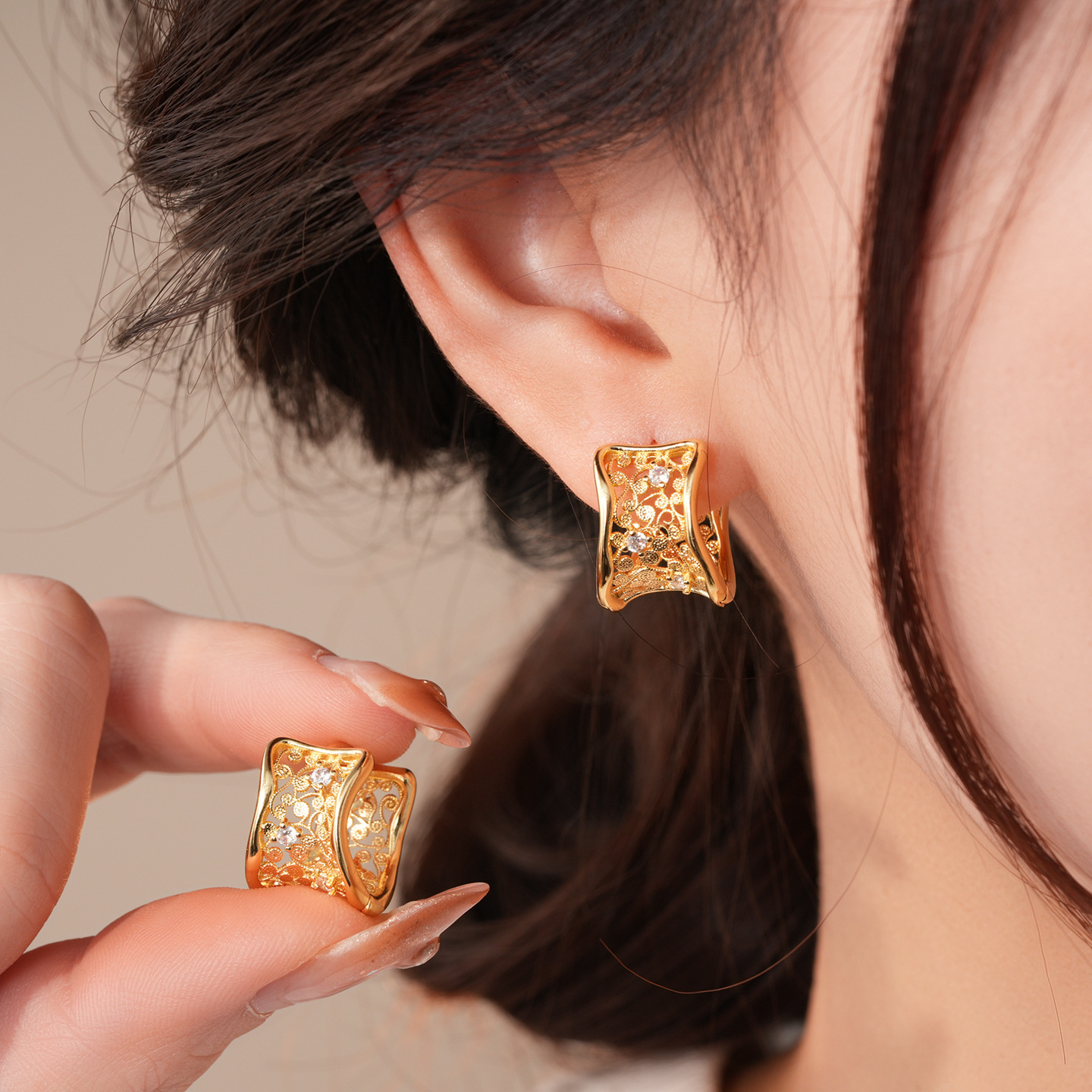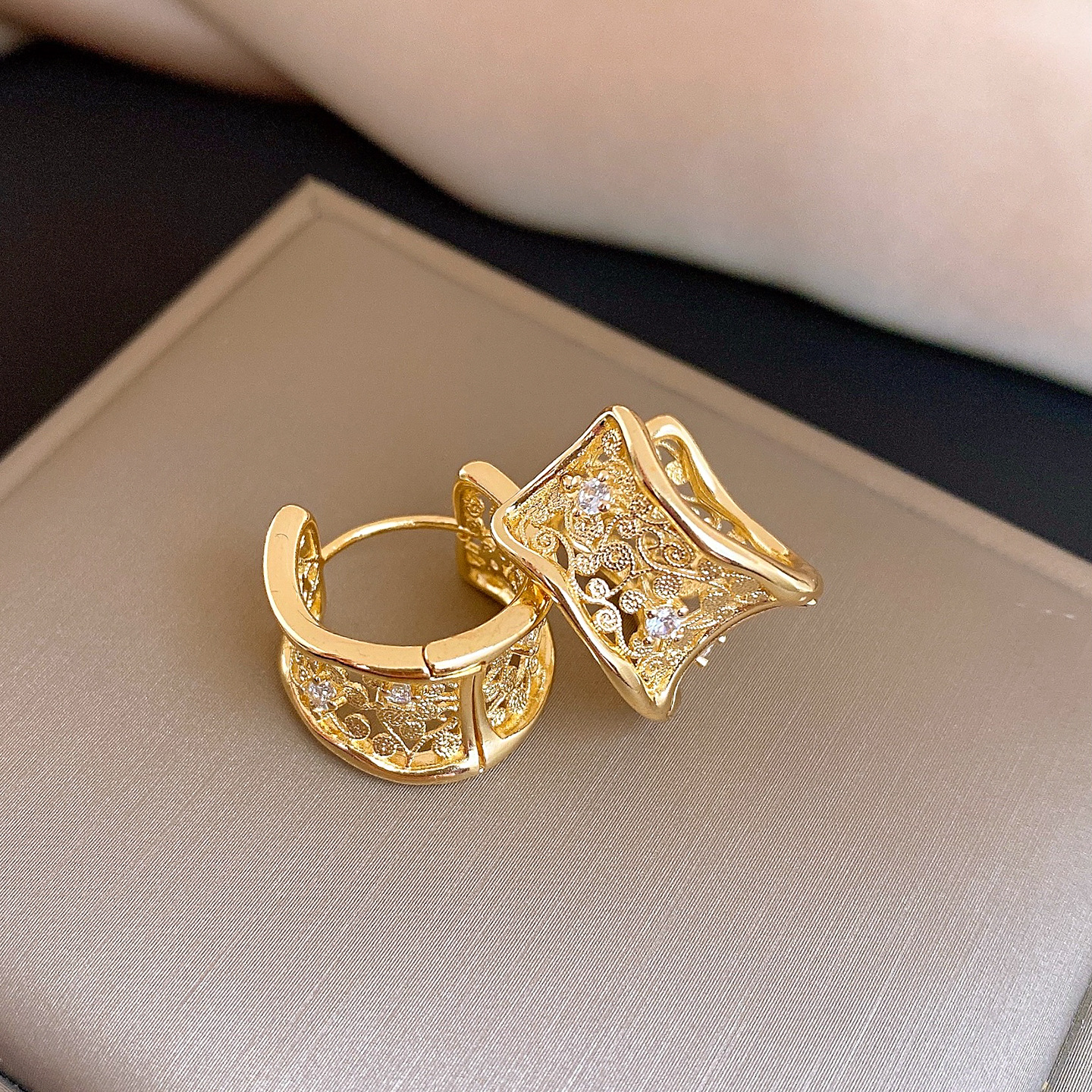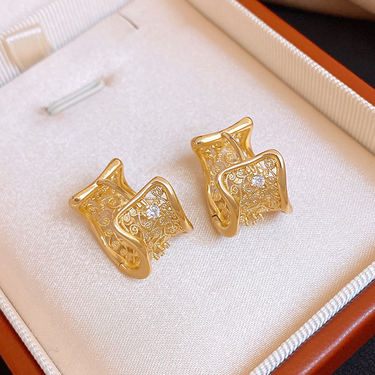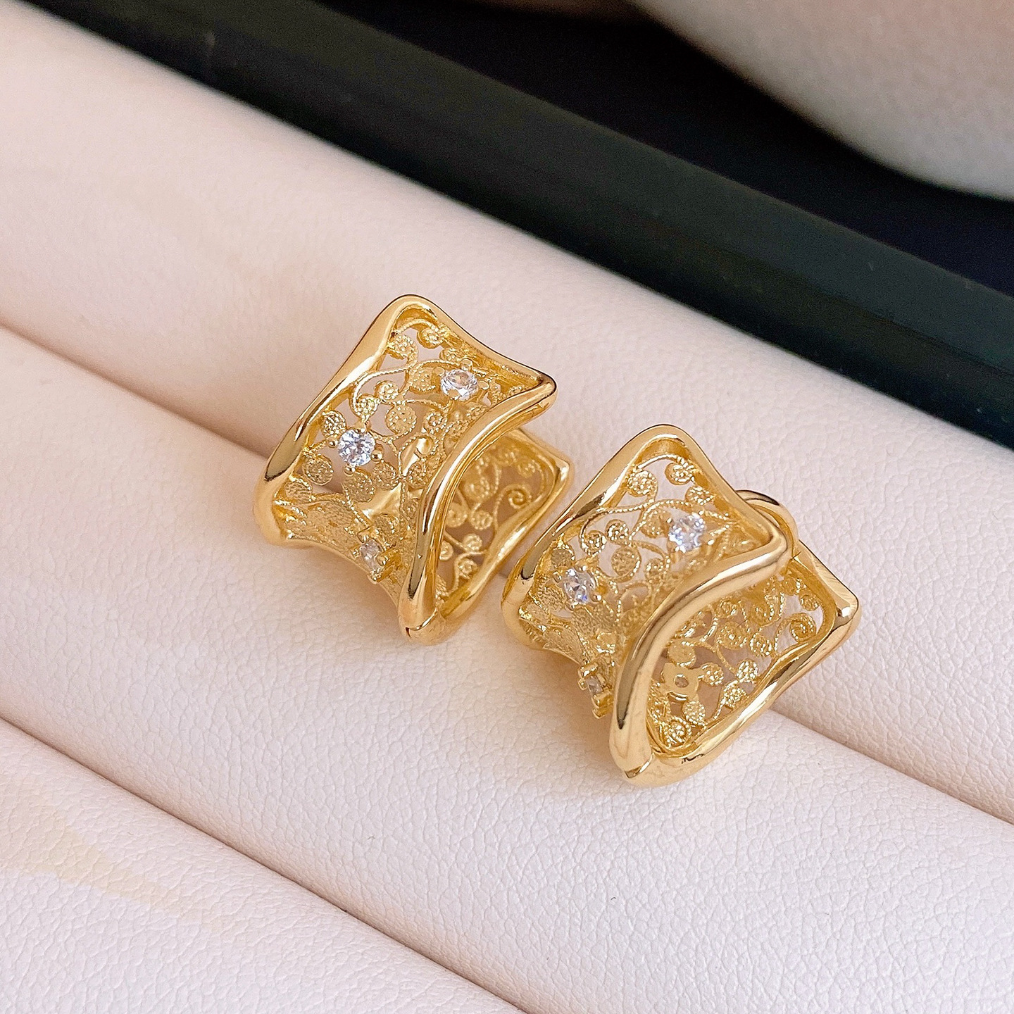 18k gold plated zircon hollow round ear clip light luxury high-grade earrings french retro easy matching earrings for women