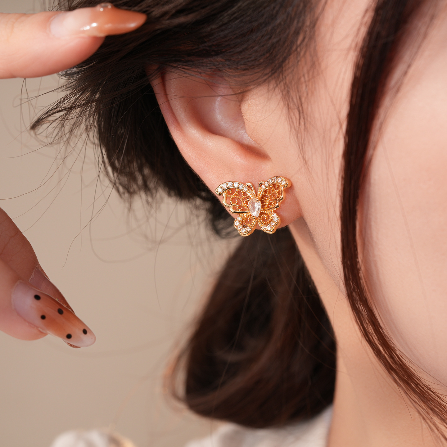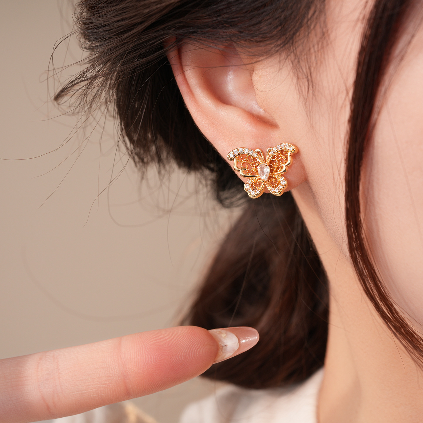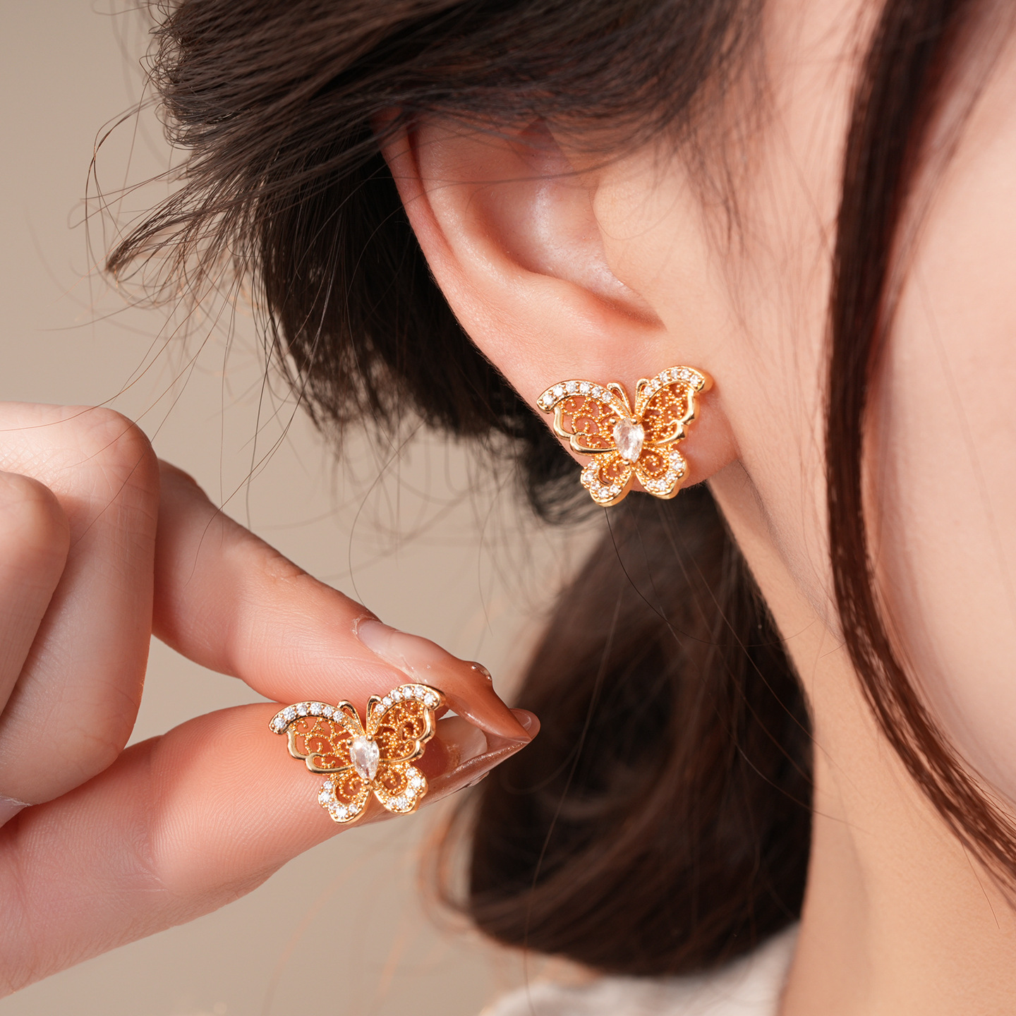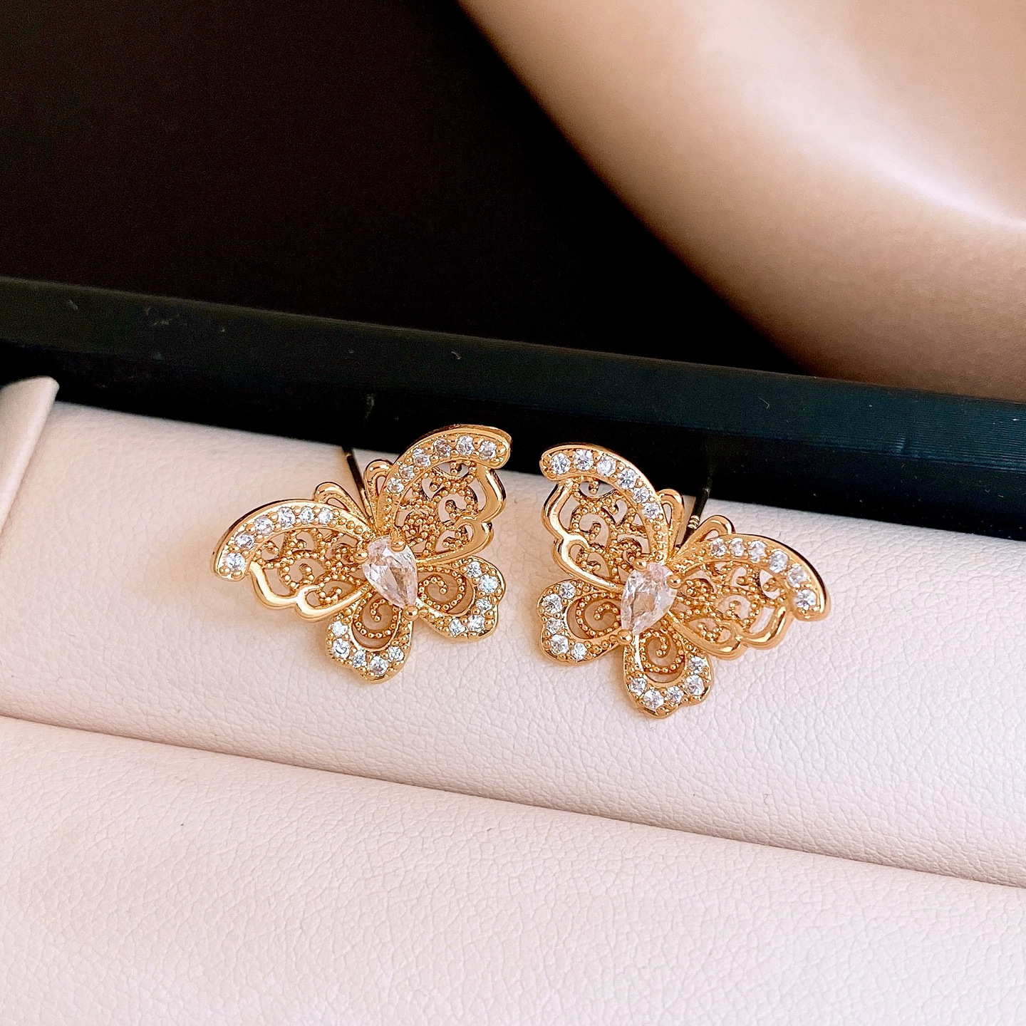 18k gold electroplated silver needle zircon butterfly studs light luxury high-grade earrings french retro fashion earrings for women