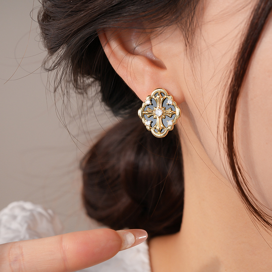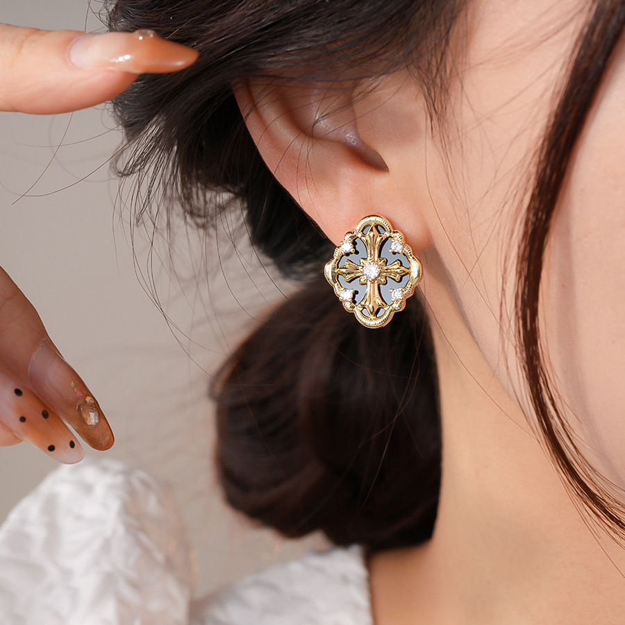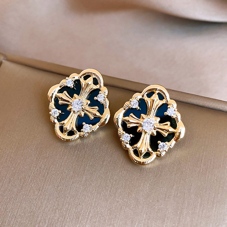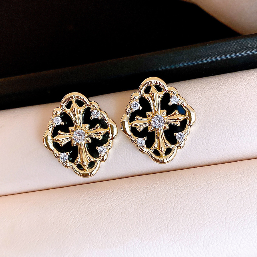 silver needle retro style zircon diamond cross stud earrings light luxury high-grade earrings european and american niche temperament earrings for women