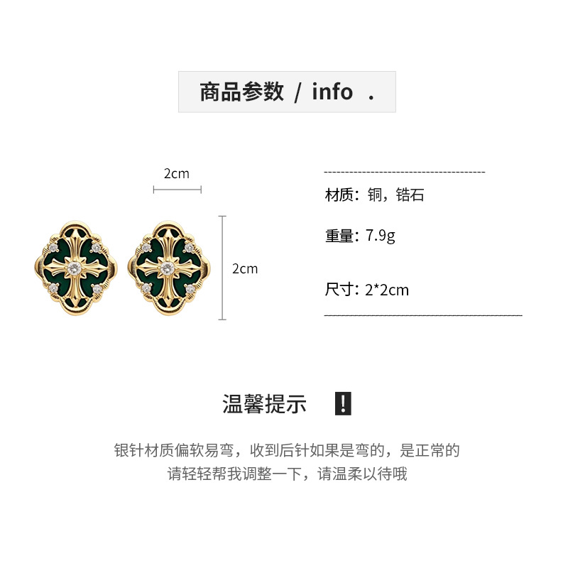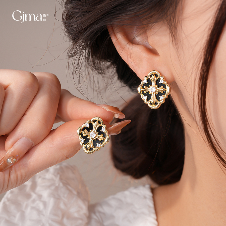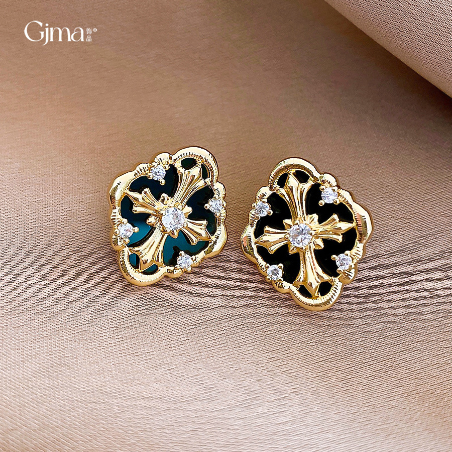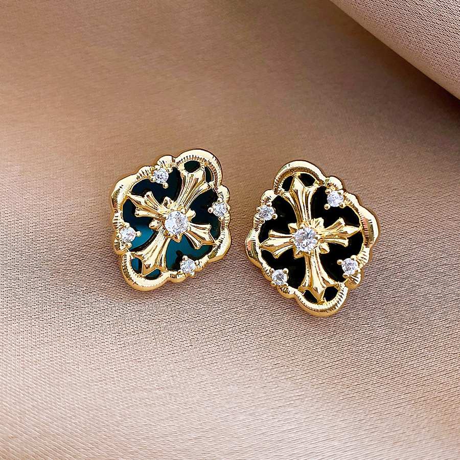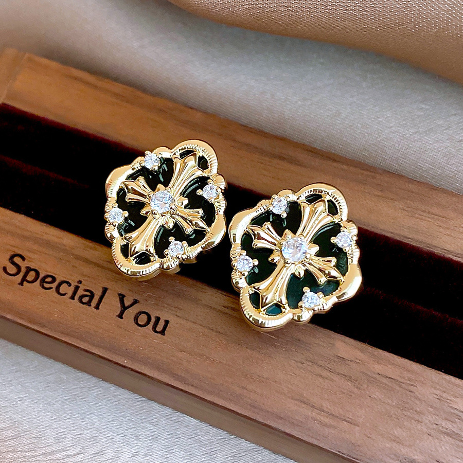 silver needle retro style zircon diamond cross stud earrings light luxury high-grade earrings european and american niche temperament earrings for women