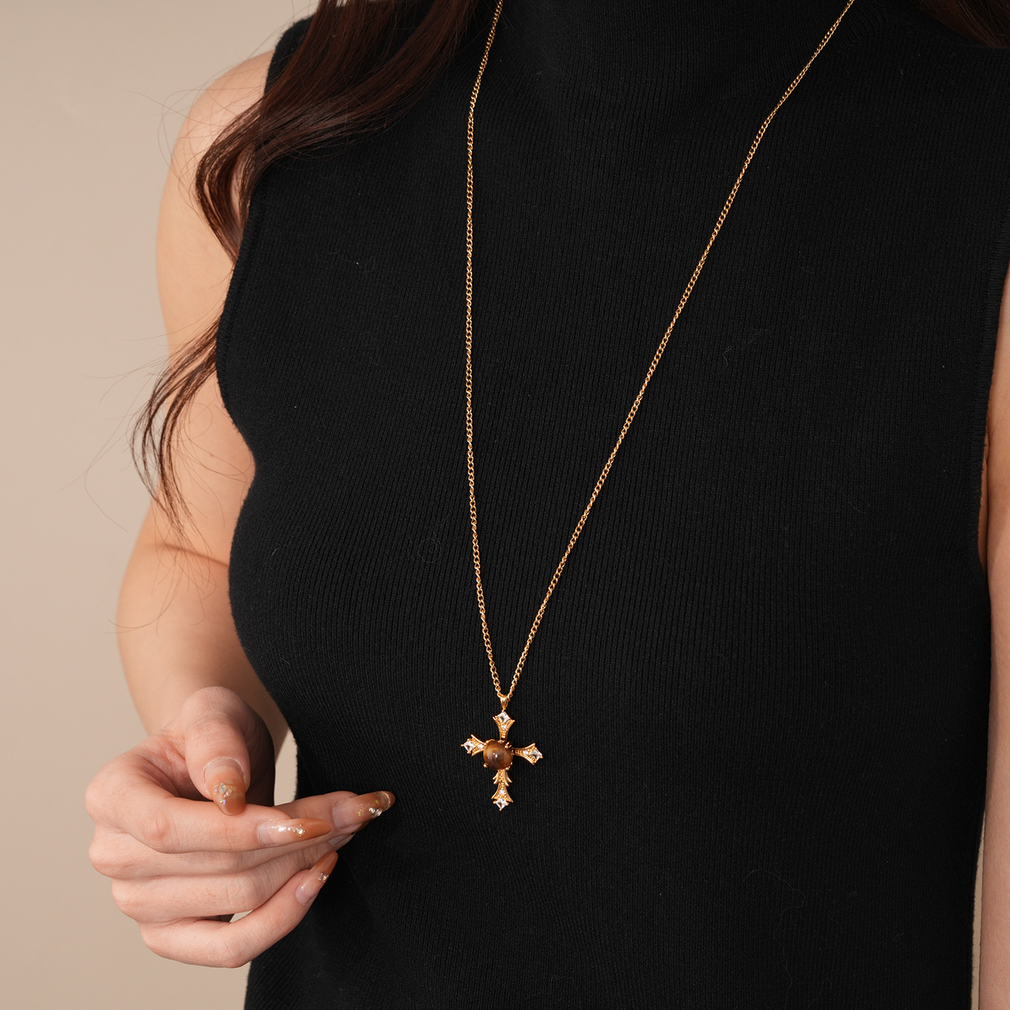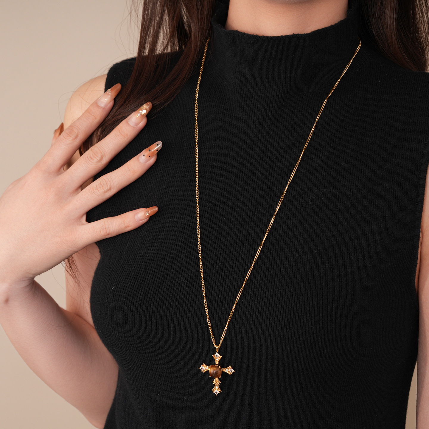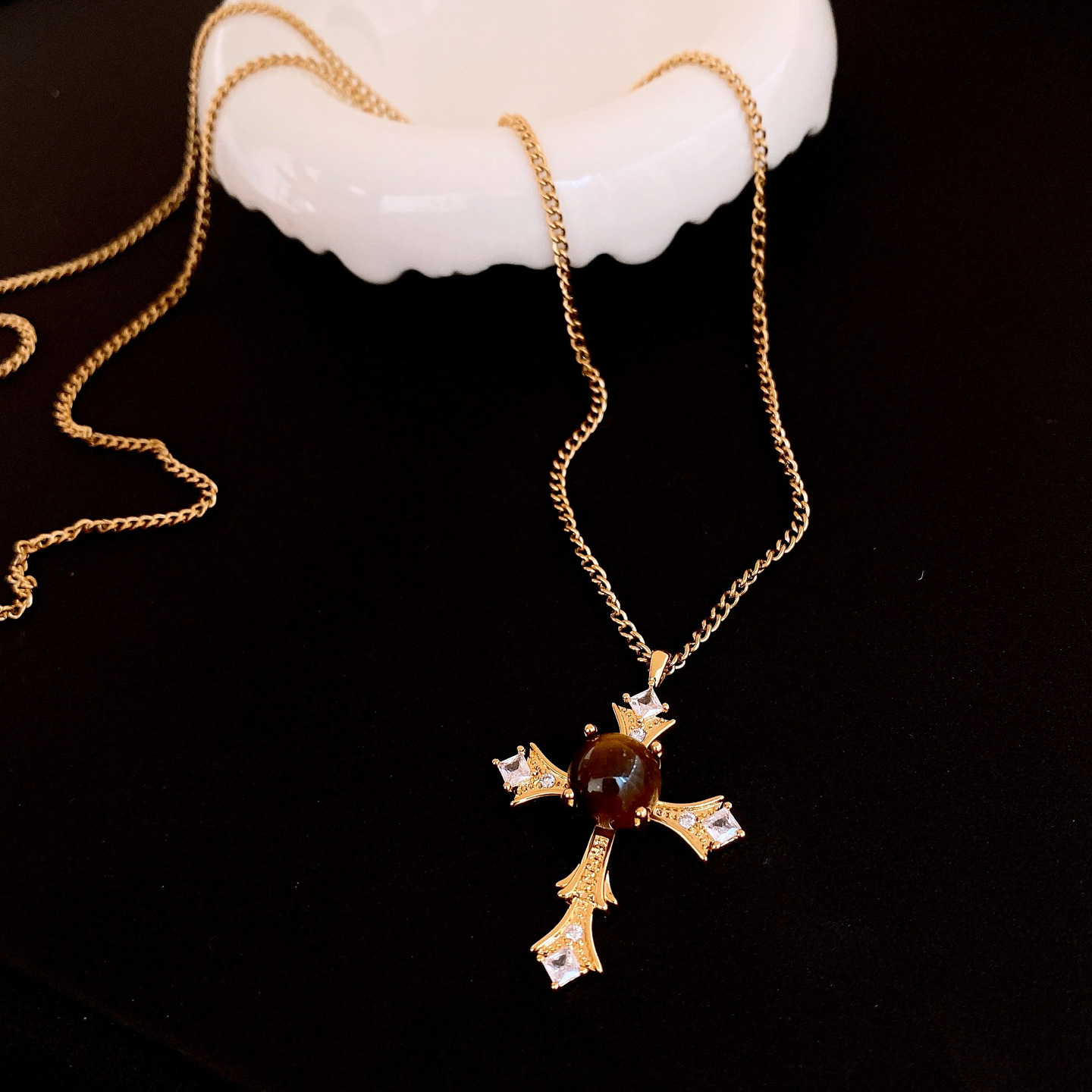 necklace-golden-coffee color (real gold plating)