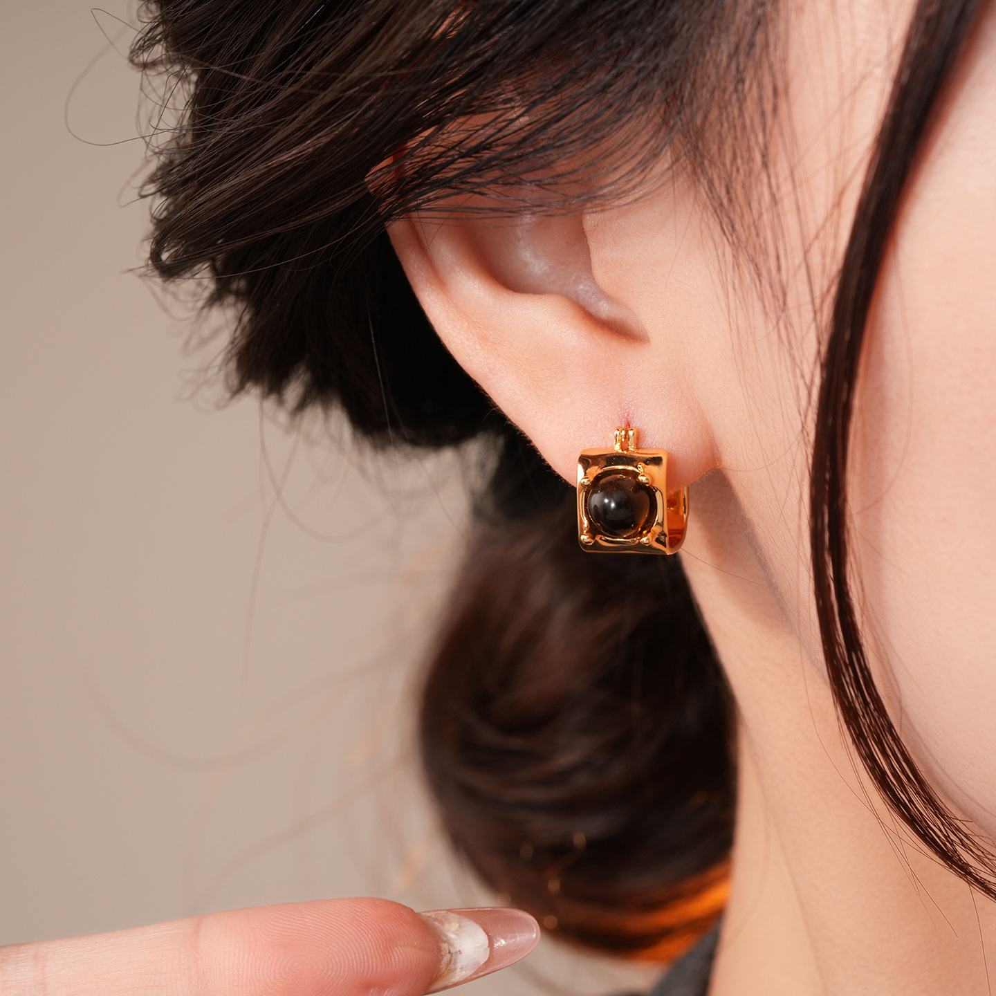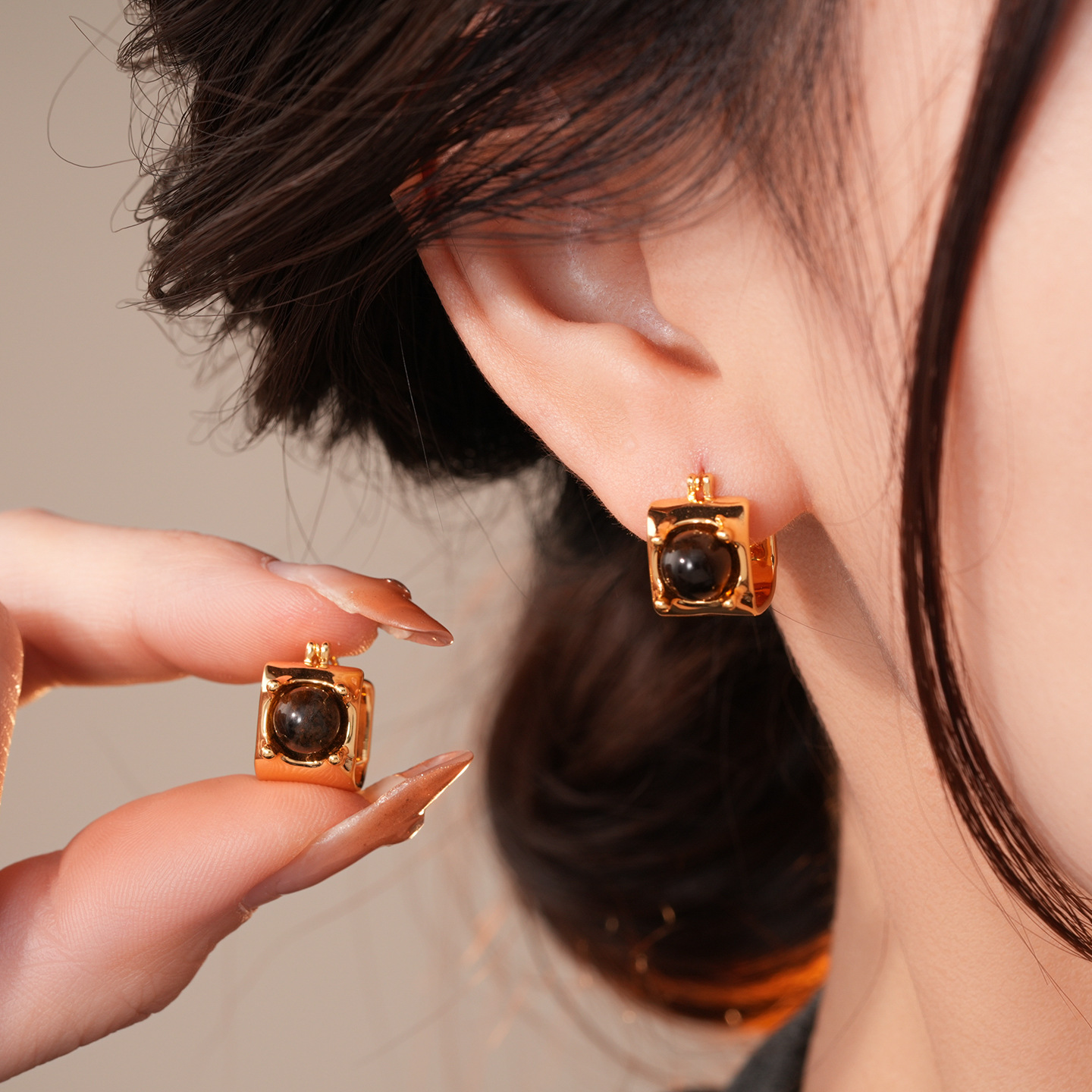 ear clip-golden-coffee color (real gold plating)