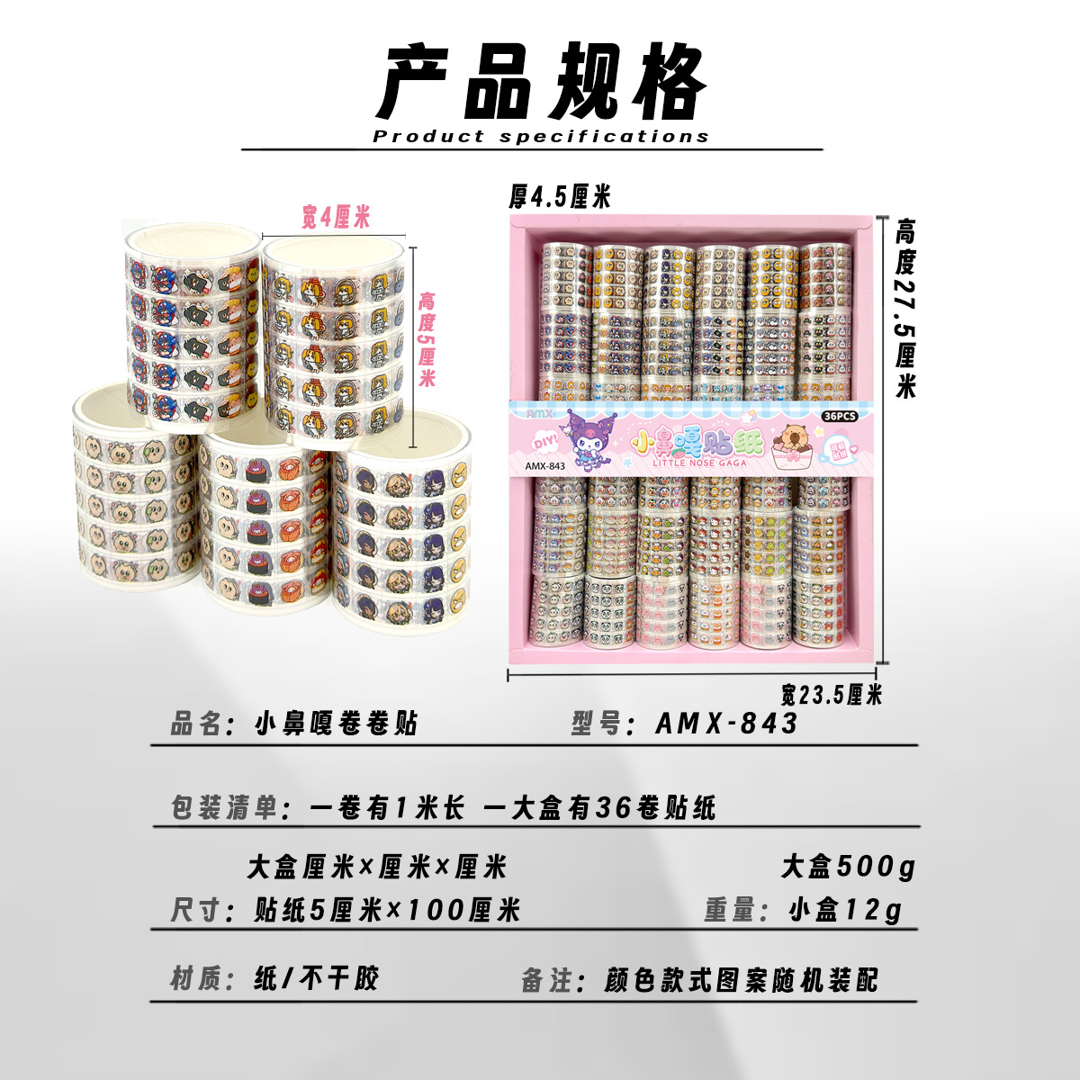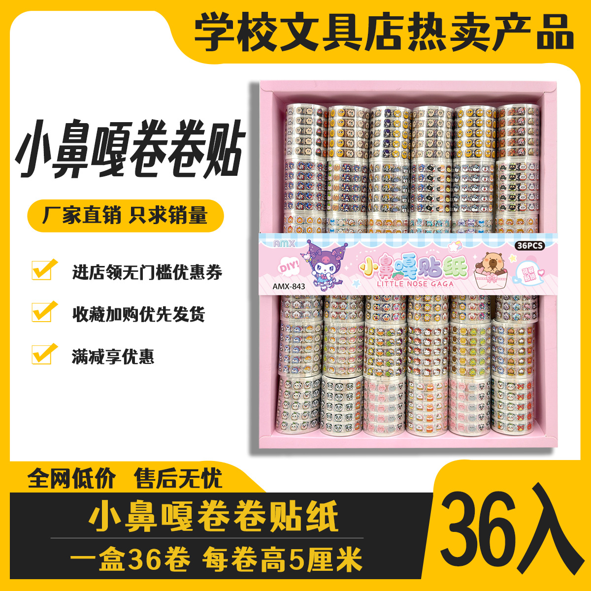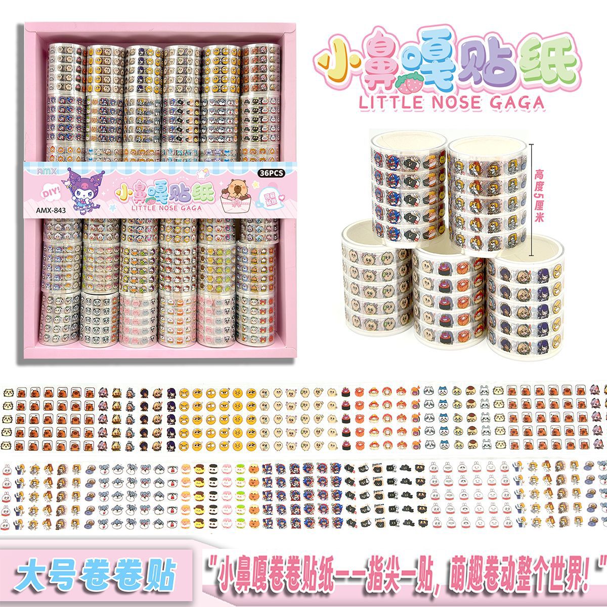 36 into the small nose ga roll stickers girls like cartoon cute waterproof stickers manicure beanie book decoration