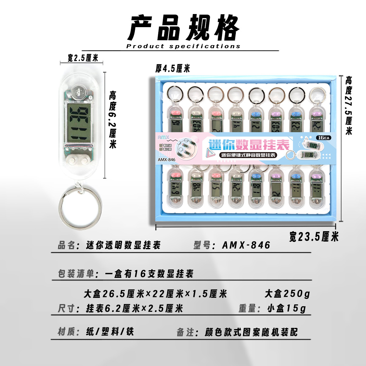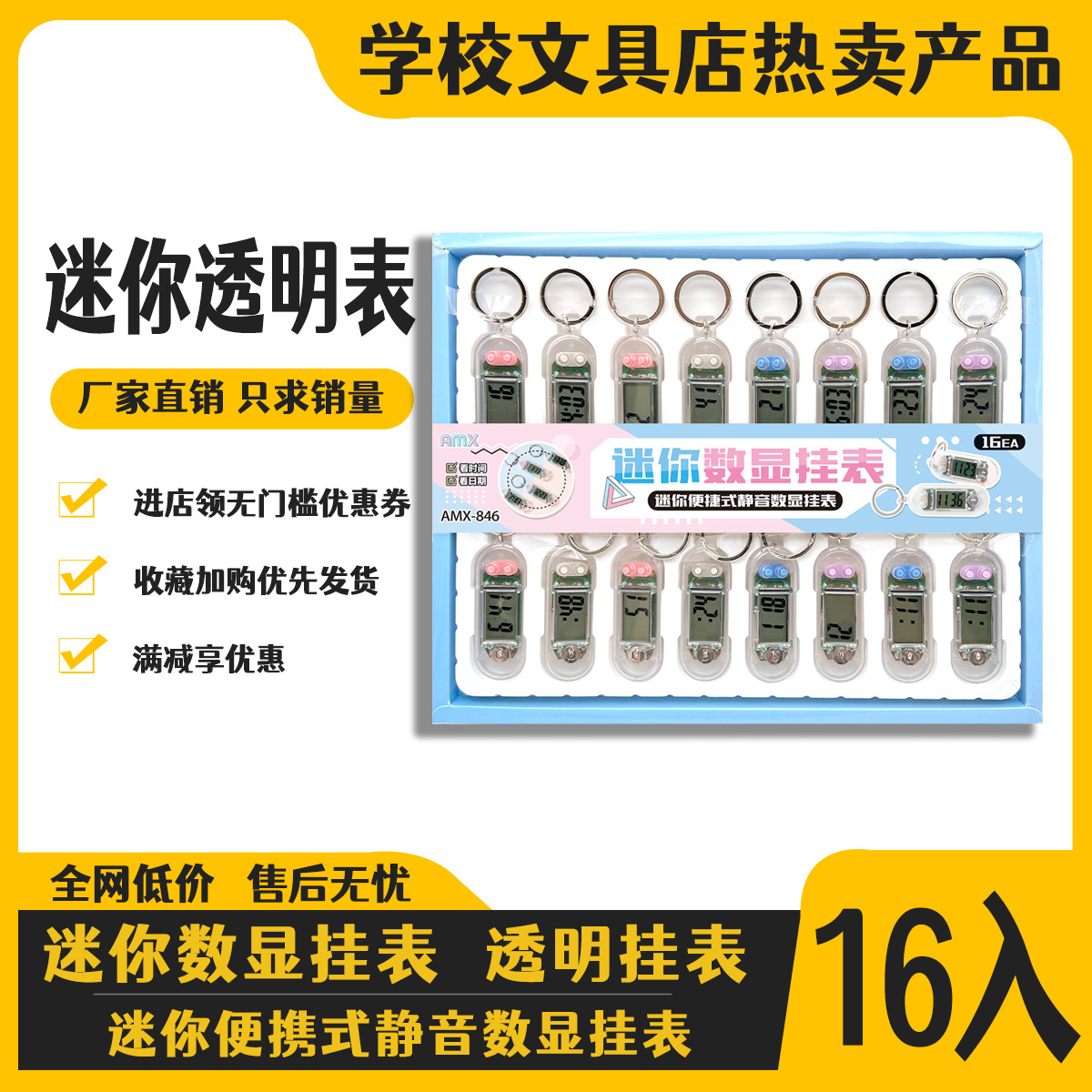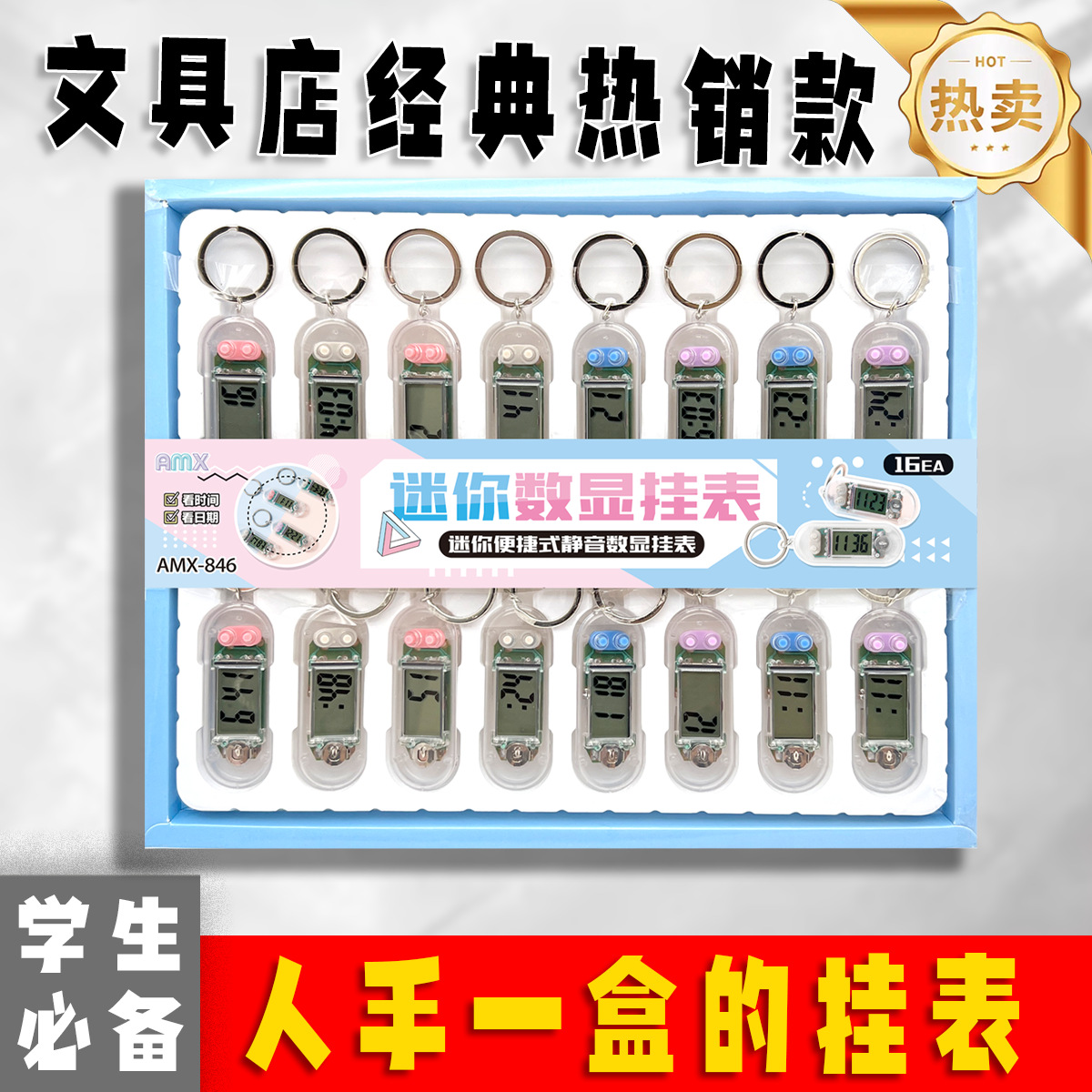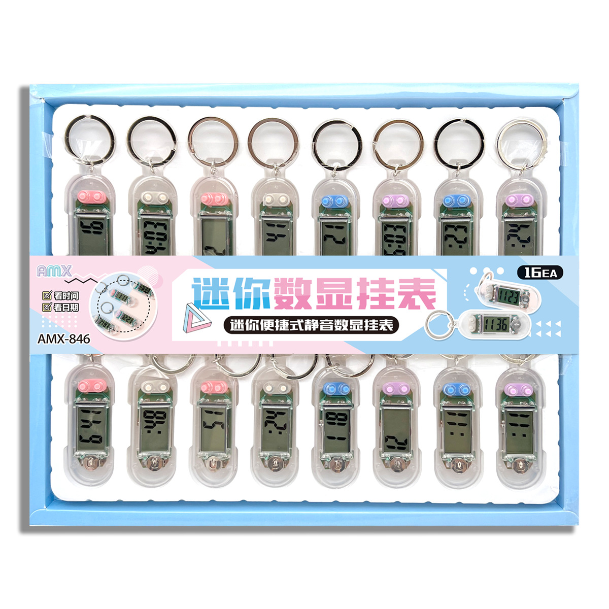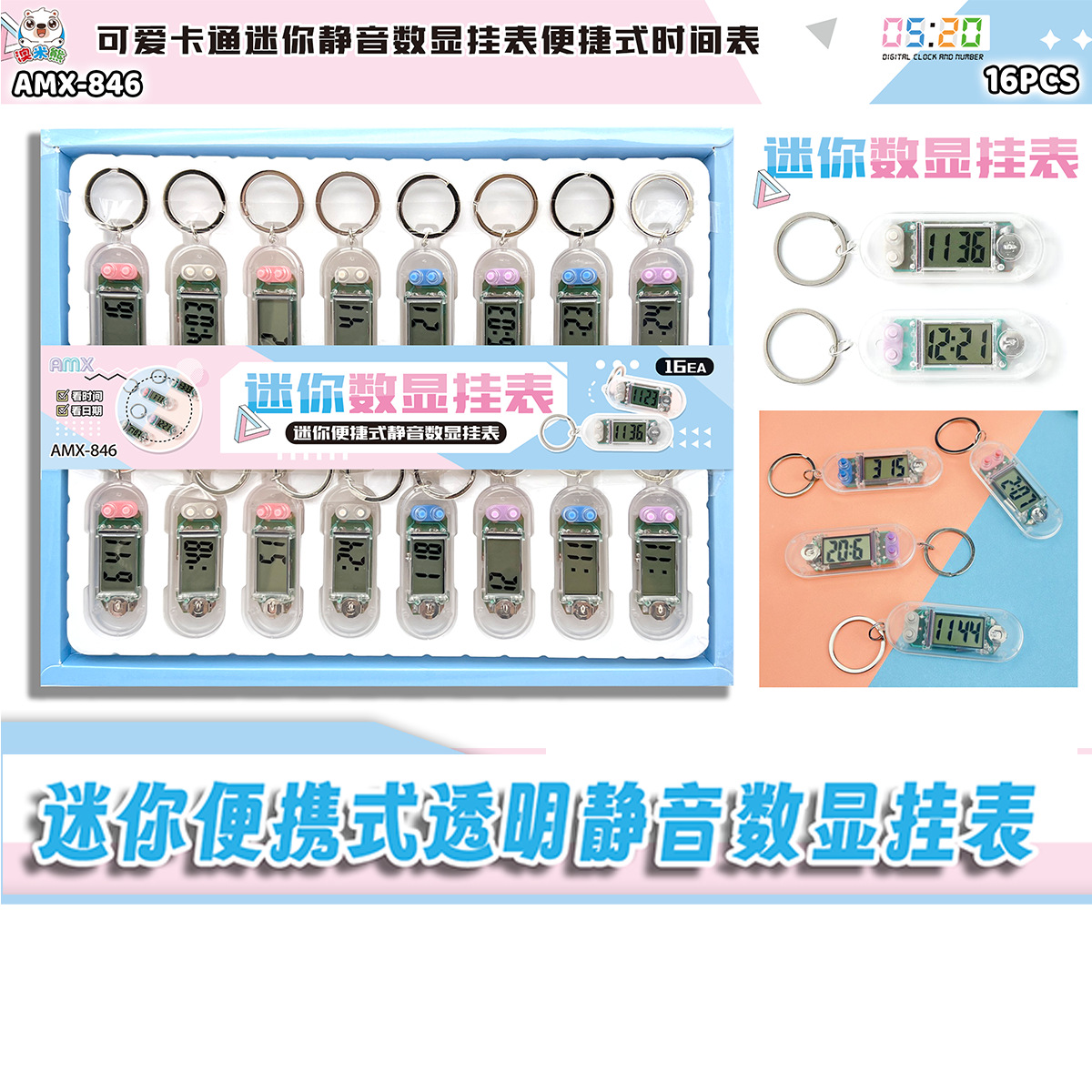 16-entry transparent mini keychain electronic clock student learning examination exclusive silent desktop convenient timetable
