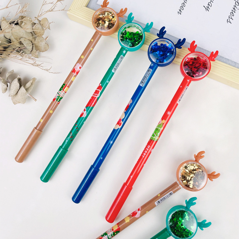 cartoon antlers christmas gel pen sequin flower film cute student stationery prizes gift writing implement water-based paint pen
