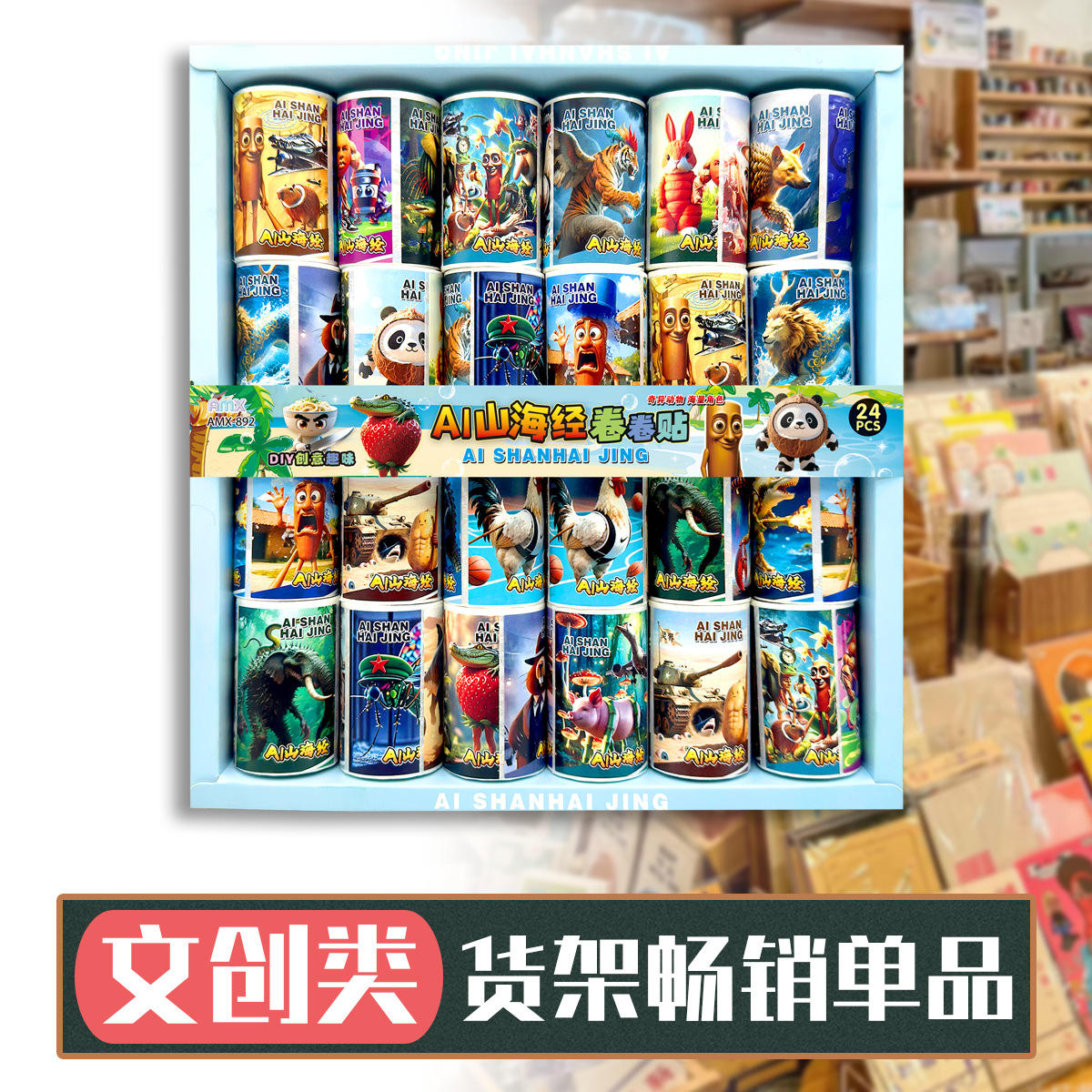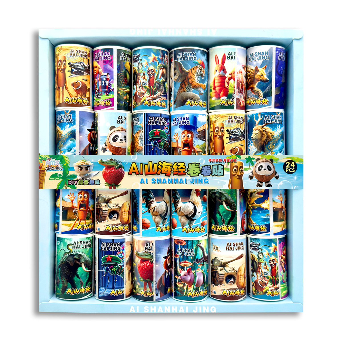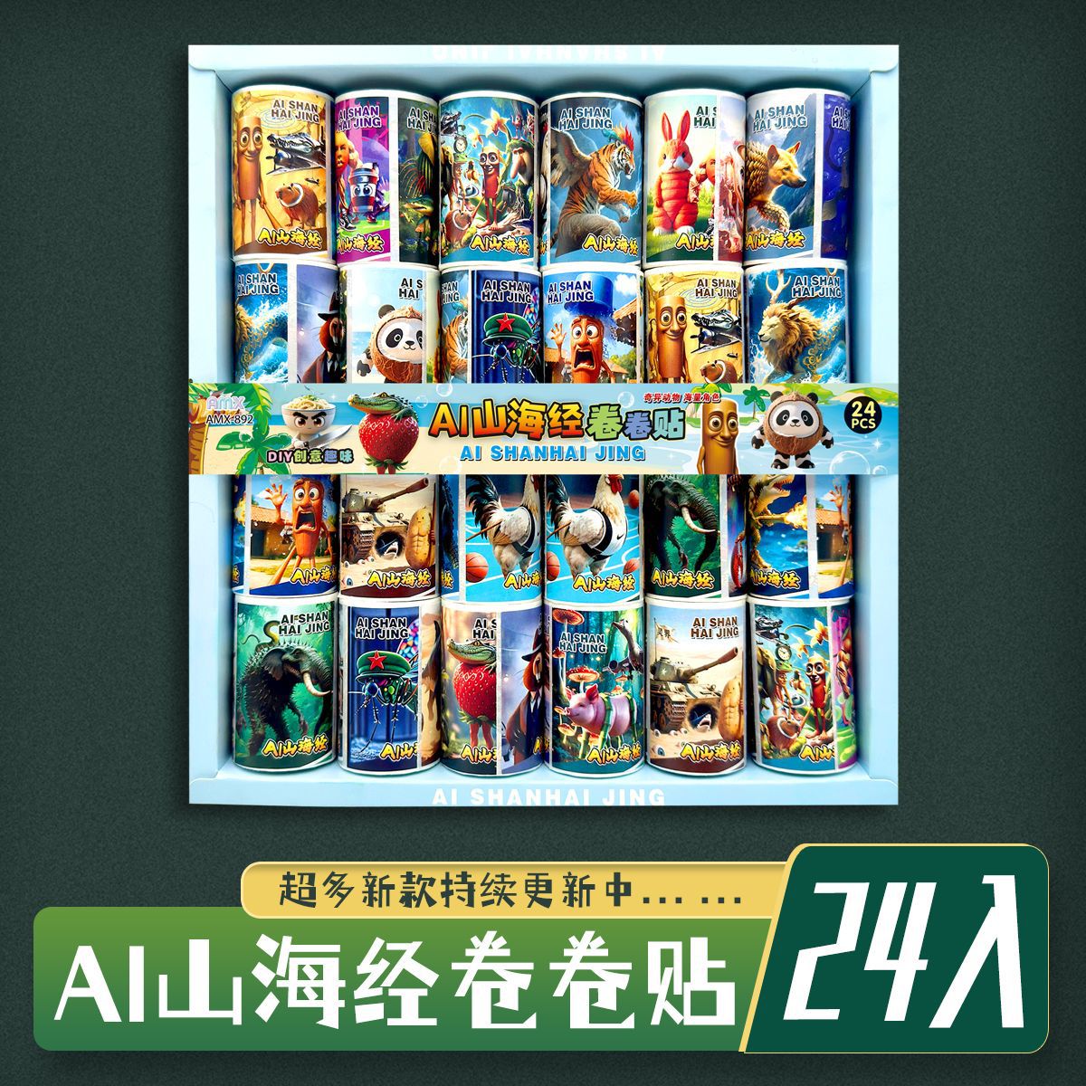 24 into shanhai sutra roll stickers tiktok hot stem funny wooden stick creative toys self-adhesive stickers diy tape