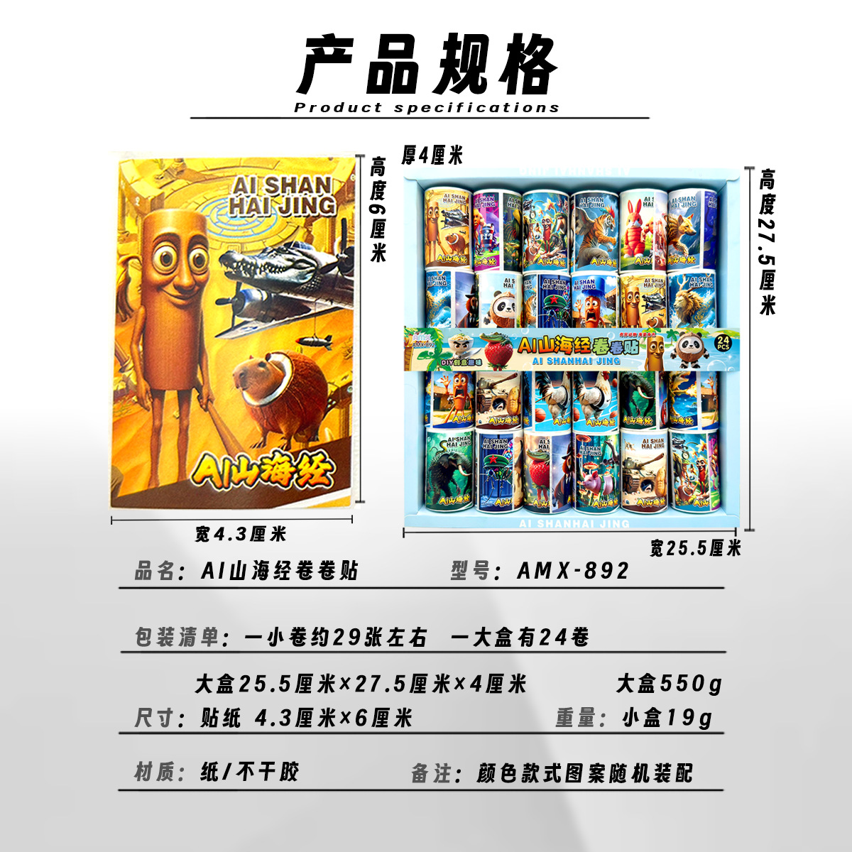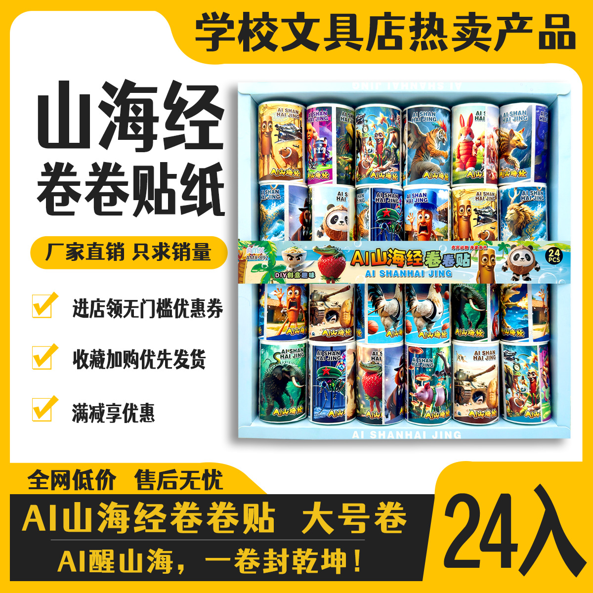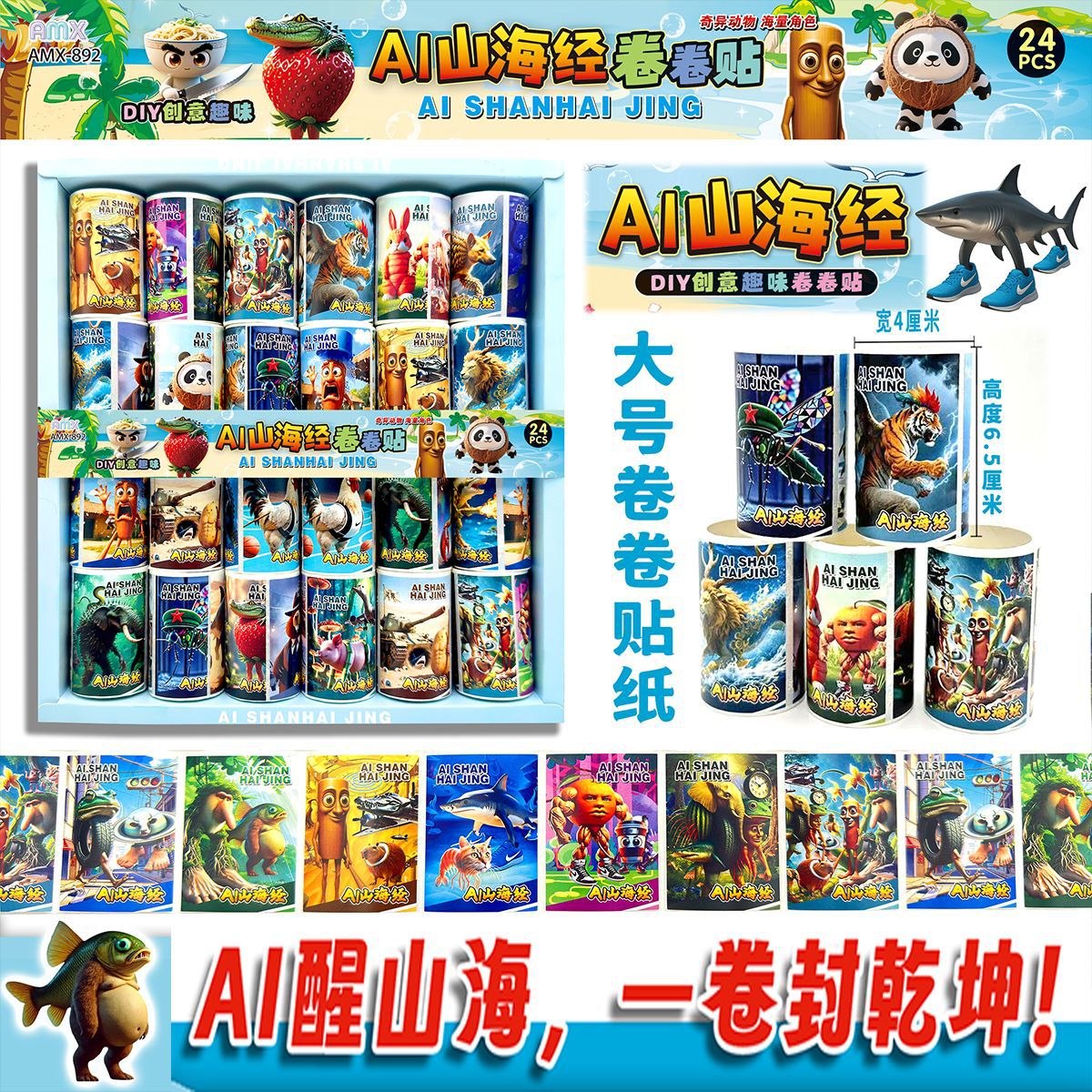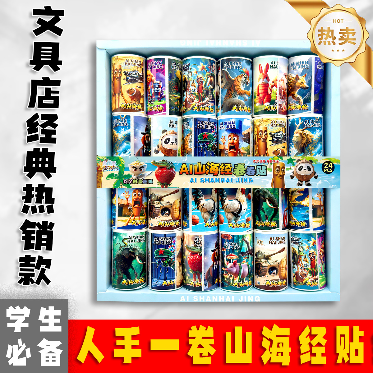 24 into shanhai sutra roll stickers tiktok hot stem funny wooden stick creative toys self-adhesive stickers diy tape