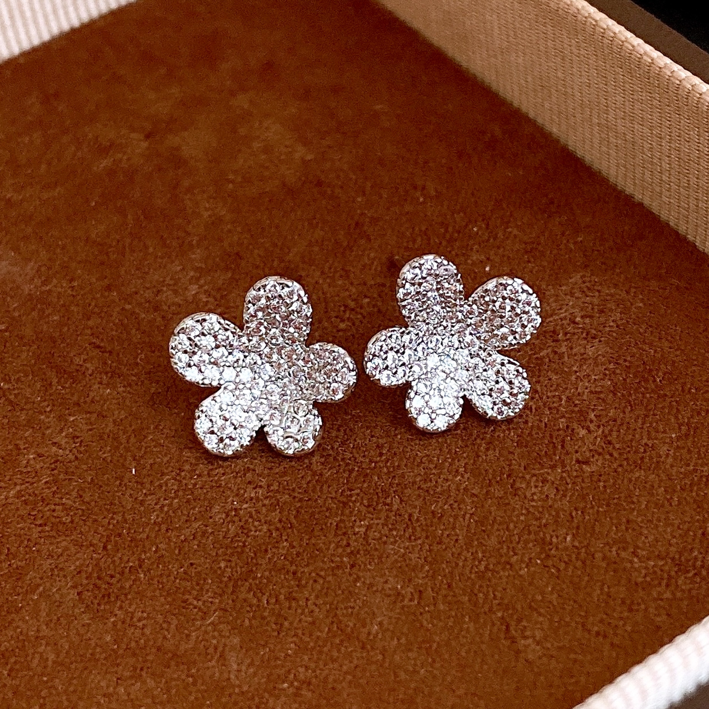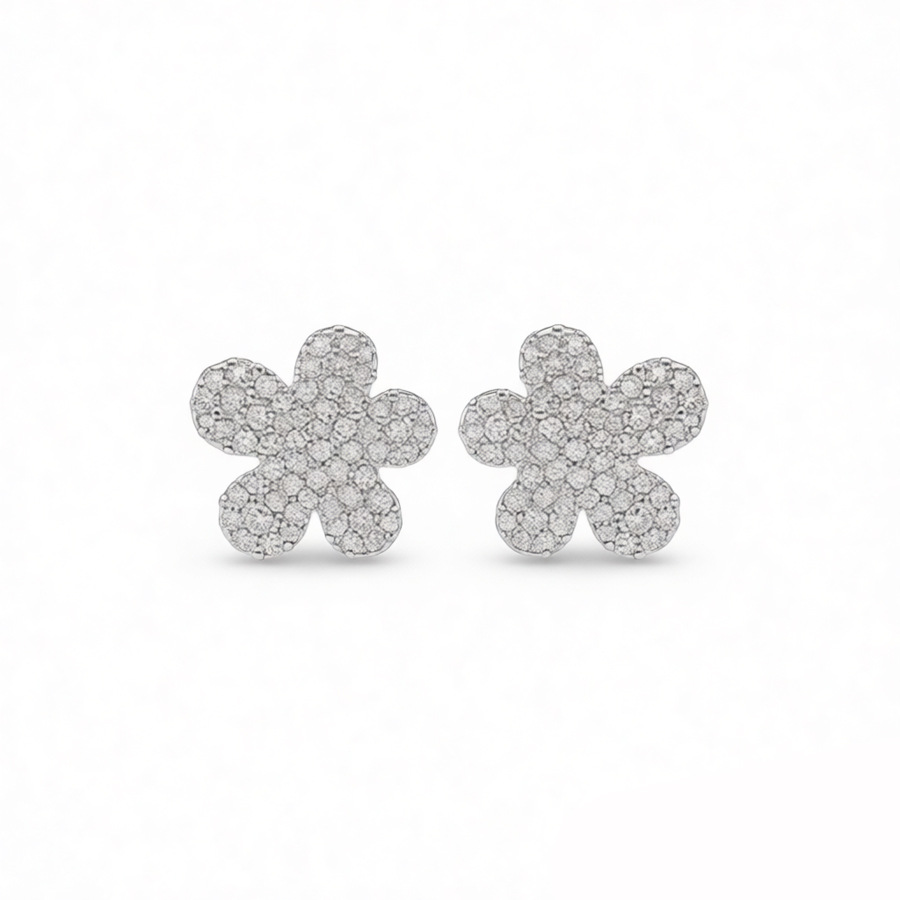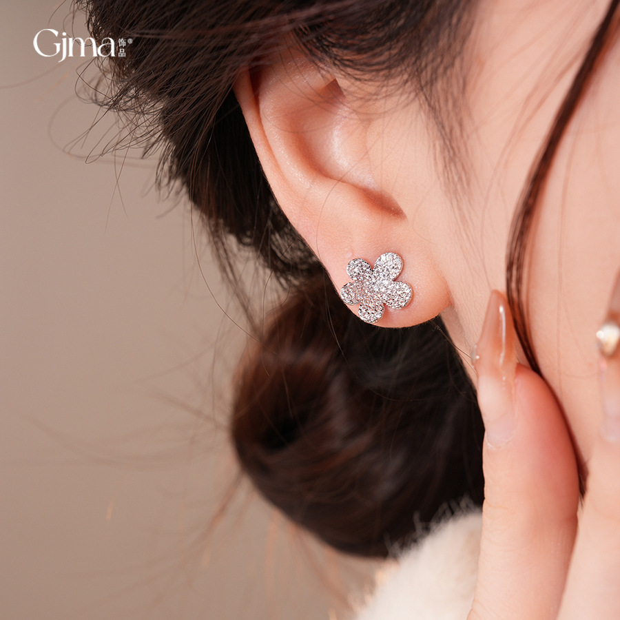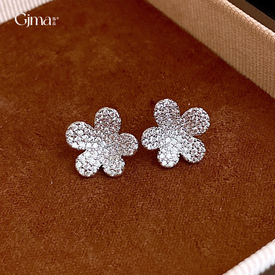 silver needle vintage simple zircon flower stud earrings niche high sense earrings fashionable and versatile earrings design sense niche