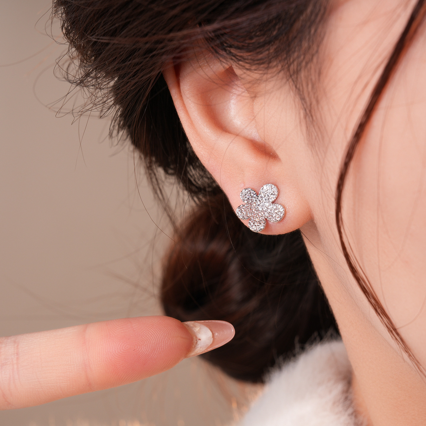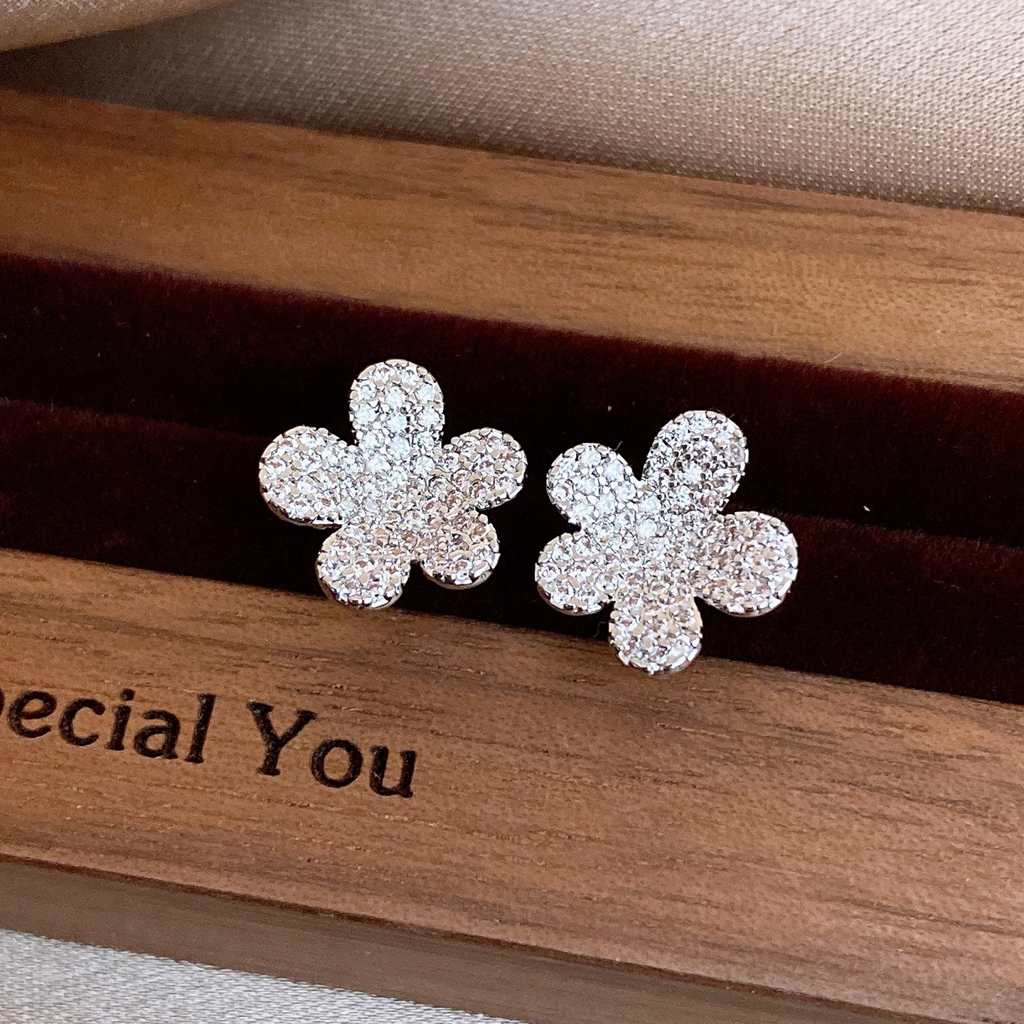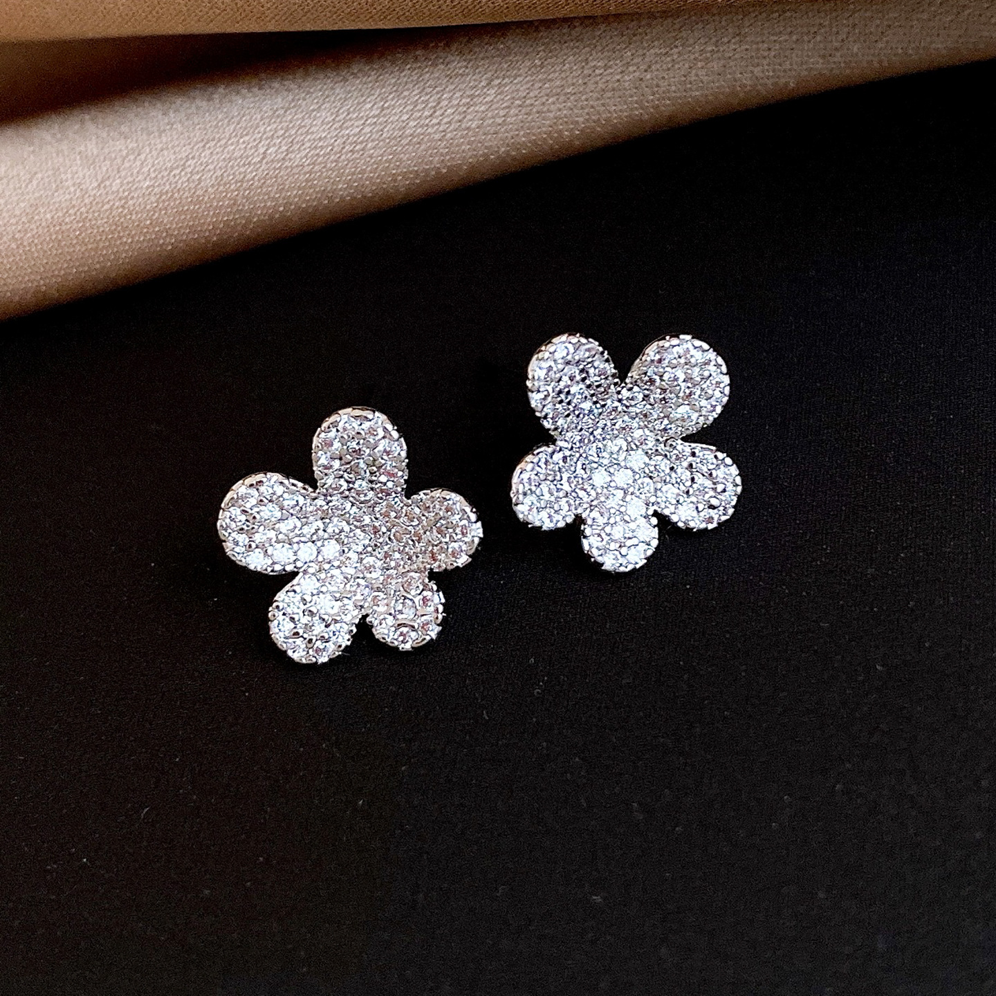 silver needle vintage simple zircon flower stud earrings niche high sense earrings fashionable and versatile earrings design sense niche