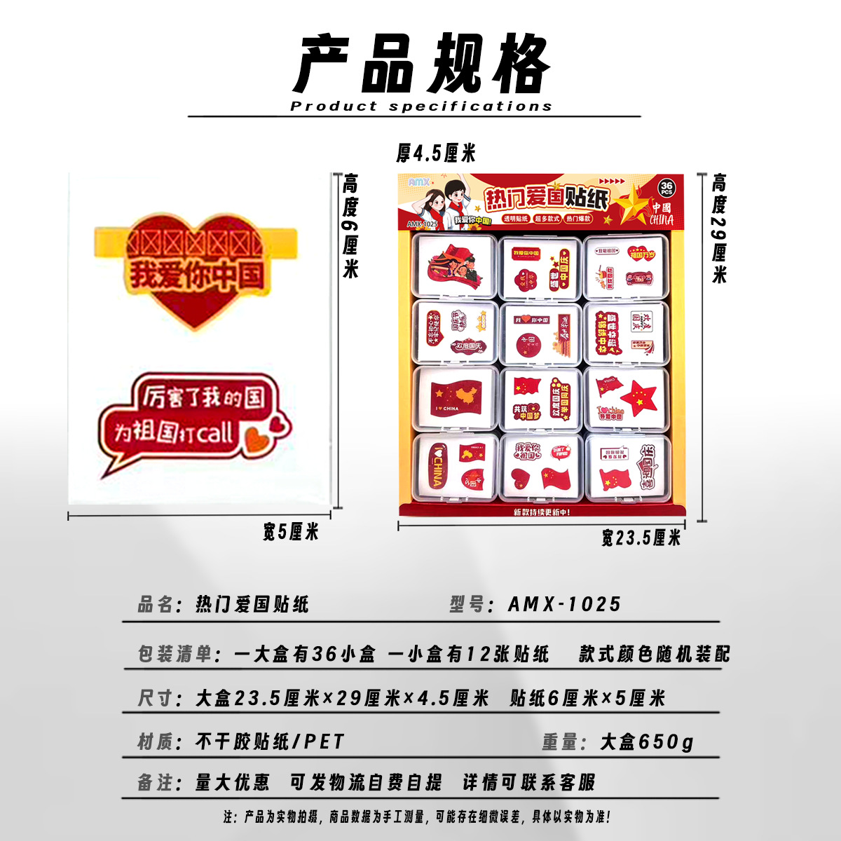 • Sales method Sold by lot ,1 lot =36 pcs