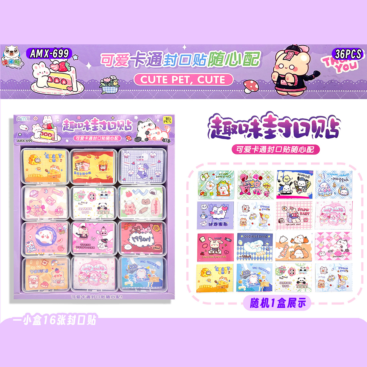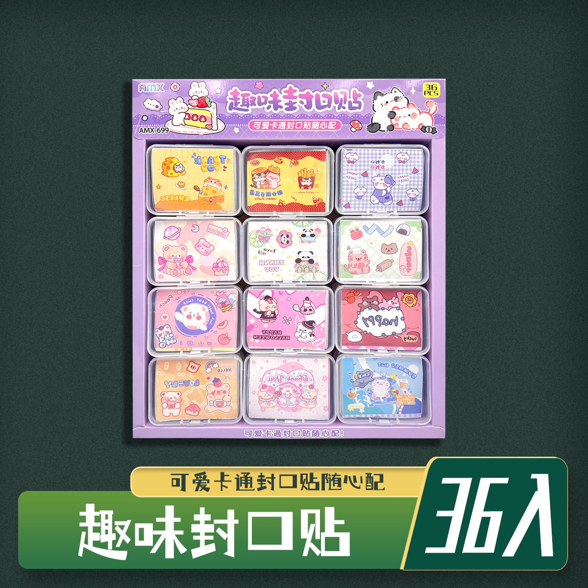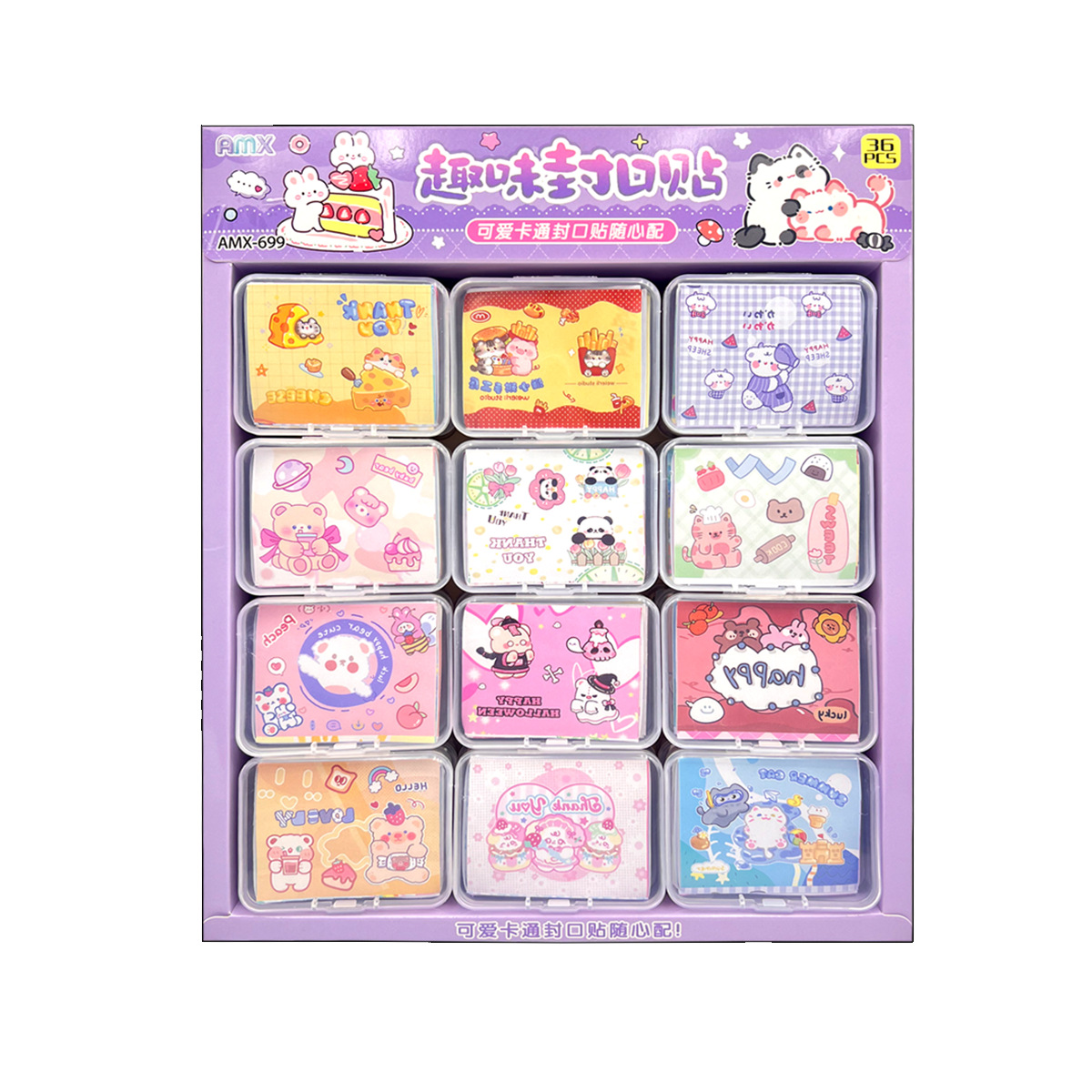 36 into fun sealing paste creative stickers self-adhesive cartoon boxed stall student children hot selling evergreen style