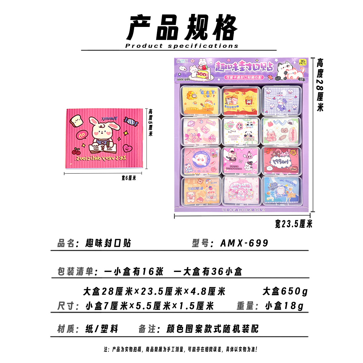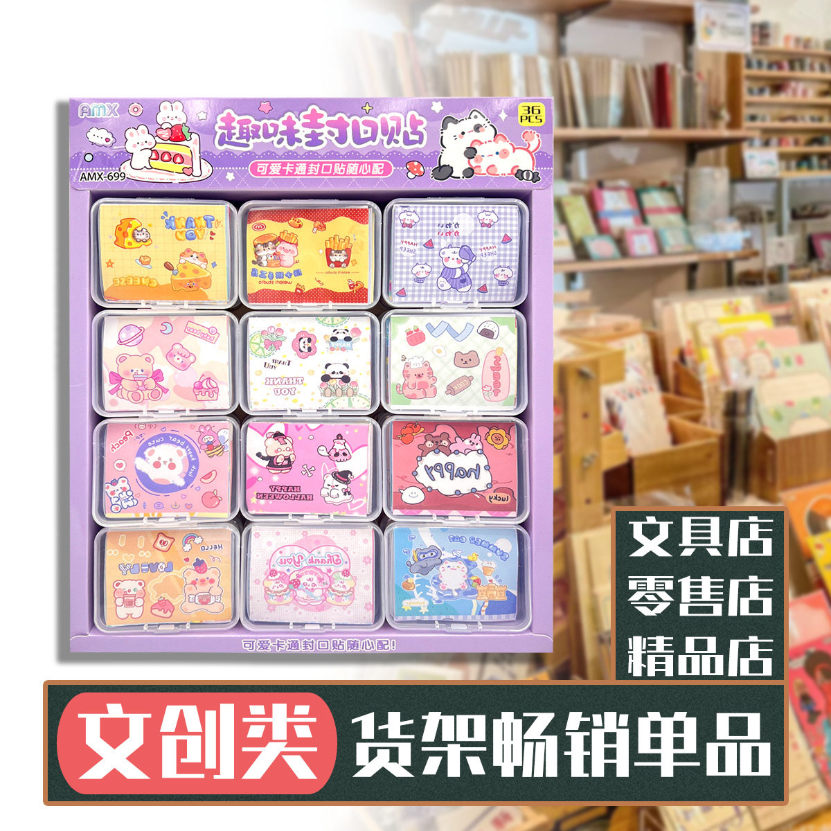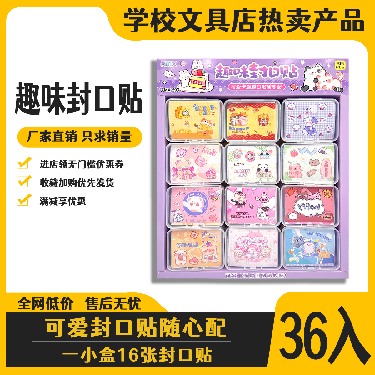 36 into fun sealing paste creative stickers self-adhesive cartoon boxed stall student children hot selling evergreen style