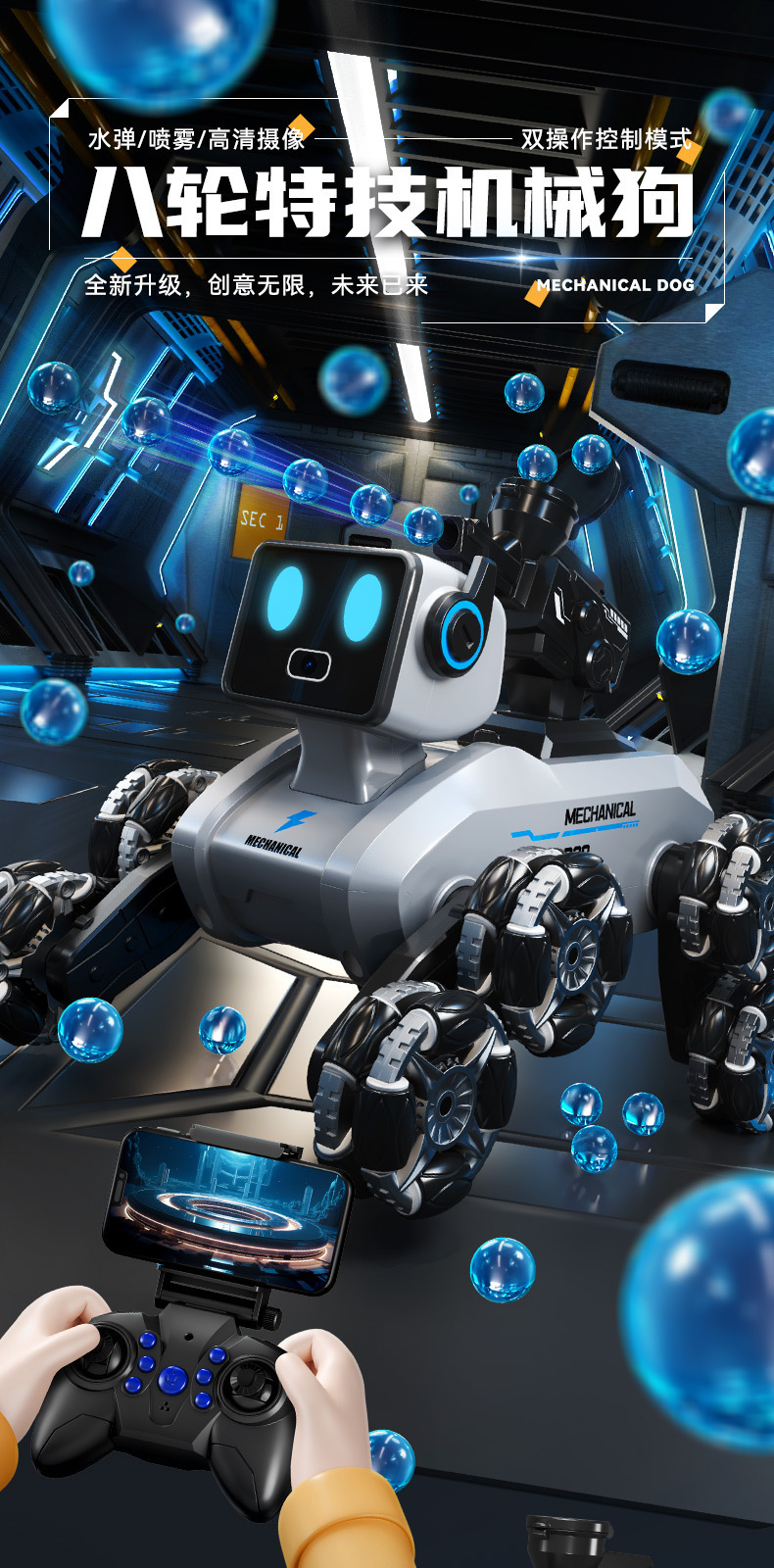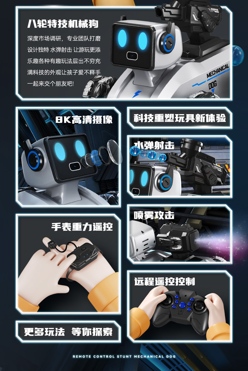 eight-wheel special effects · remote control robot dog [remote control handle], eight-wheel special