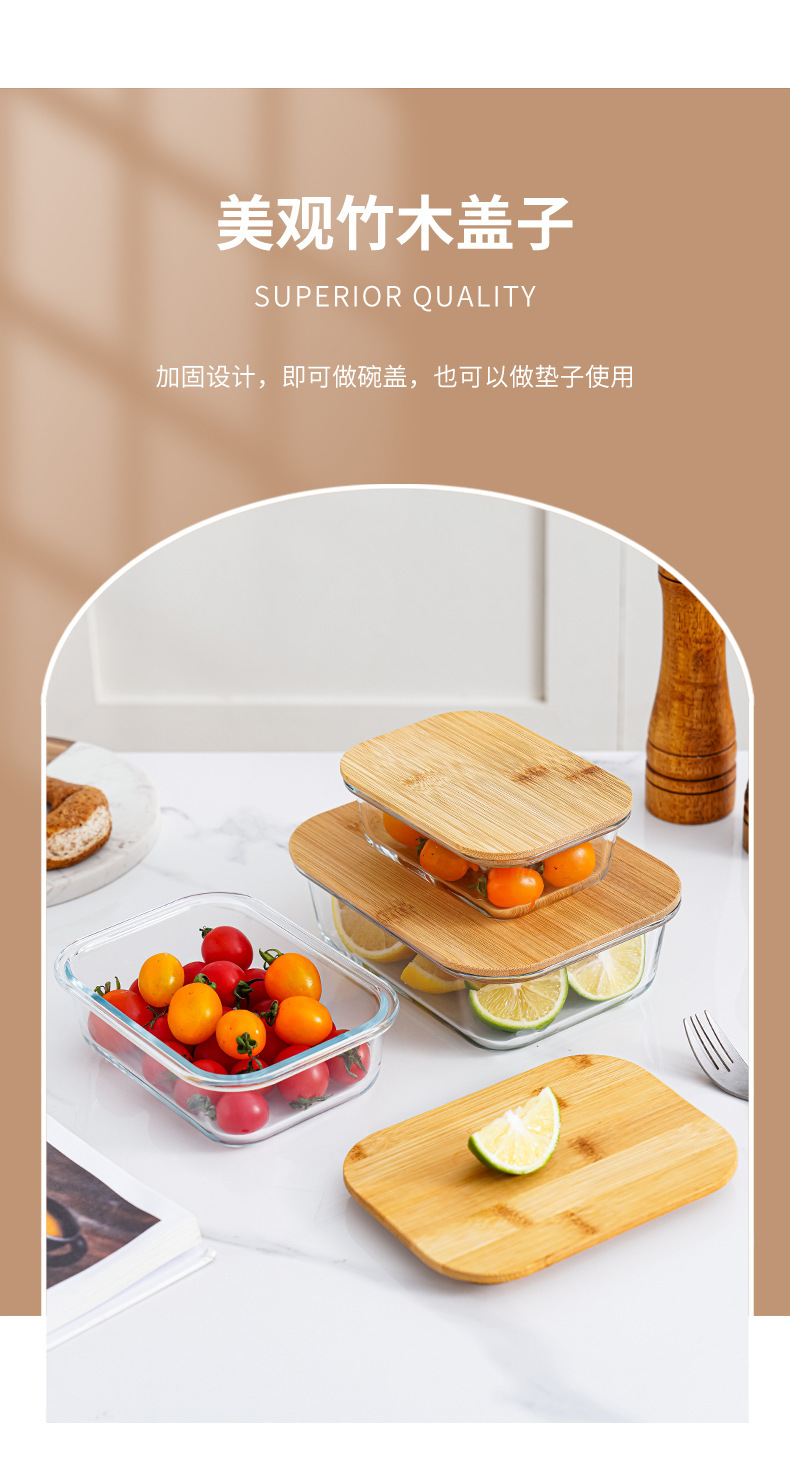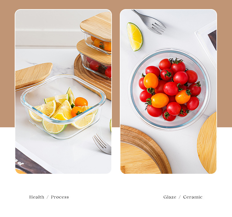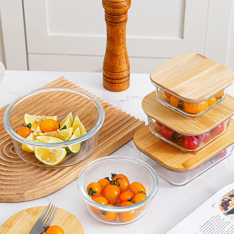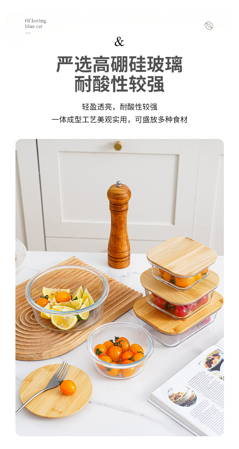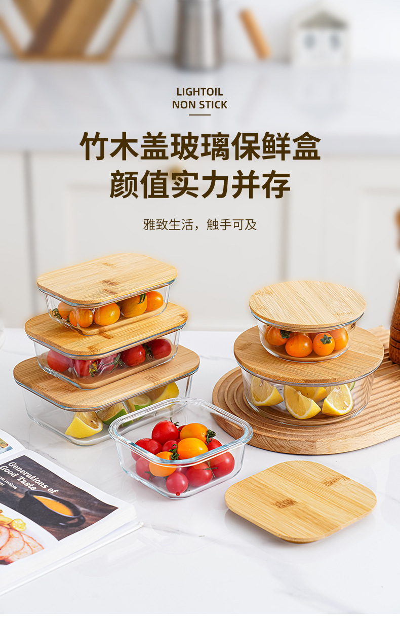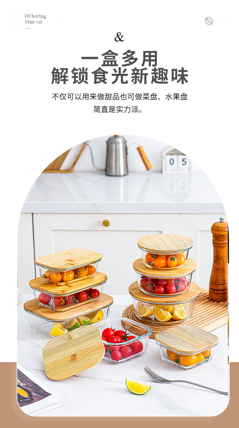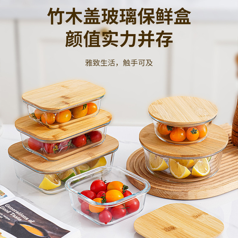 bamboo round coaster square cover sealed glass food bento box large capacity lunch box can be heated in microwave oven