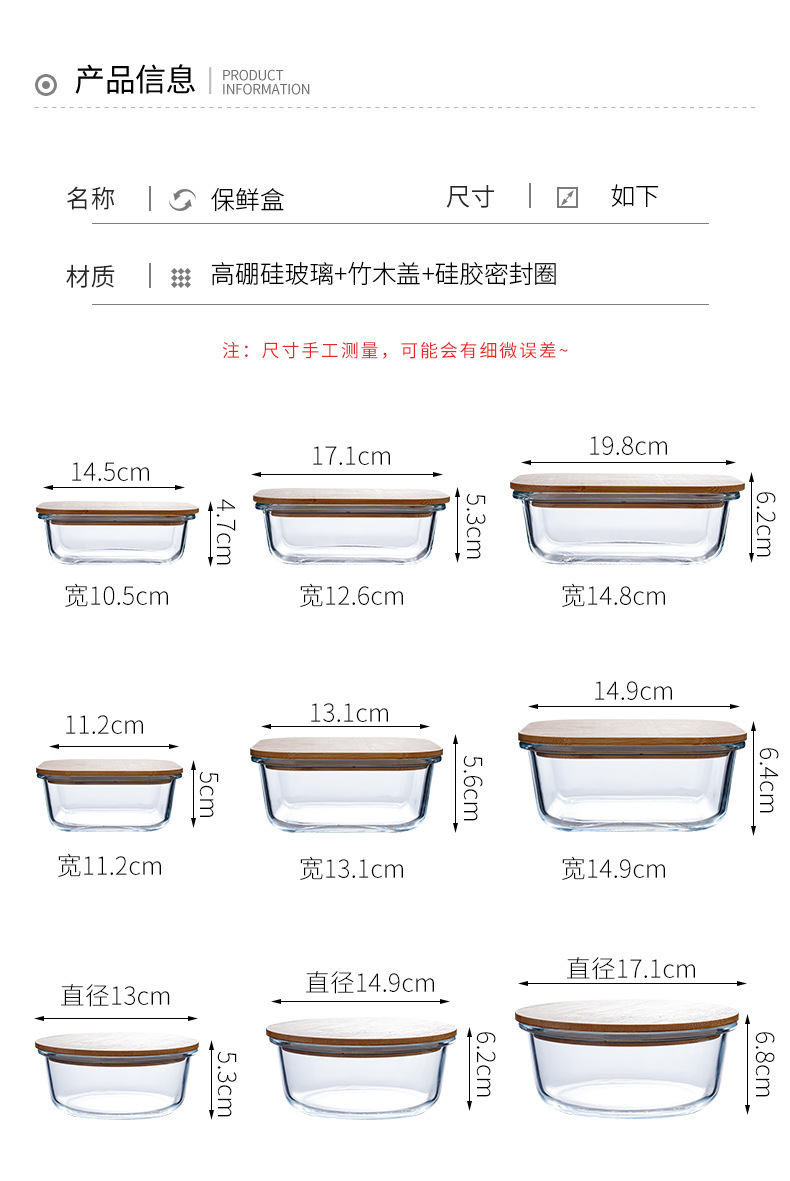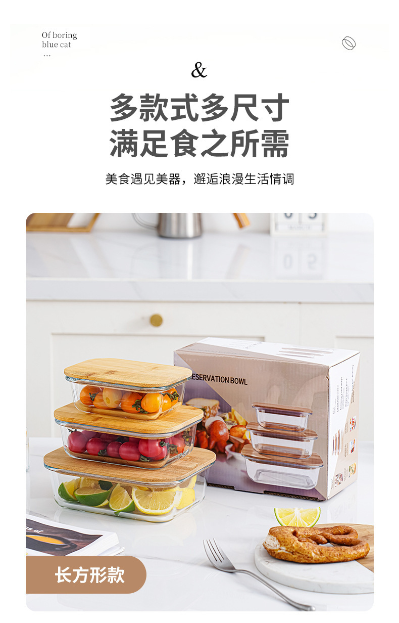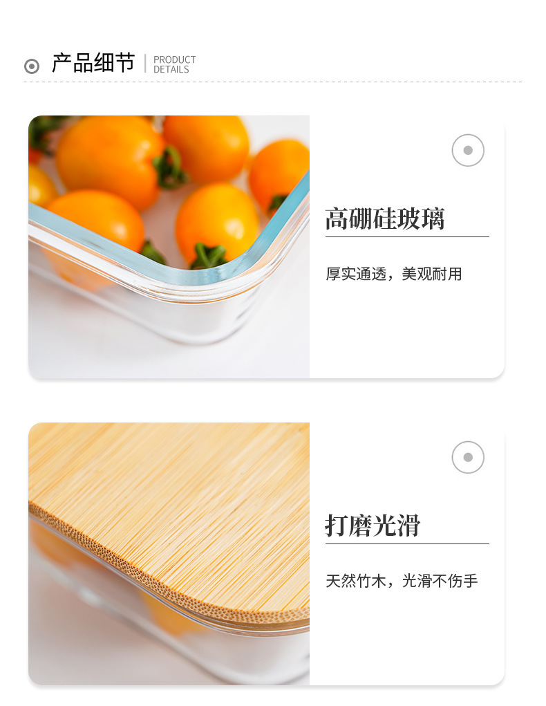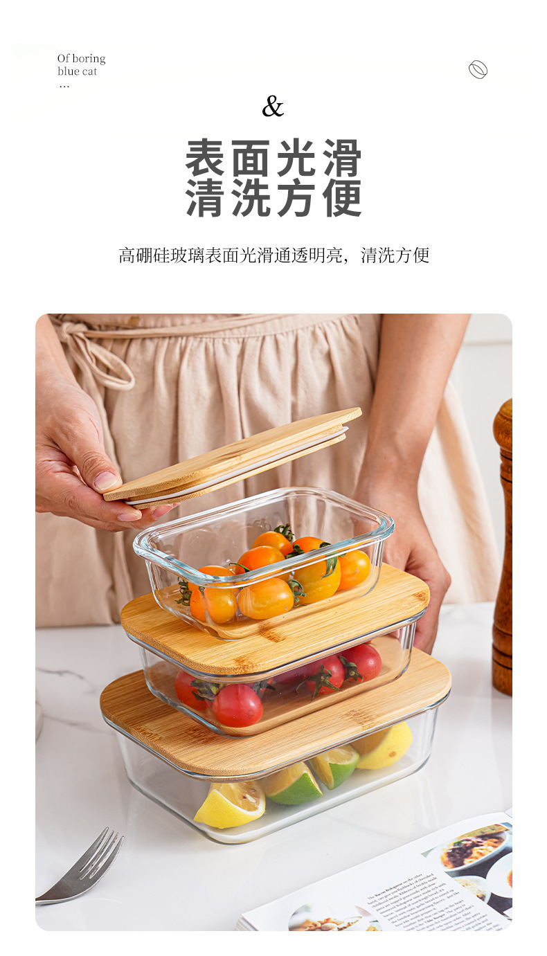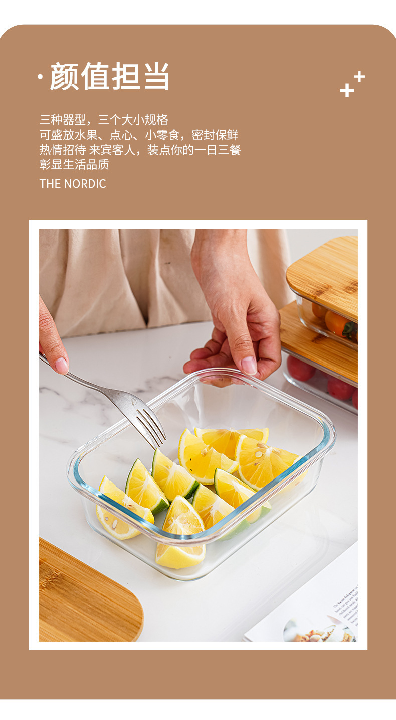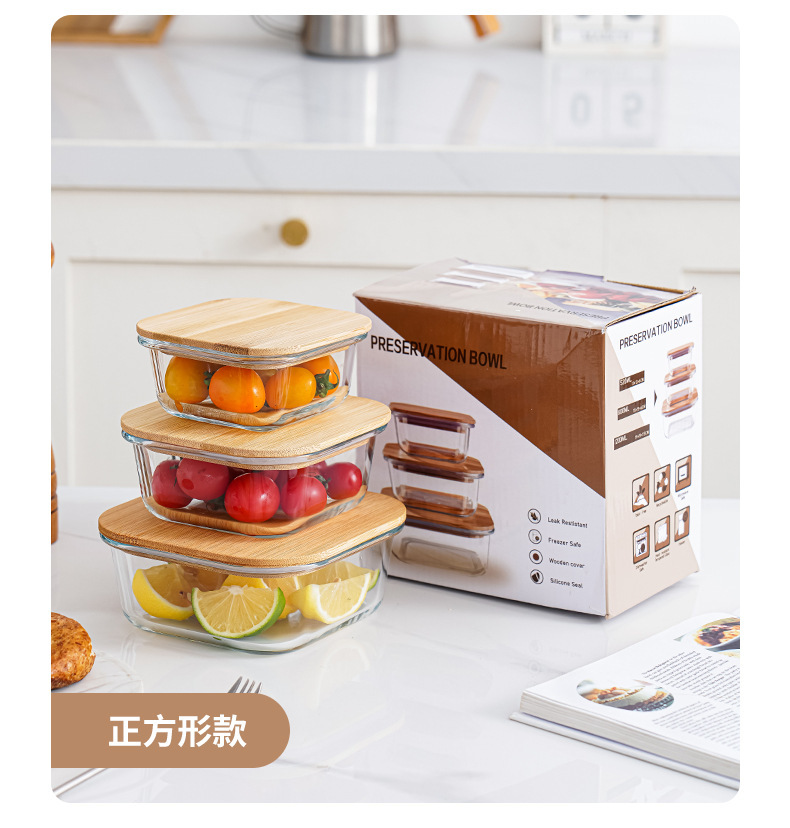 bamboo round coaster square cover sealed glass food bento box large capacity lunch box can be heated in microwave oven