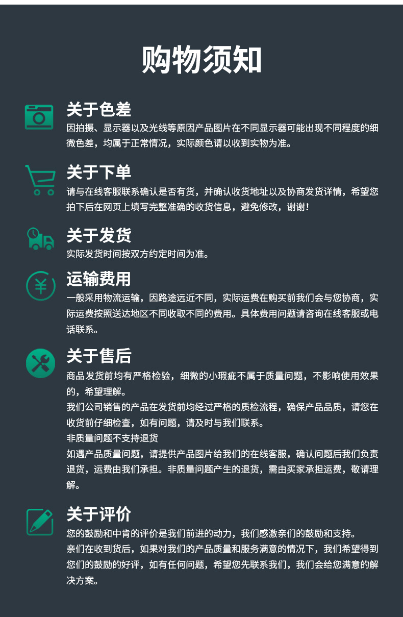 Dear customer, thank you for your attention and support. In order for us to have a pleasant transaction experience, please take a few more minutes to read the following text before shopping. I wish you a happy shopping experience!