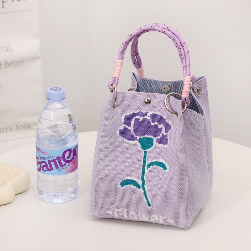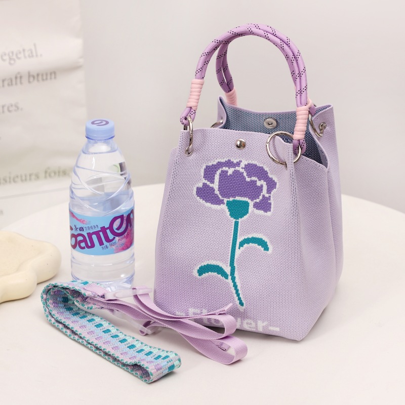 buckle bag four-corner flower purple