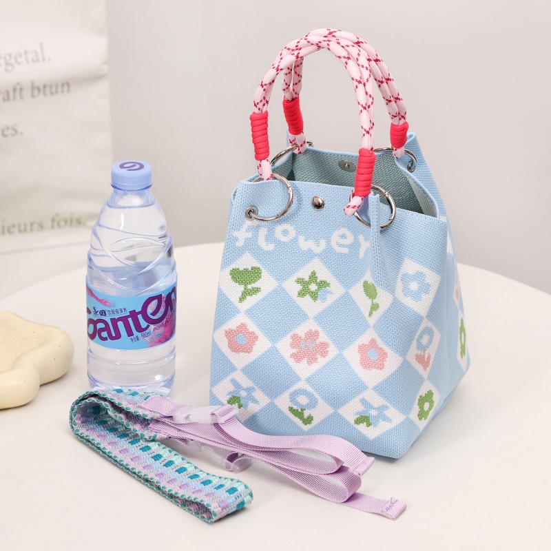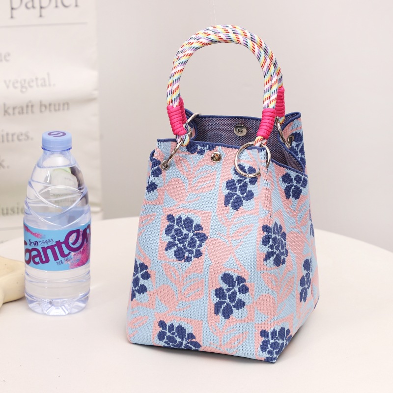 ring buckle bag rhombic blue flower