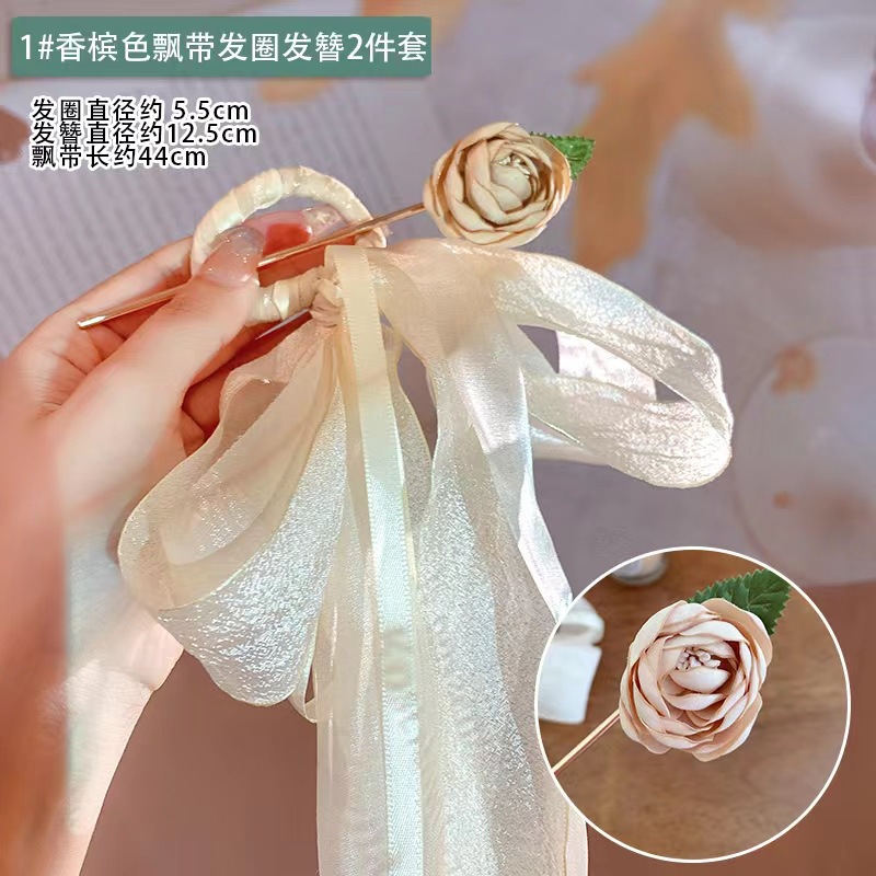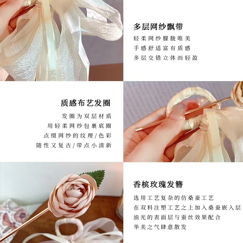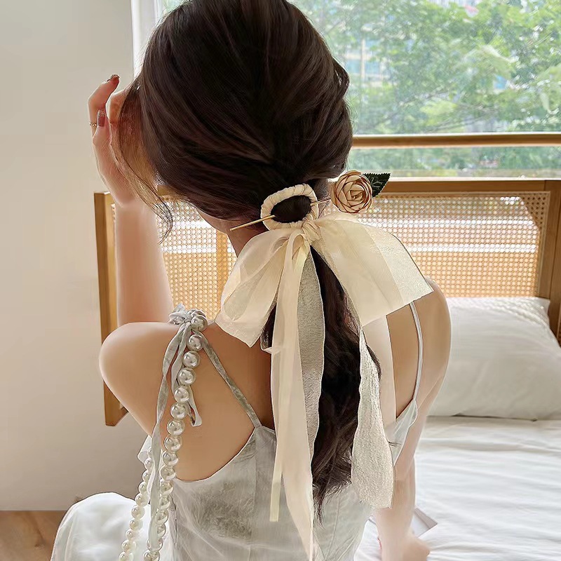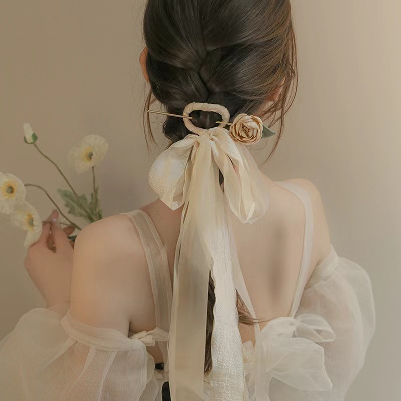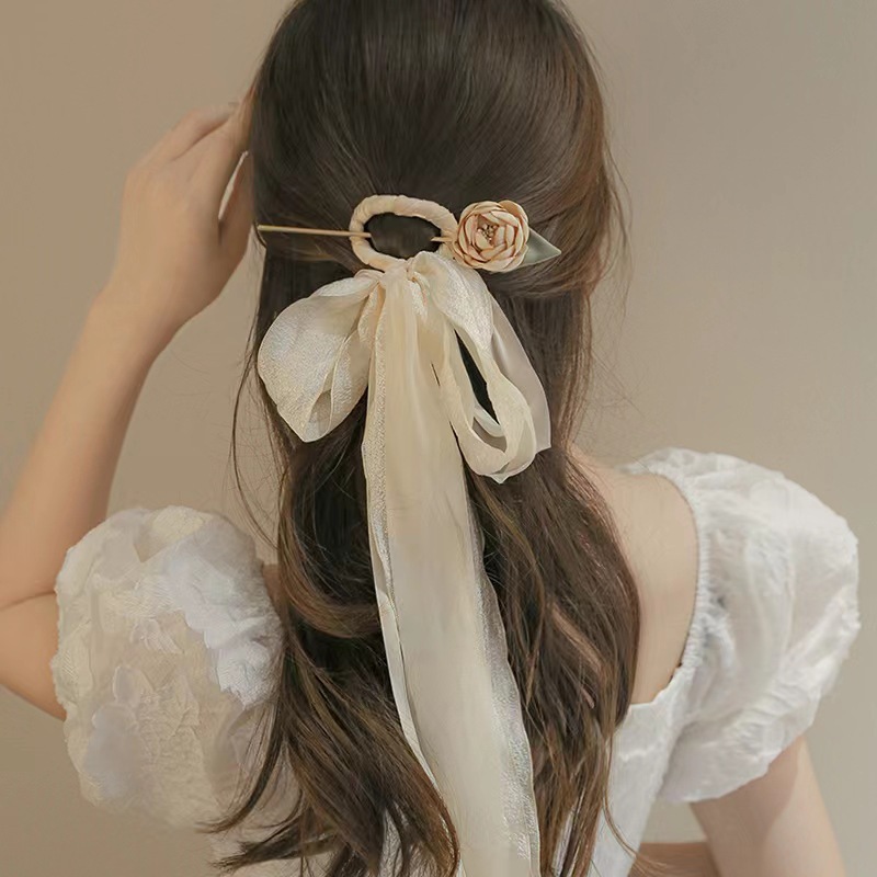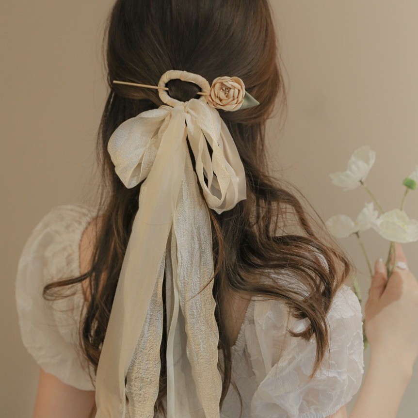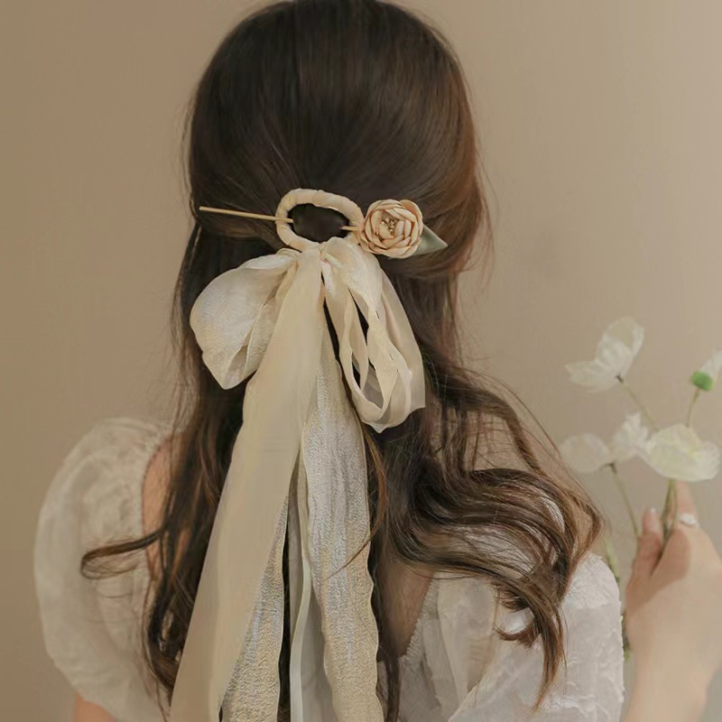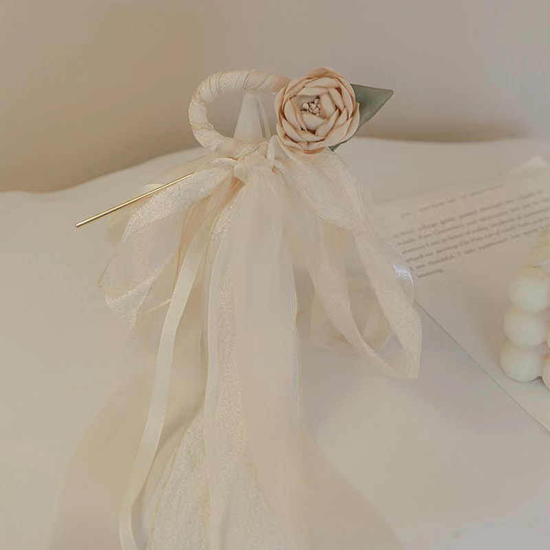 2984 gentle mesh ribbon rose hairpin